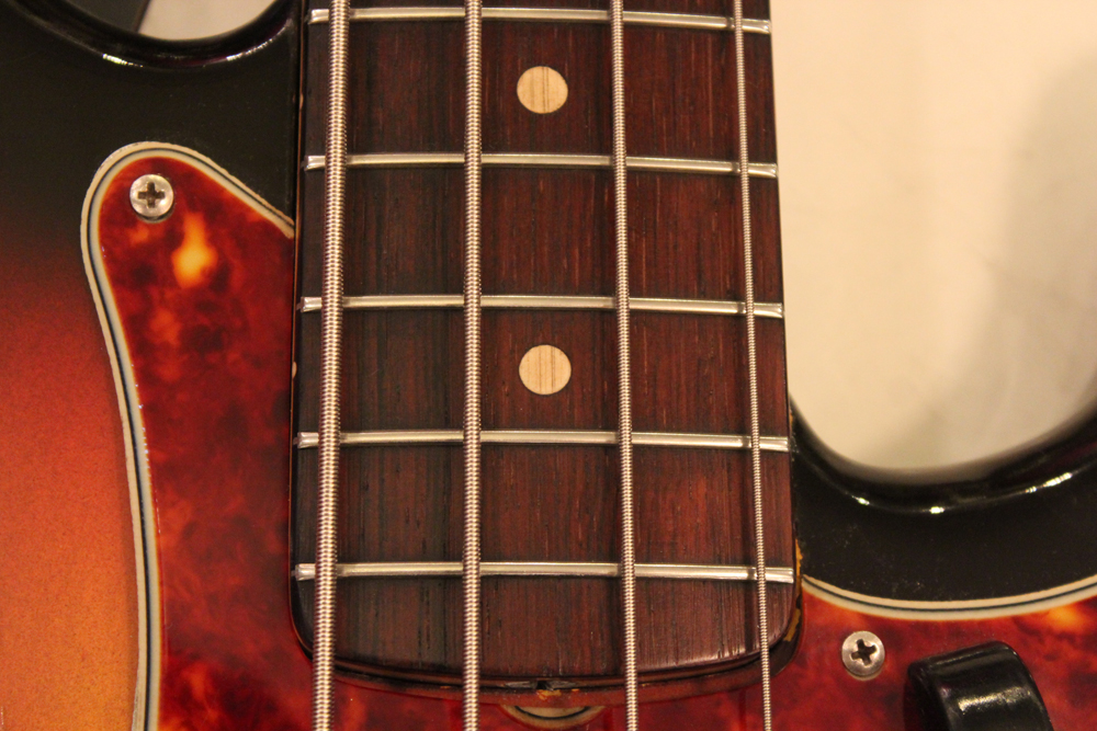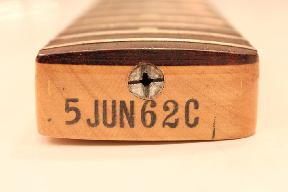 現在のヴィンテージ・マーケットでも大変人気の高いスラブ・プレシジョンですが、62年の中期にはラウンド・フィンガーボードへと変更が行われた為、僅か3年弱の製造期間しかありません