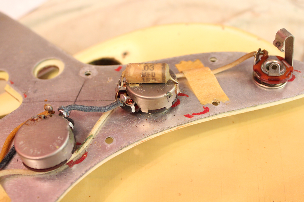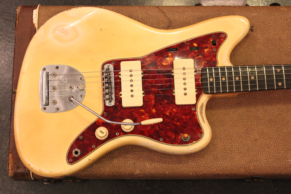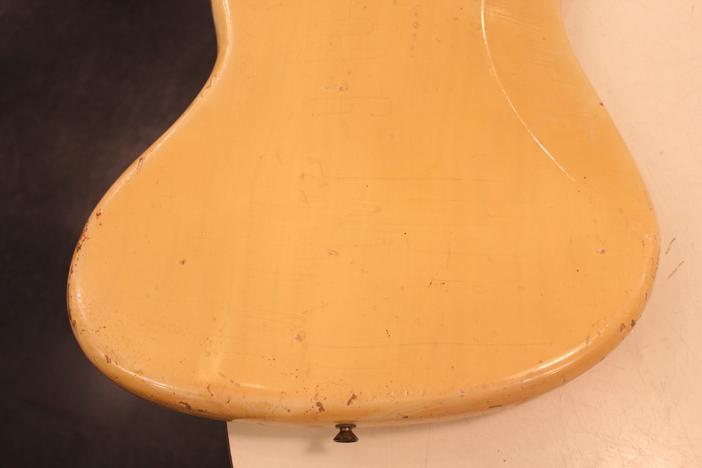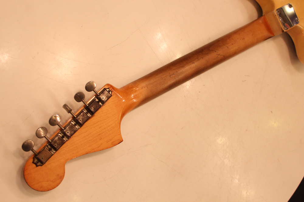 スーパーレアな、ブロンド・フィニッシュ & スラブ・ネックのジャズマスター!58年モデル発売時からラインナップされた"ブロンド・フィニッシュ"は、他のフェンダー・ギター同様に、ボディにはアッシュ材を使用し、シースルーのブロンド・フィニッシュを重ねる事で、アッシュの木目を際立たせる外観を持った独特なフィニッシュで、特にこの時期は、ボディトップとバックの中心部は薄く、サイドは重ね塗りを多くした