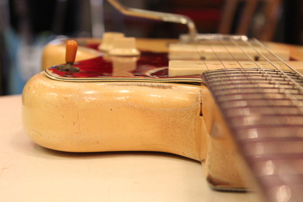 ブロンド・バースト・フィニッシュが特徴です今回入庫は、ローズウッド材が採用されたスラブ・フィンガーボードネック期の60年製で、ヴィンテージなりのウエア等は些少ございますが、全体的には良い状態をキープしたエクセレント・コンディション!