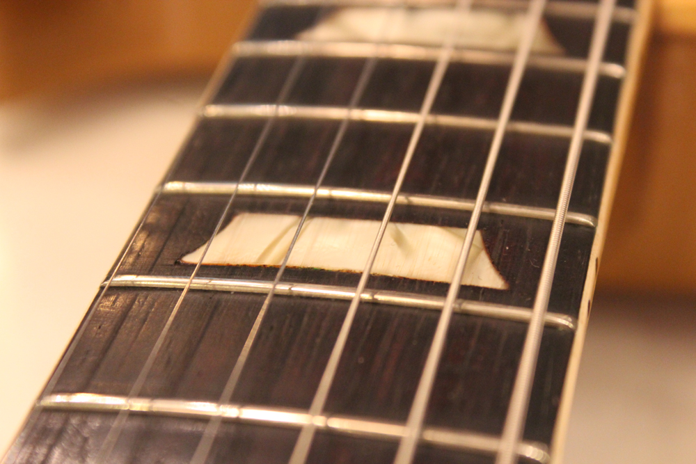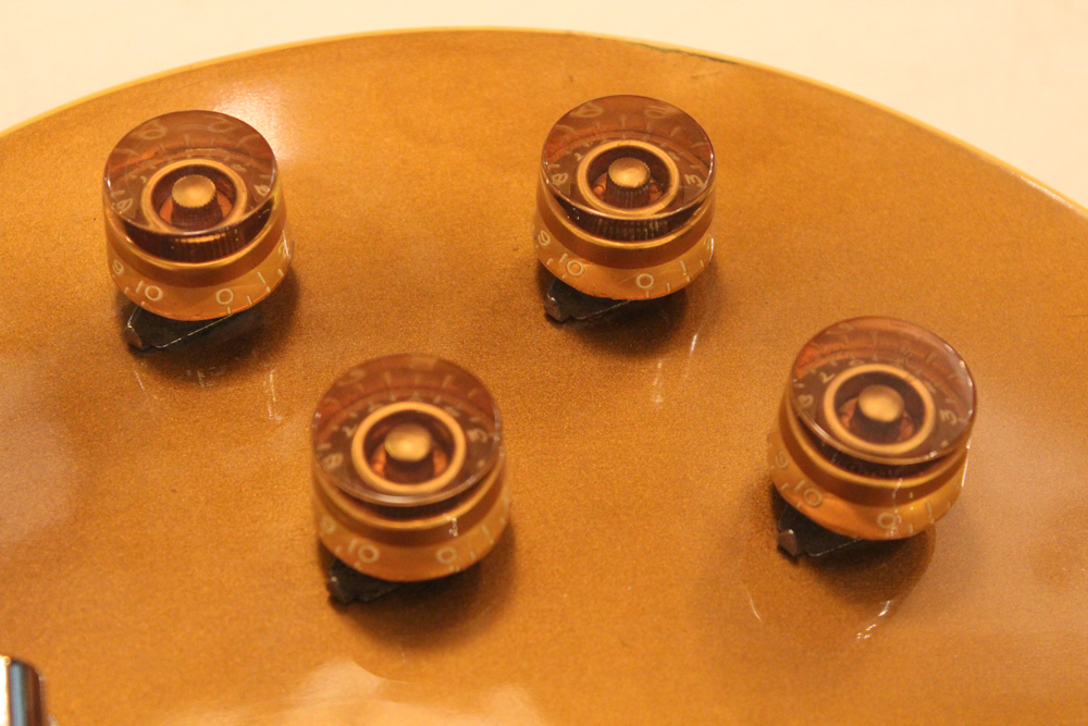 浅いネックセット角により、ブリッジ・ミュートにはコツが必要ですが、質量の有るスチール製のブリッジ・バーと、セット角のお陰により優れたサスティーンと倍音豊かなグッド・サウンドを誇るレス・ポール・モデルでもあります
