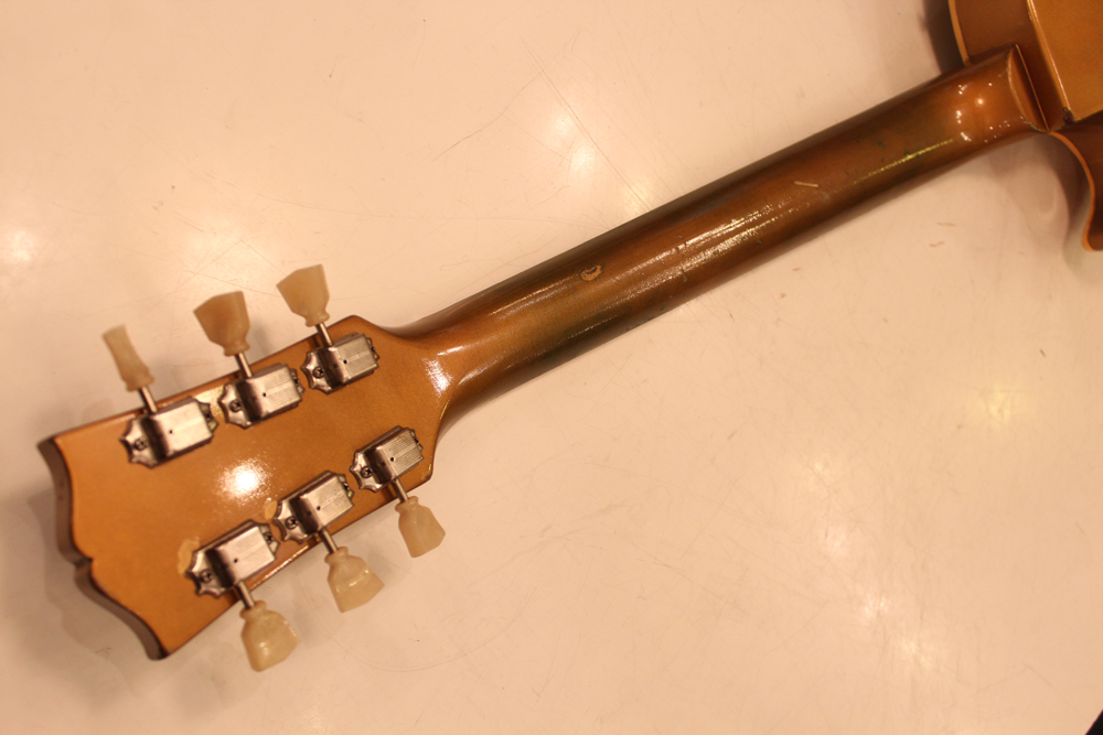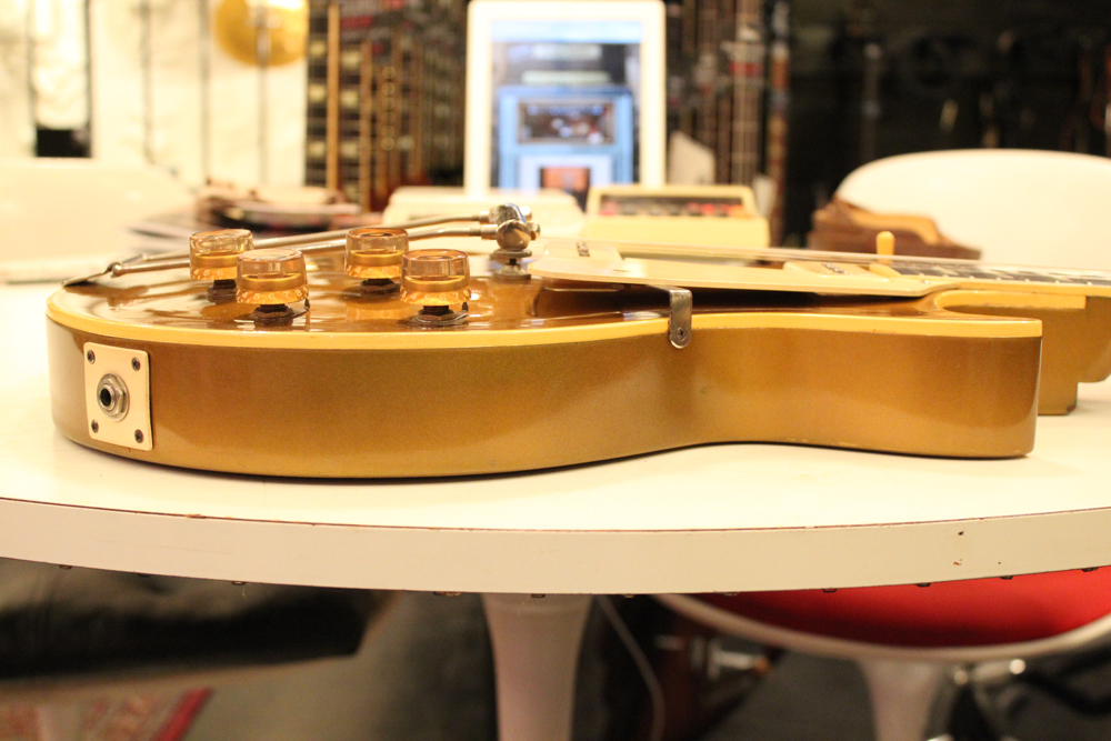 発売当時では珍しかったゴールド・フィニッシュですが、こちらは珍しいボディ・バックやネックまでもが全てゴールドに塗られた"オール・ゴールド・フィニッシュ" !