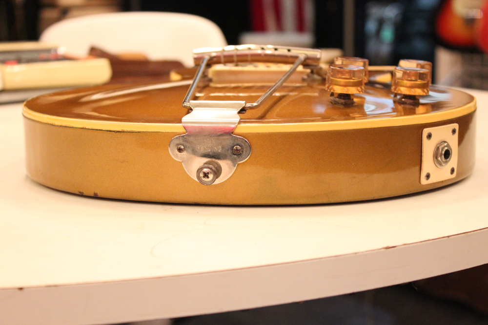 今回入庫は、そのレス・ポール発売初年度の52年製で、トラピーズ・ブリッジと呼ばれるテールピースが搭載されたモデルです