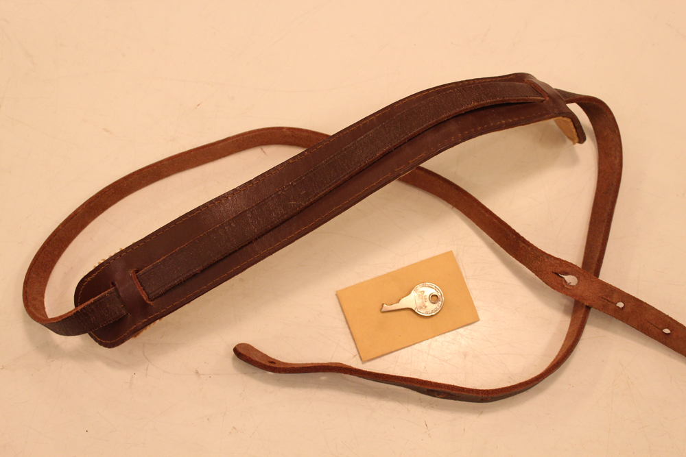 オリジナル・ブラウン・ハードケースにはケース・キーも付属! その他、オリジナル・ストラップと、通常の弦の張り方を可能とする、サードパーティー製のブリッジも付属します