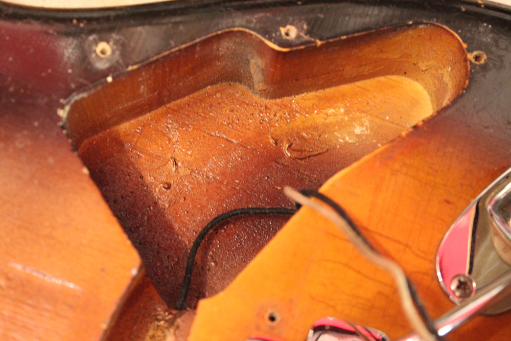 今回入庫は、指板にローズウッド材が採用された59年後期から60年初頭に生産された機体で、スリー・トーン・サンバーストの赤の部分がフェイドした、この年式ならではのツートーン・サンバースト!
