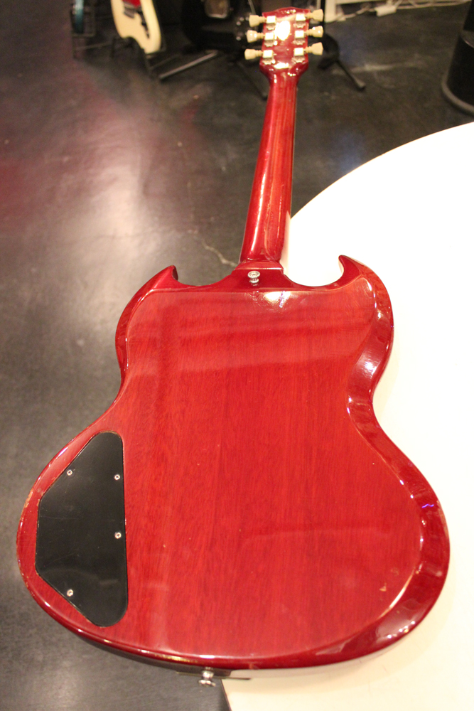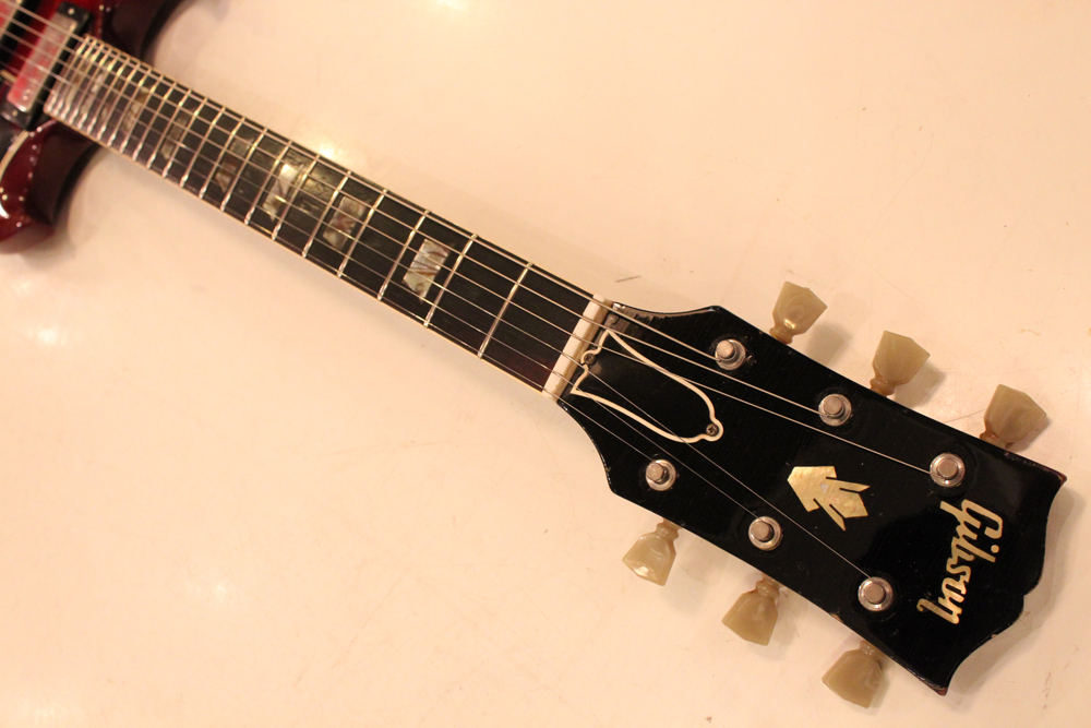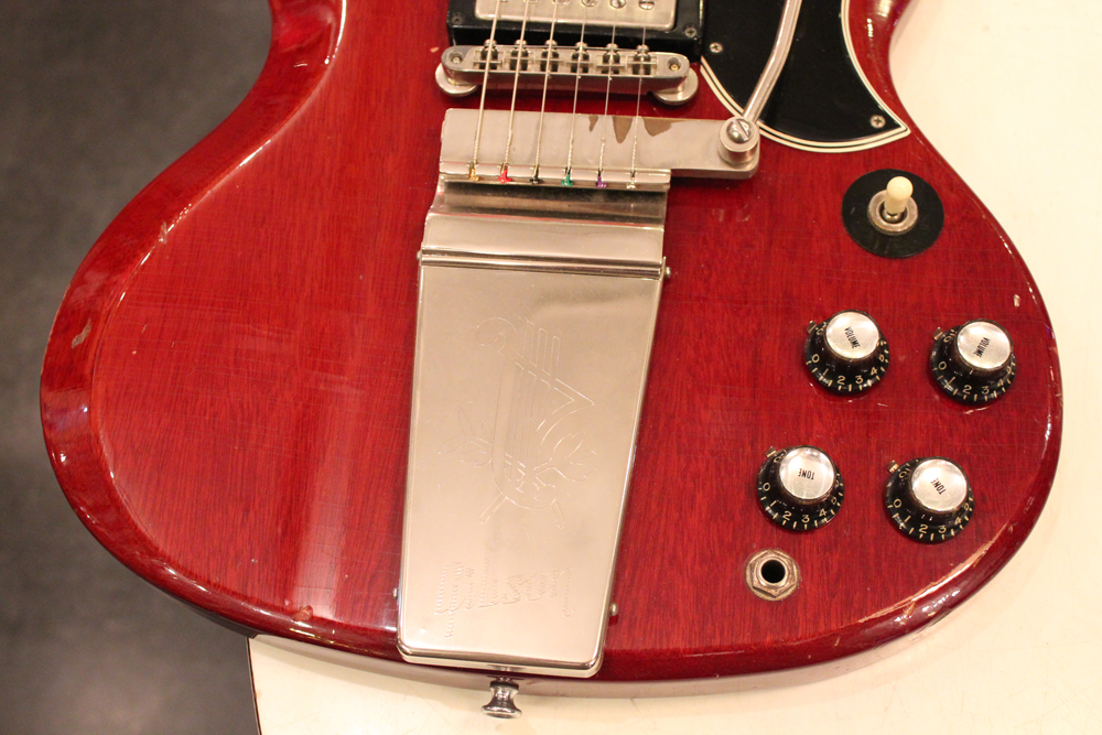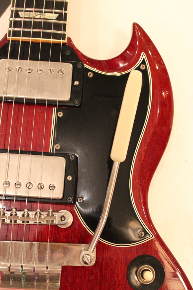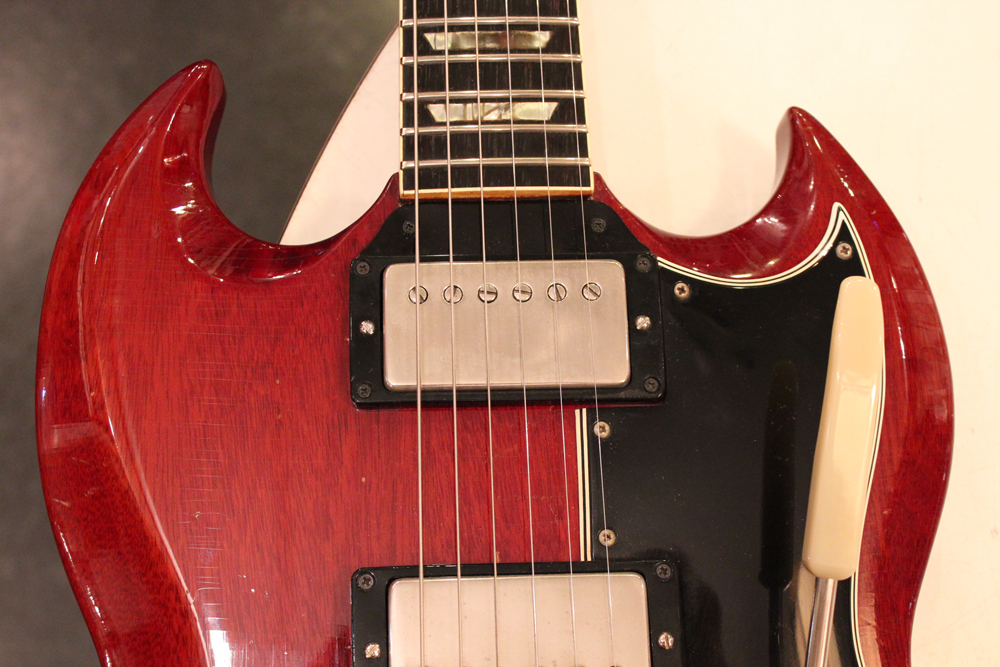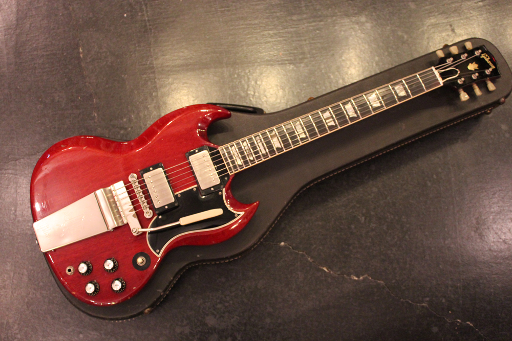 クリーム期のエリック・クラプトンやジョージ・ハリソン等の、レジェンド・ギタリストが使用していた事で人気のスペックながら、63年最後期から65年最初期の僅か1年と数ヶ月の生産期間の為、市場の個体数も少なく、ヴィンテージSGの中でも一番人気を誇るスペックです今回入庫は、ヘッド角以外は64年スペックの65年シリアルを持ったロング・ヴァイブローラ仕様のSG・スタンダード!