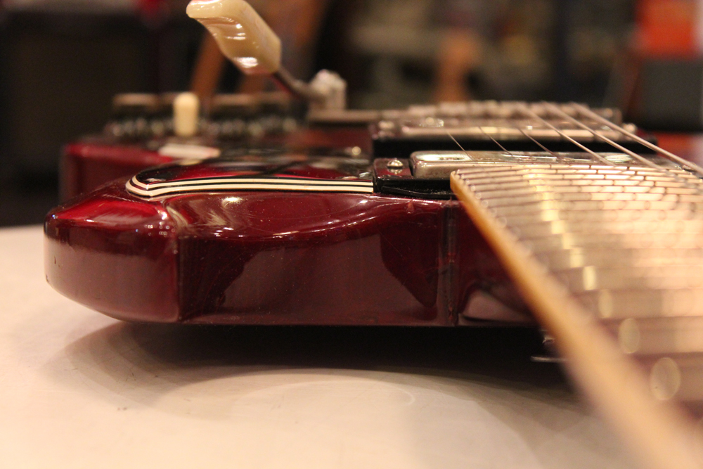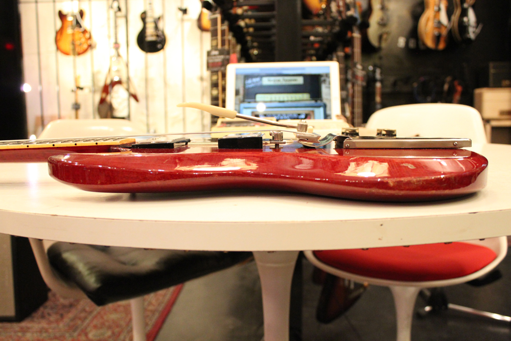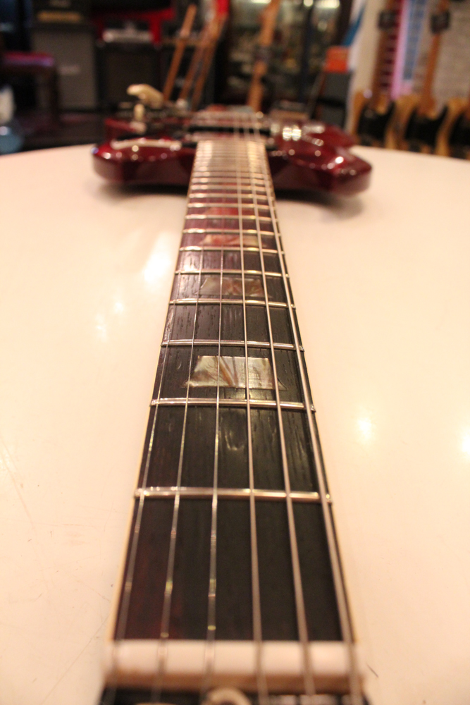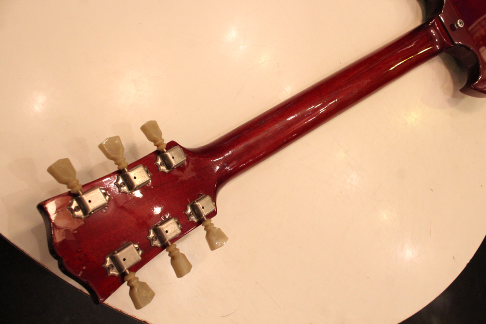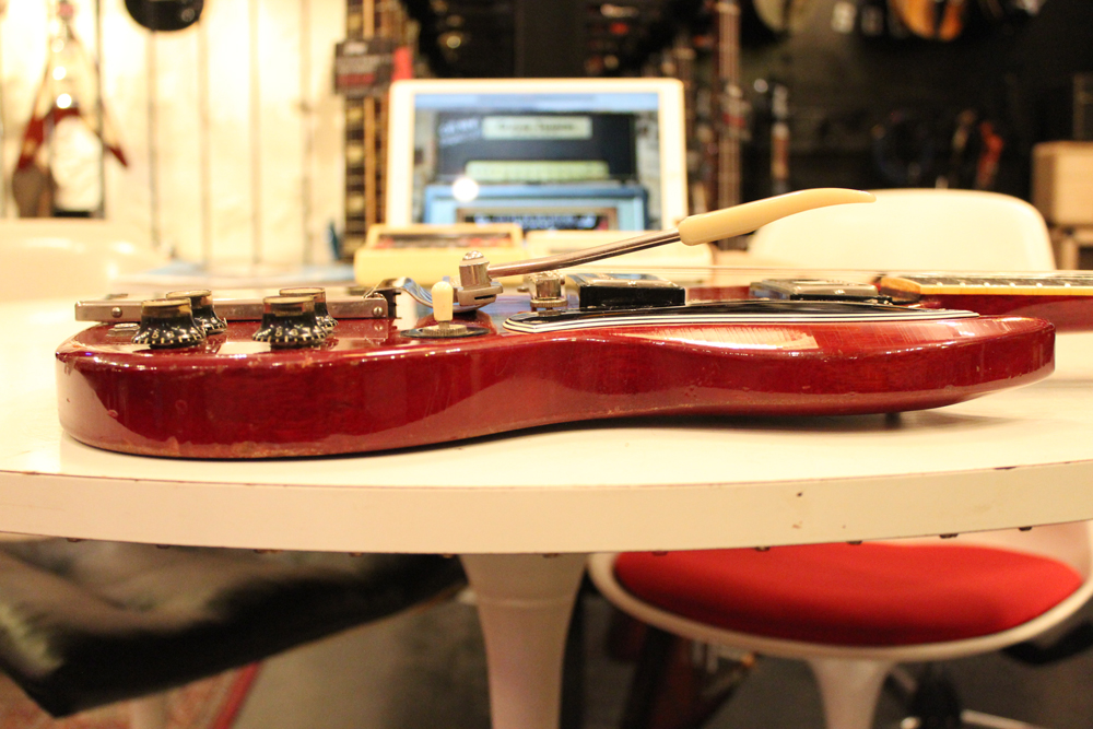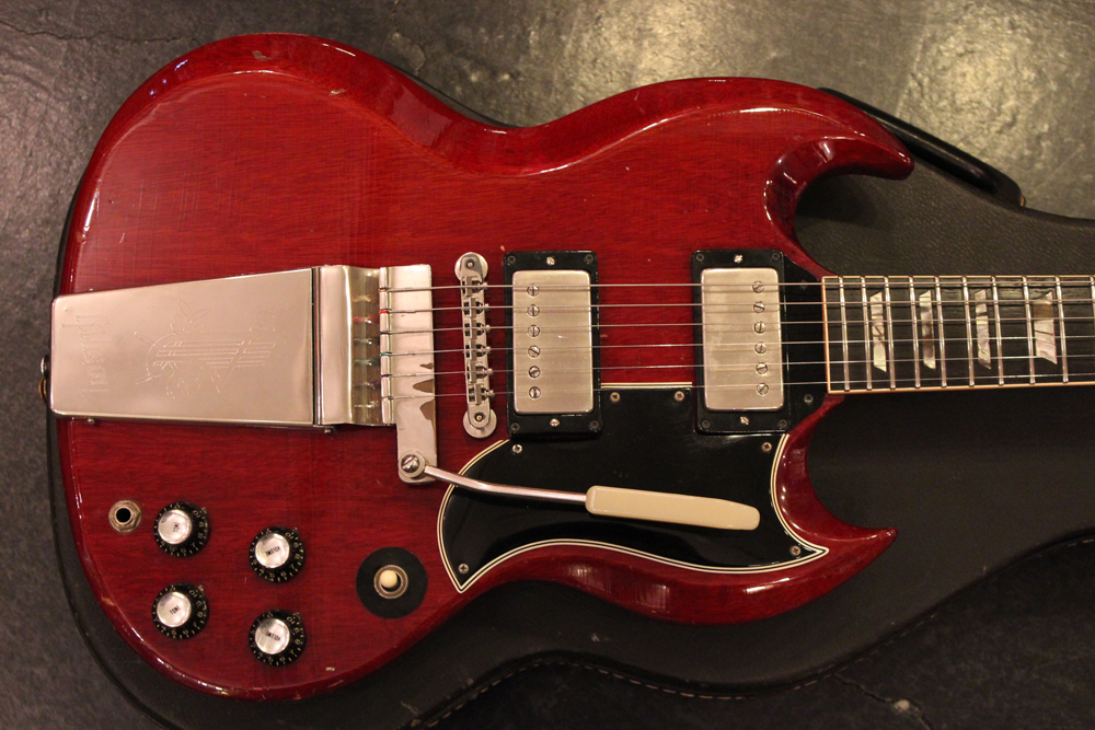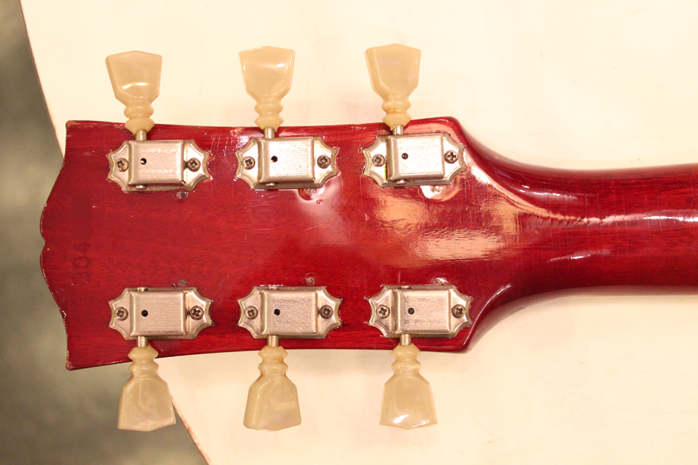 クリーム期のエリック・クラプトンやジョージ・ハリソン等の、レジェンド・ギタリストが使用していた事で人気のスペックながら、63年最後期から65年最初期の僅か1年と数ヶ月の生産期間の為、市場の個体数も少なく、ヴィンテージSGの中でも一番人気を誇るスペックです今回入庫は、ヘッド角以外は64年スペックの65年シリアルを持ったロング・ヴァイブローラ仕様のSG・スタンダード!