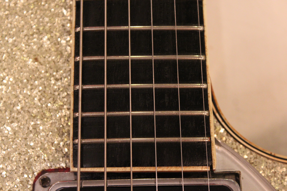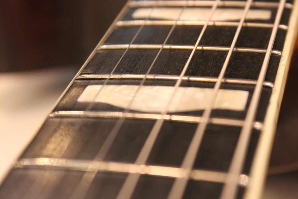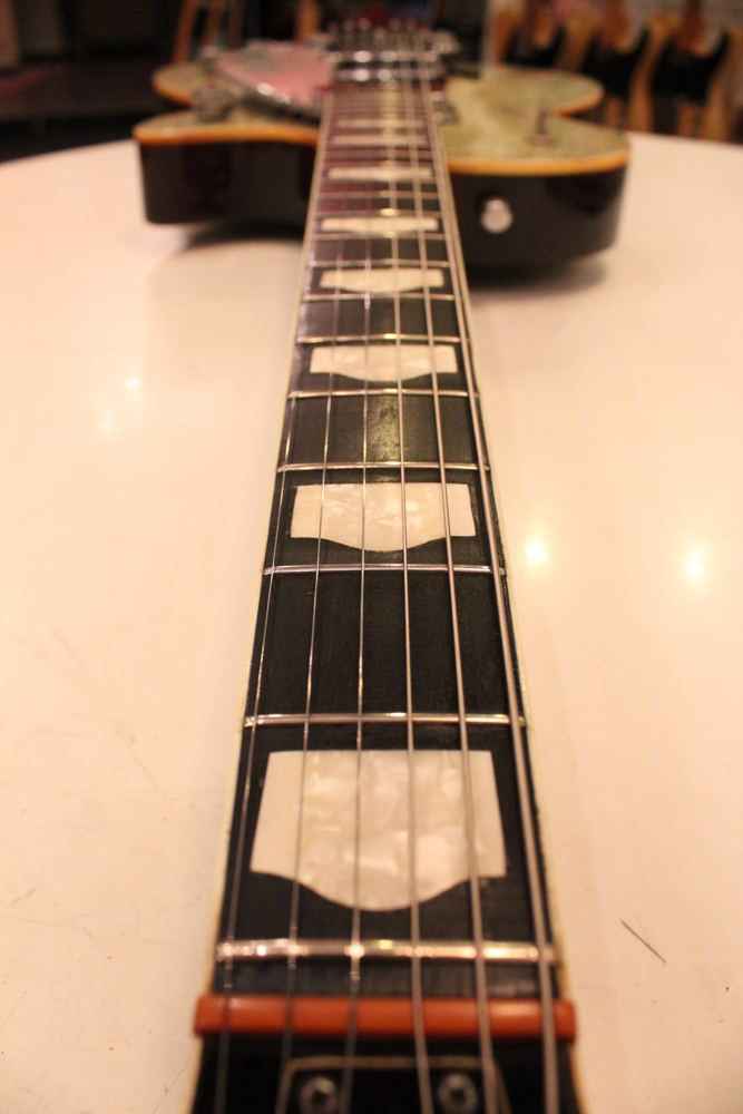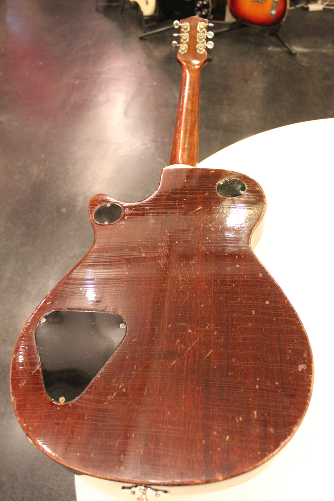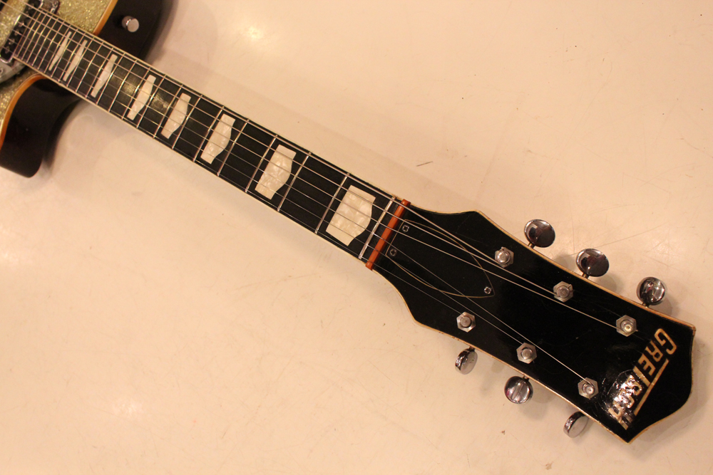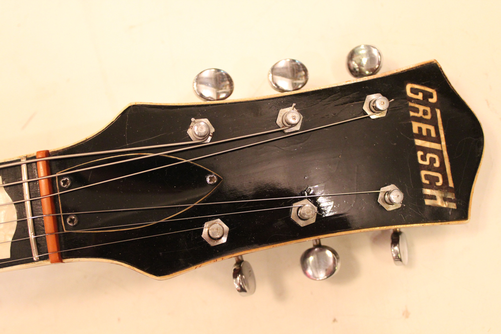 56年後期に仕様変更されたハンプトップ・インレイの指板とヘッドの"T"ルーフ・グレッチ・ロゴが特徴です
