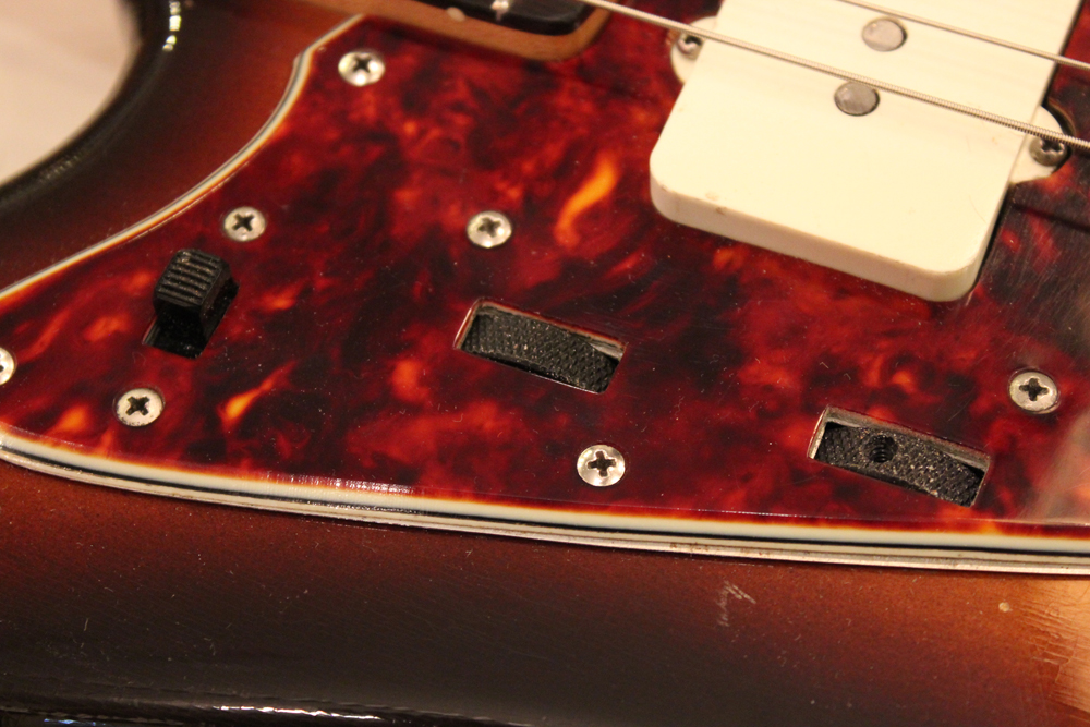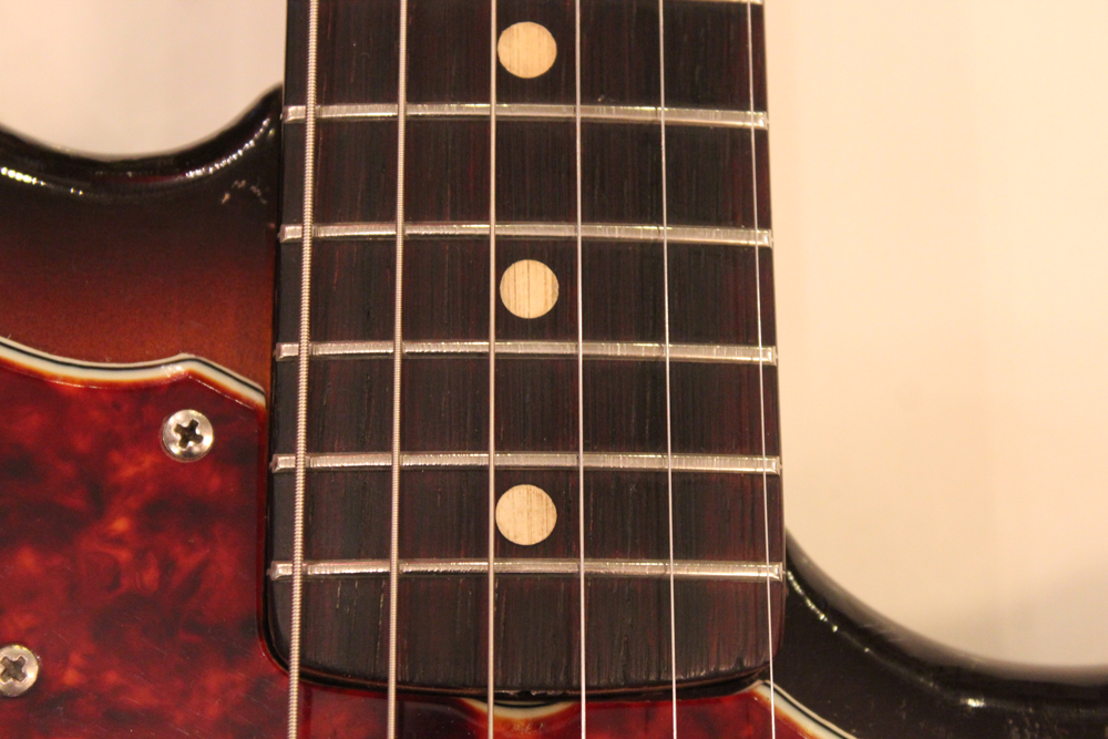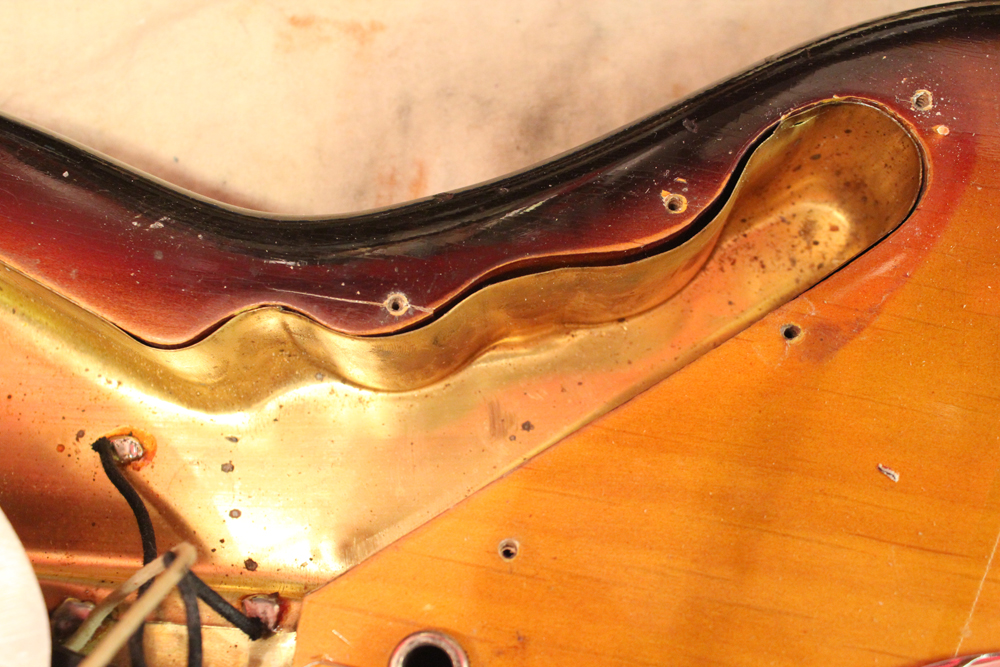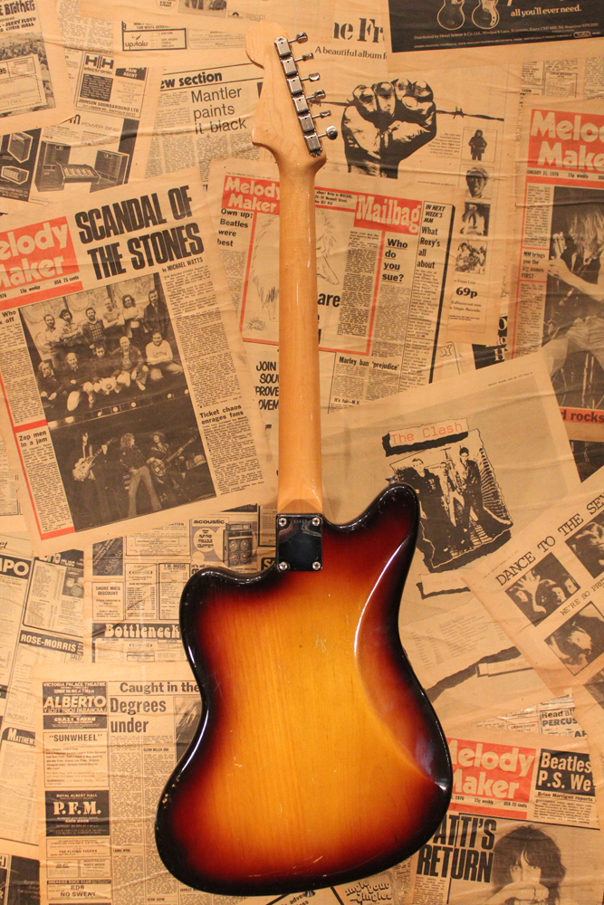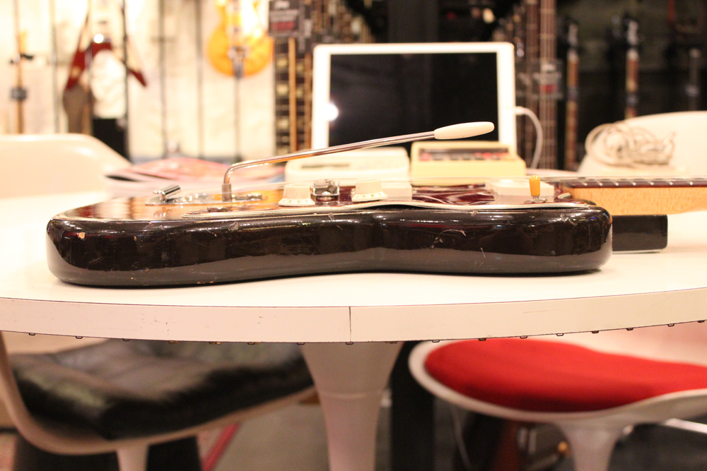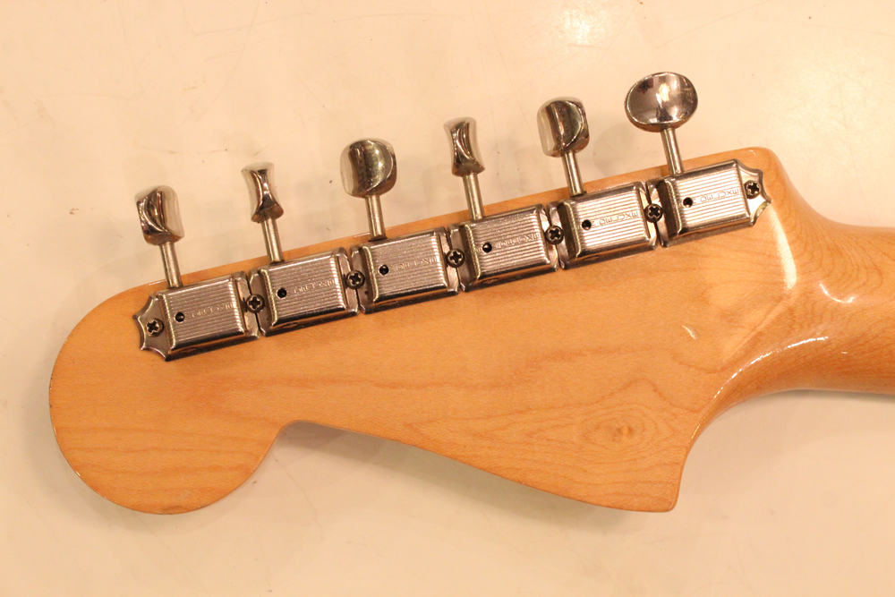 ジャズマスターは、58年後半の発売から数ヶ月で、マイナーチェンジが行われ、アルミ製のゴールド・アノダイズド・ピックガードから、より高級感のあるタートイスシェル柄のセルロイド・ピックガードに変更されます今回見つけて来た機体は、そのマイナーチェンジ初期の59年製!