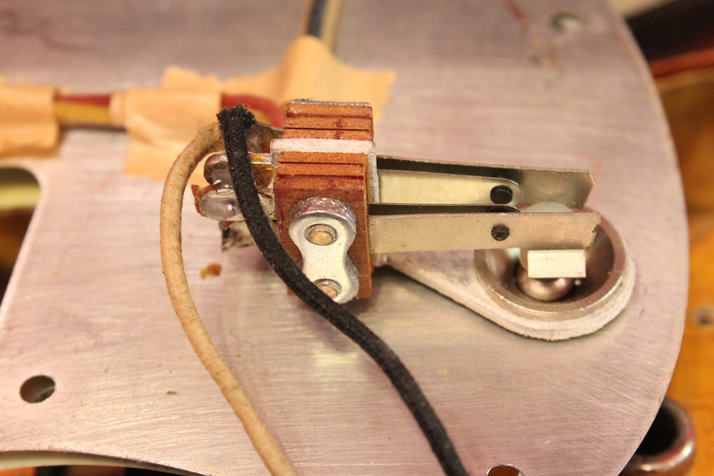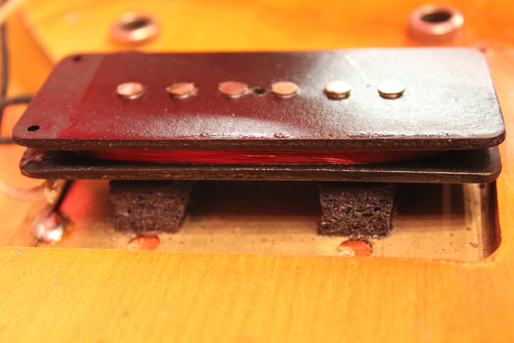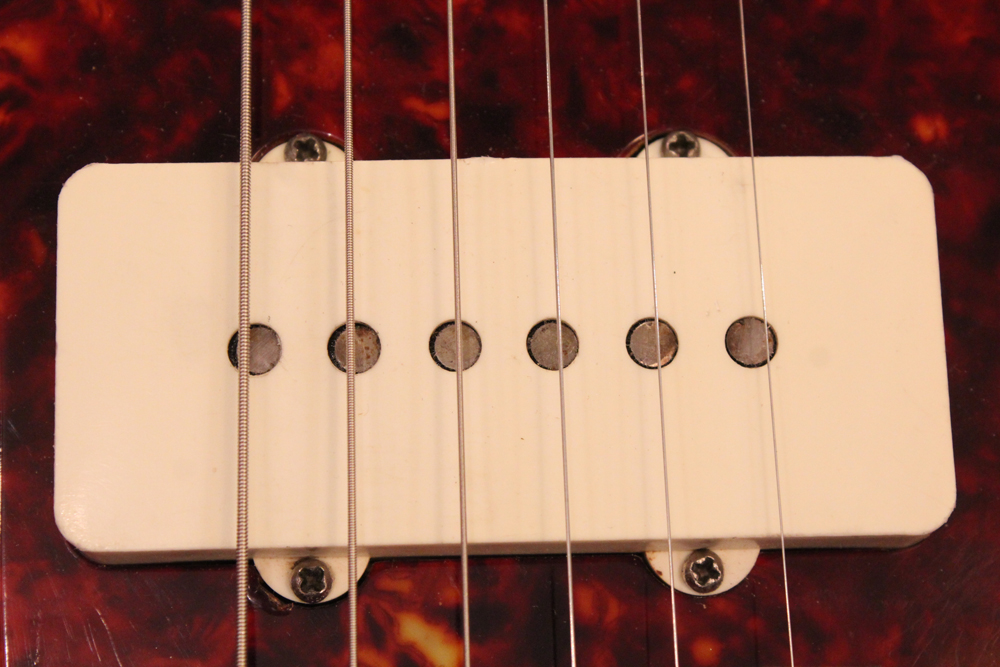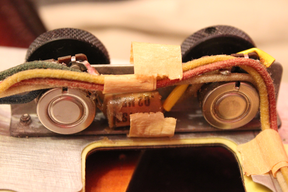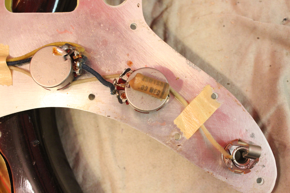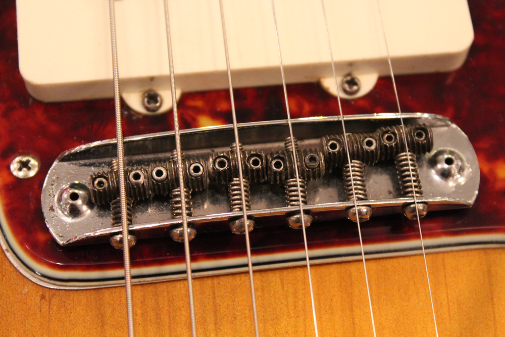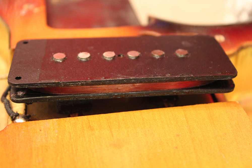 ジャズマスターは、58年後半の発売から数ヶ月で、マイナーチェンジが行われ、アルミ製のゴールド・アノダイズド・ピックガードから、より高級感のあるタートイスシェル柄のセルロイド・ピックガードに変更されます今回見つけて来た機体は、そのマイナーチェンジ初期の59年製!