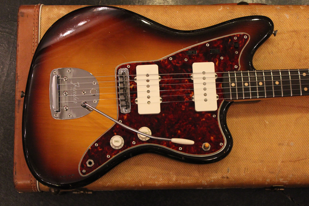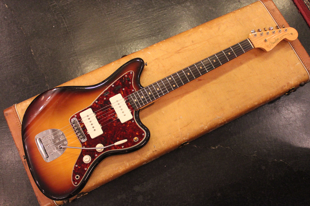 この年式ならではな、微妙に赤成分がフェイドしたツートーン・サンバーストのジャズマスターです59年代の機体ですので、後年よりも塗膜の薄いフィニッシュが採用されている為、荒れた外観の個体も多い50年代後期ですが、今回入庫は、大変綺麗な状態を留めた、エクセレント・クリーン・コンディション!