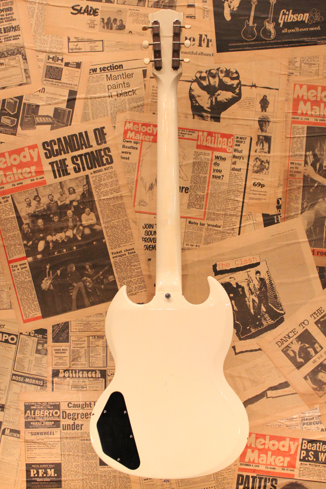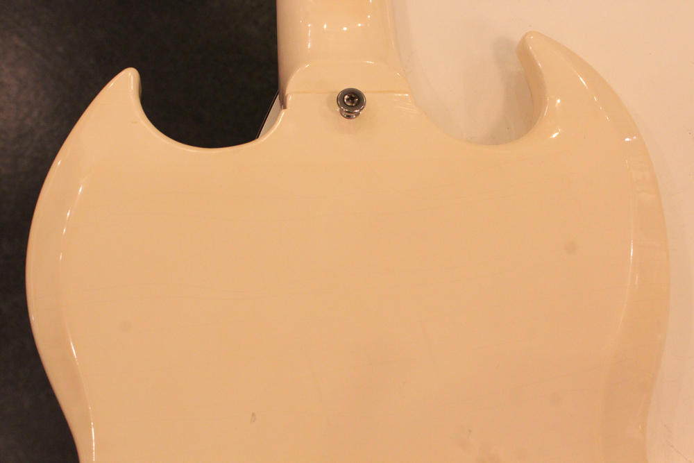 カスタム・カラー "オリジナル・ポラリスホワイト・フィニッシュ"の "SG スペシャルをGET!42ミリ幅のワイドナット、17度ヘッドアングルと、60年代初期仕様の SG スペシャル