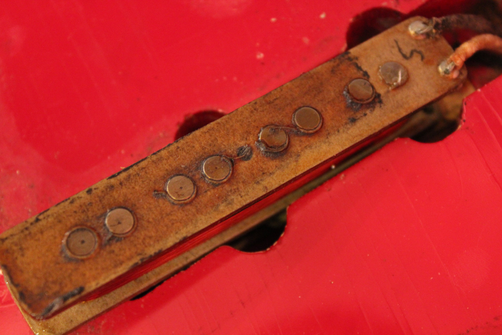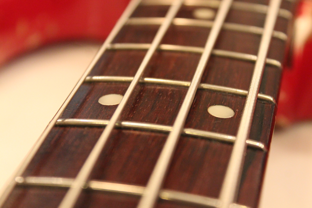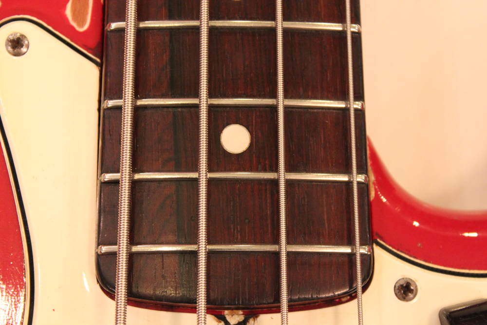 ドットマーカー・ネックのオリジナル・ダコタ・レッド・フィニッシュの65年製ジャズ・ベース!