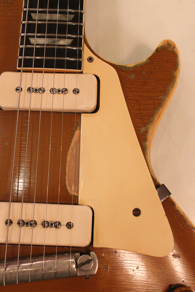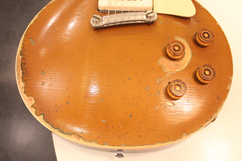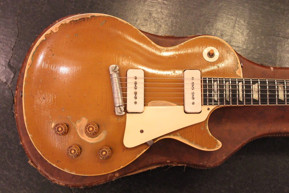 ラップ・ラウンド・ブリッジ仕様の 54年製 ゴールド・トップ・レスポール!ビートアップな凄みのある、ヴィンテージならではのルックスながら、、フレット・ナットのリプレイス以外は変更点のないフル・オリジナル!
