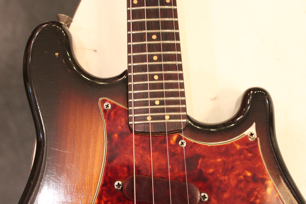 56年にフェンダーより発売された”エレクトリック・マンドリン” 通称 “Mandcaster”今回入庫は、最初のスラブ・ローズウッド・フィンガーボードの59年製の機体で、既にアルダー材使用の個体も出ている時期ですが、こちらはメイプルネック期同様なアッシュ材をボディに使用しています