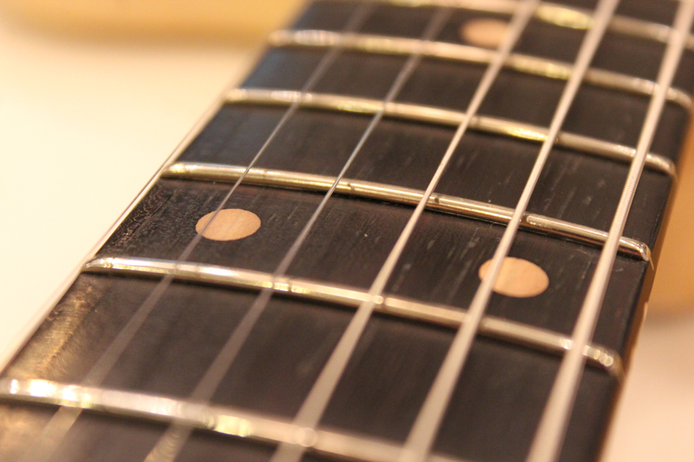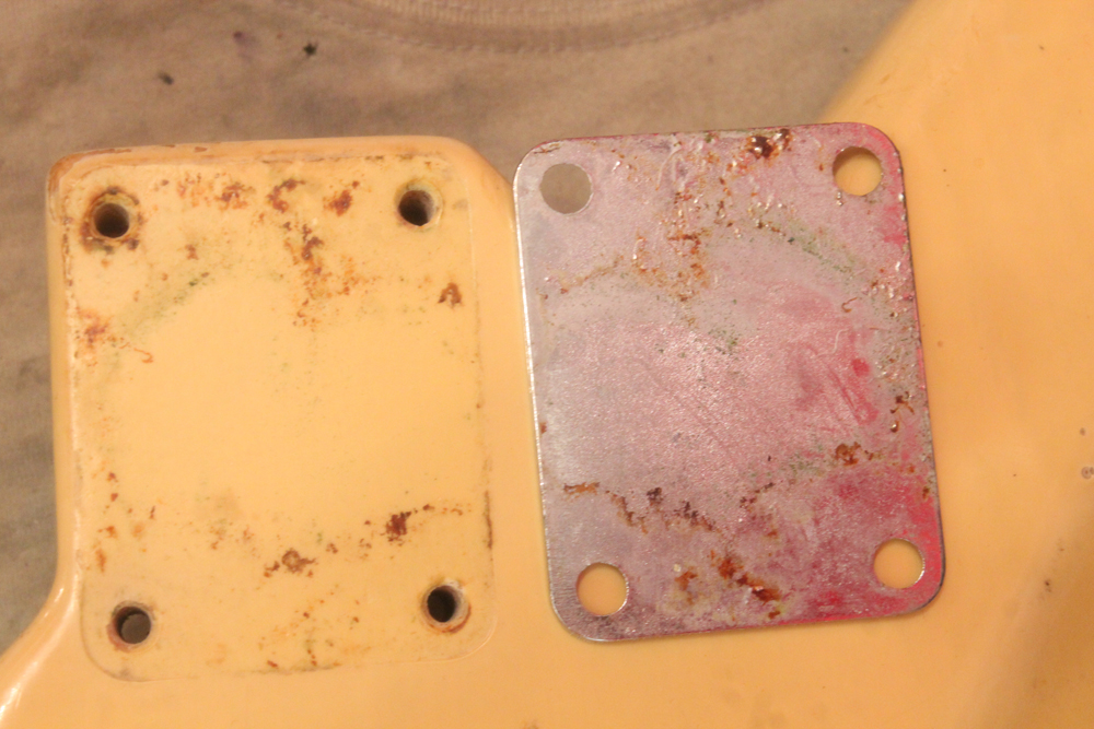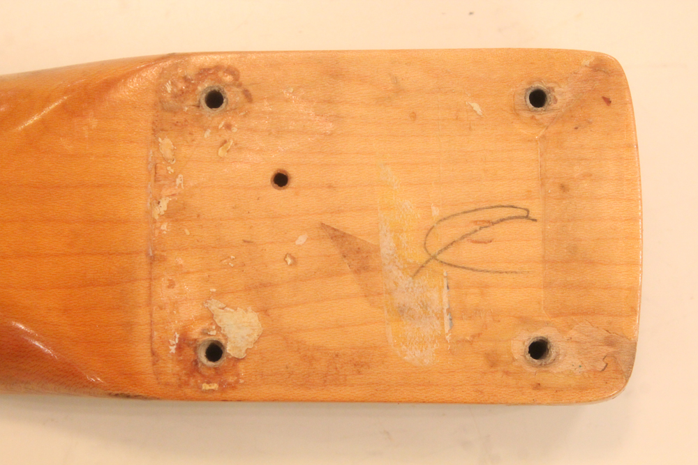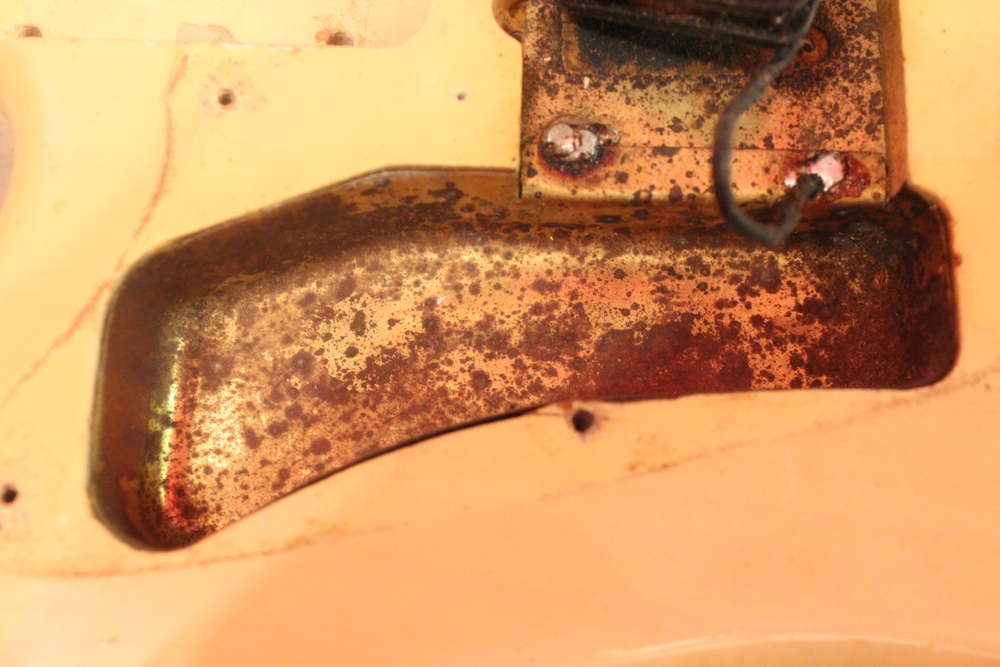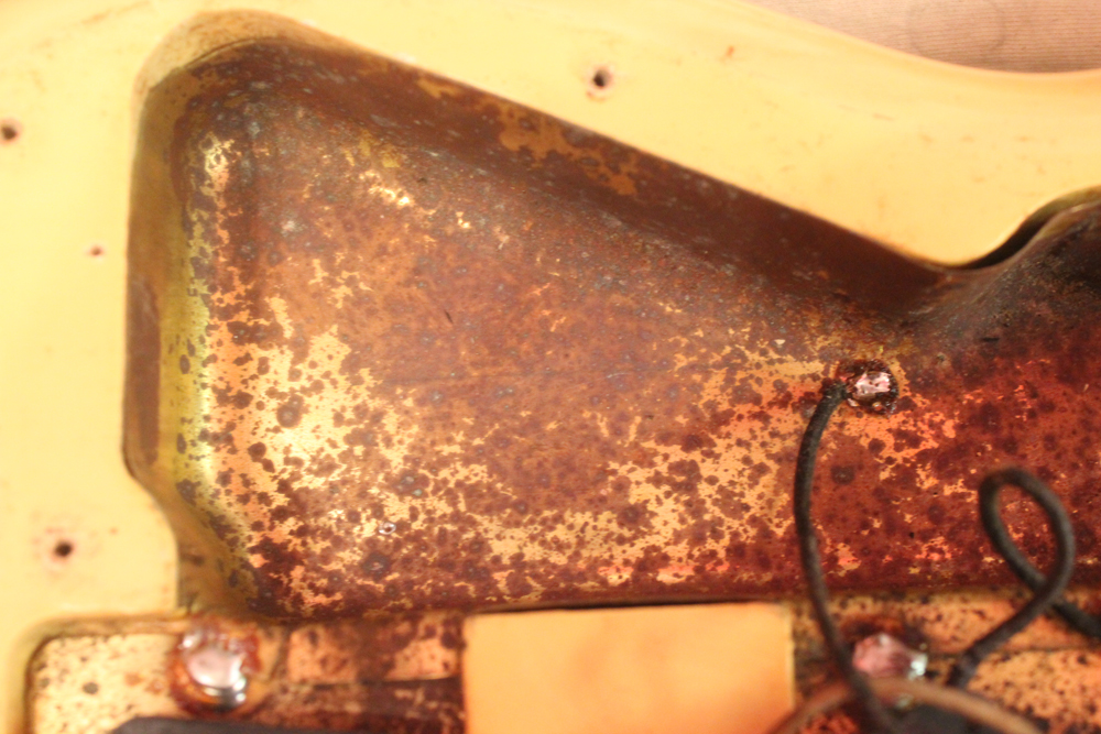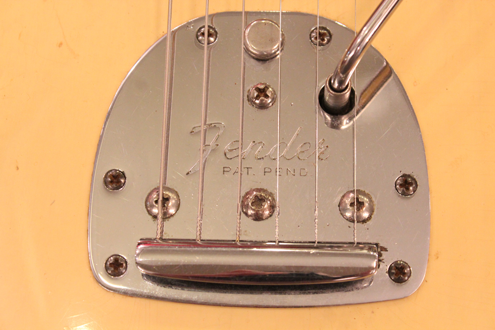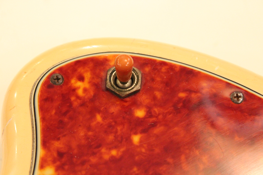 特にこの時期は、ボディトップとバックの中心部は薄く、サイドは重ね塗りを多くした、ブロンド・バースト・フィニッシュが特徴です今回見つけて来た機体は、フェンダー最初のローズウッド材を採用したスラブ・フィンガーボード・ネック仕様で、