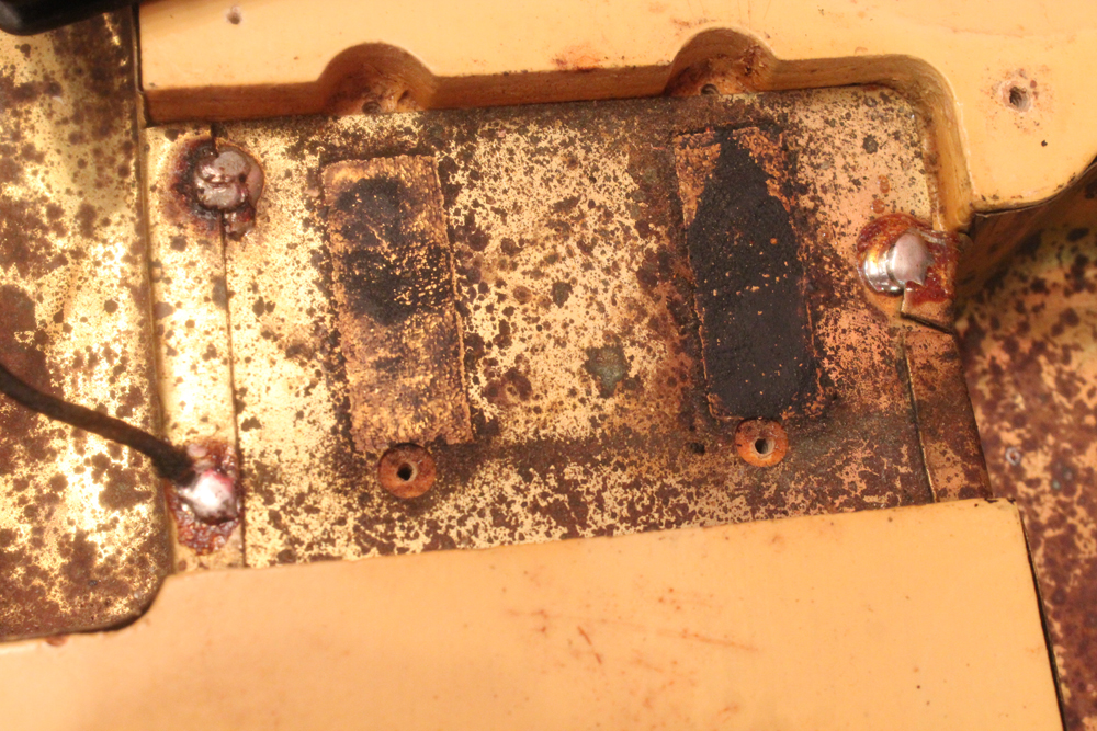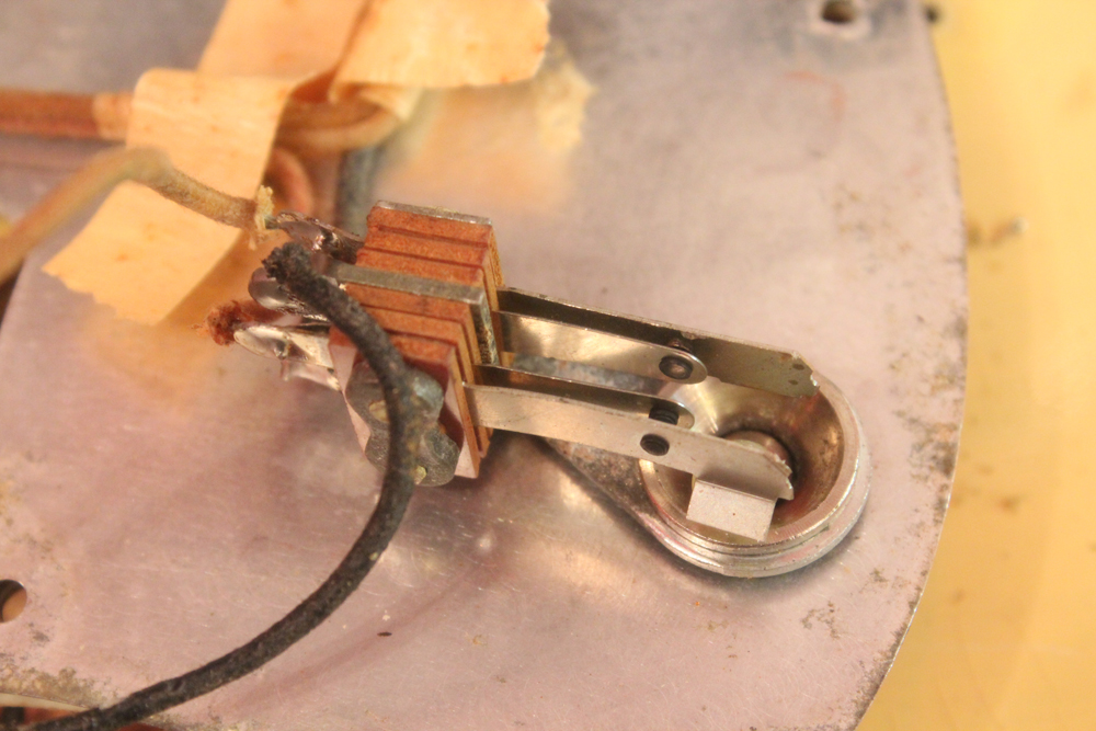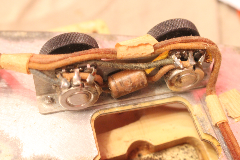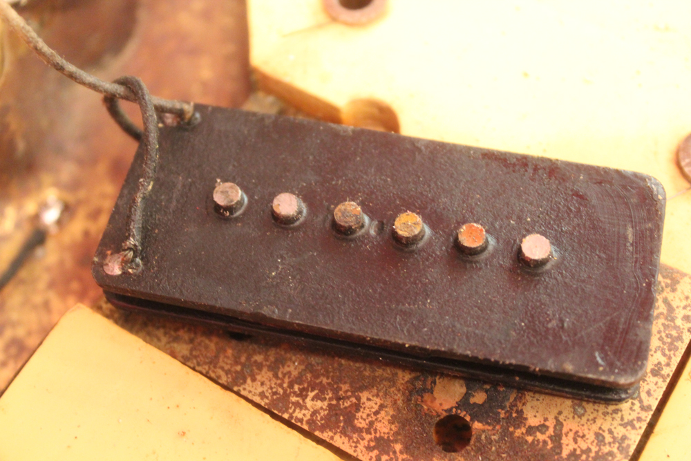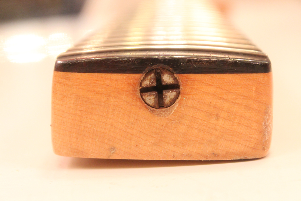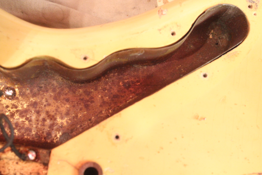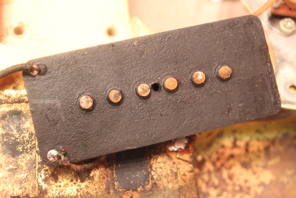 特にこの時期は、ボディトップとバックの中心部は薄く、サイドは重ね塗りを多くした、ブロンド・バースト・フィニッシュが特徴です今回見つけて来た機体は、フェンダー最初のローズウッド材を採用したスラブ・フィンガーボード・ネック仕様で、