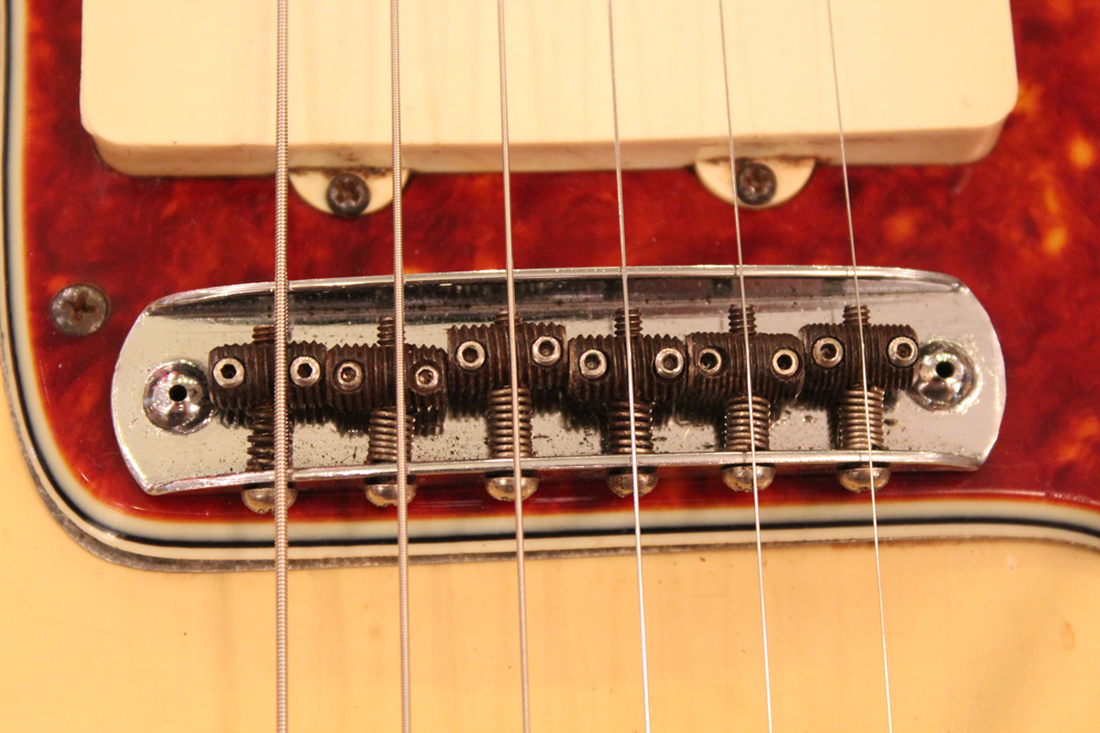 内容も、フレット、ナットはリプレイス済みで、プレイアビリティも良く、その他はブリッジ駒のハイトアジャスターのネジを綺麗な実働品にリプレイスした以外は、パーツもオリジナルです