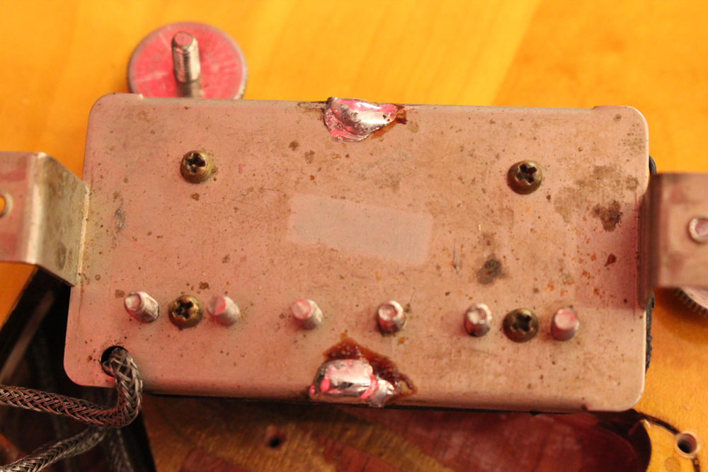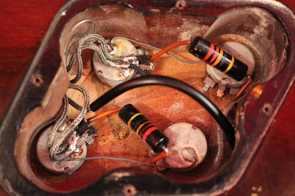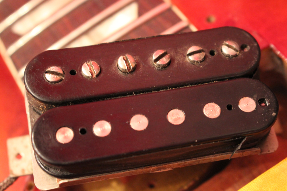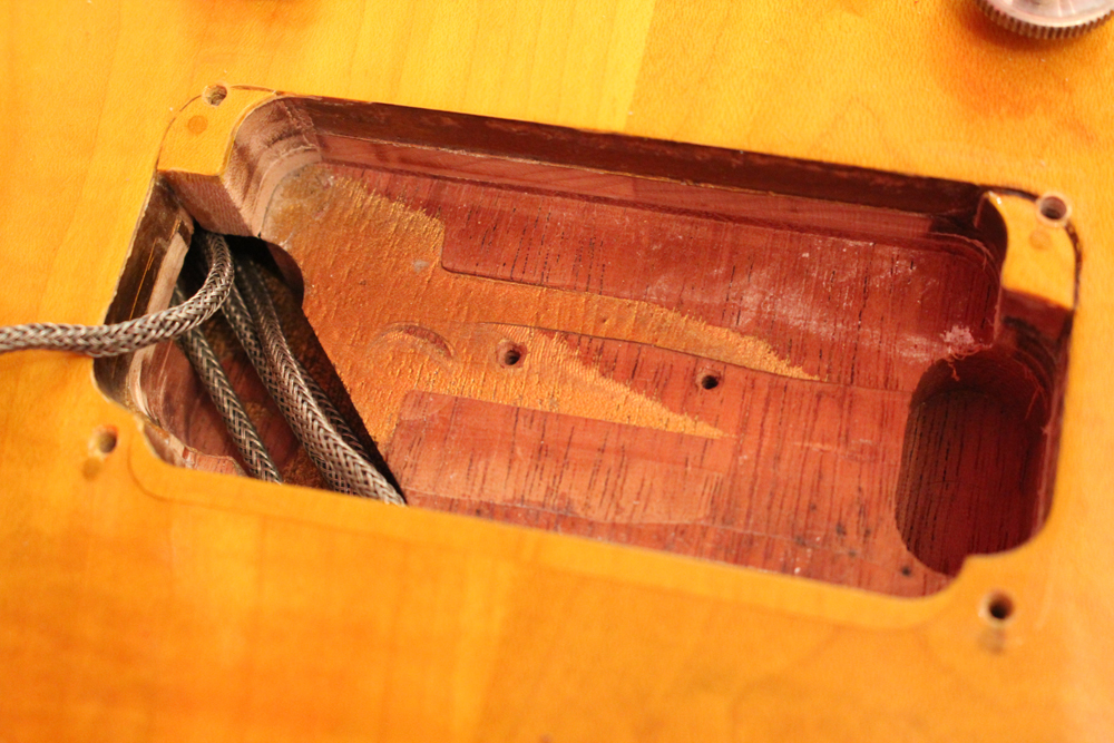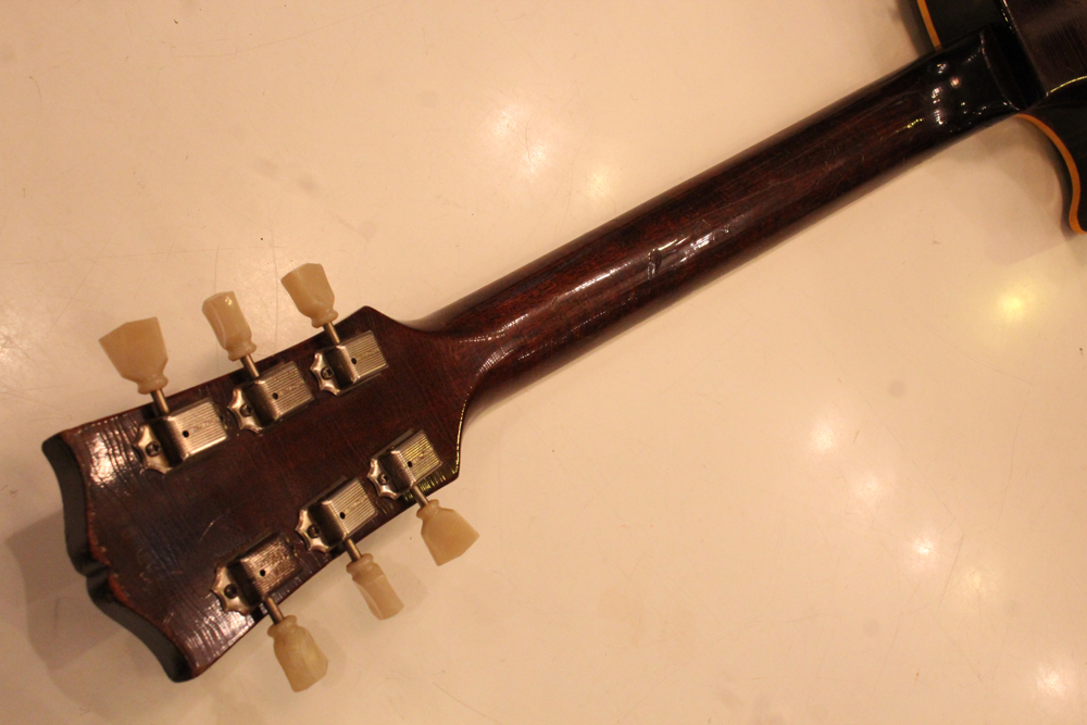 ピックアップカバーとピックアップ・リングはDMCパーツを使用していますその他、パーツはフレット、ナットはリプレイス済みですが、その他は全てオリジナル56年のパーツがそのまま使用されており、本来がダークバック仕様の為、バックパネルもバーストと同様にブラックカラーの物が使用されています