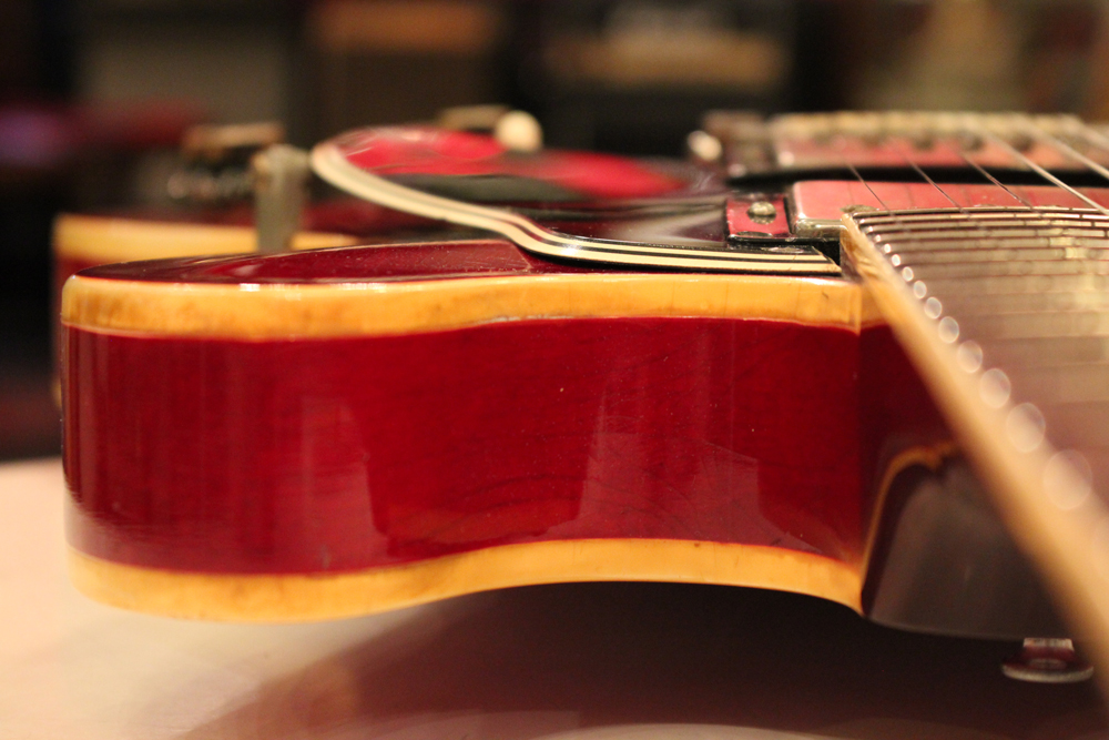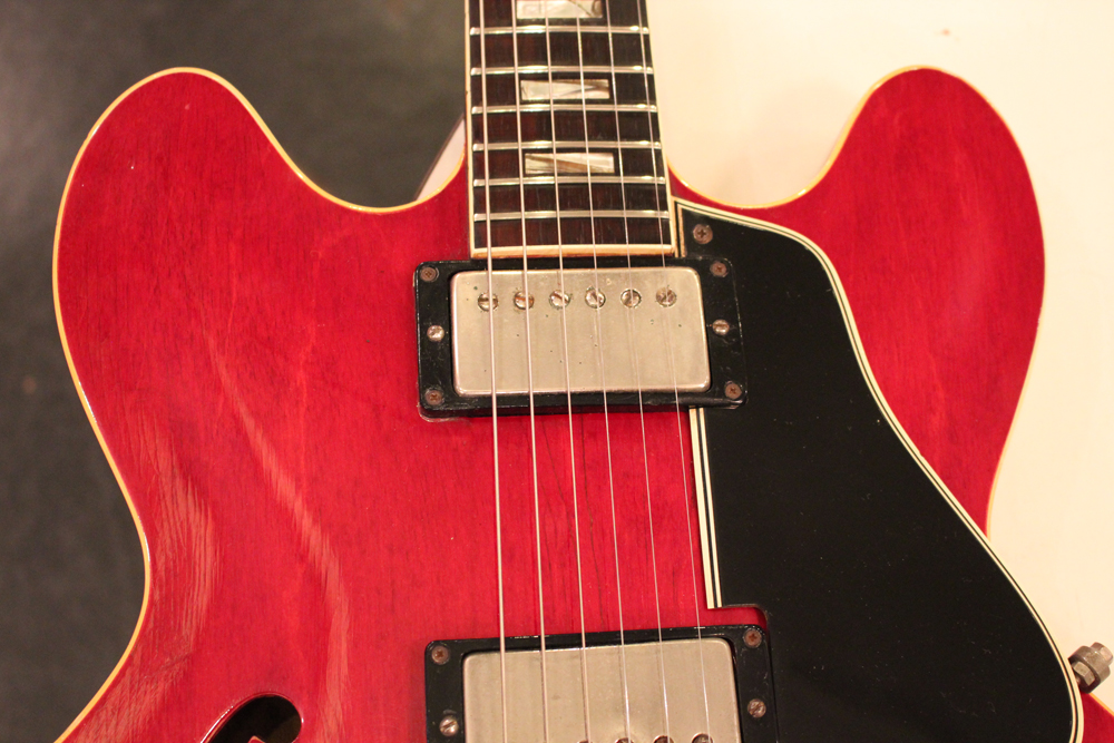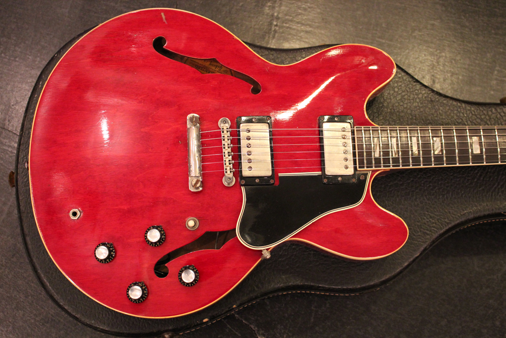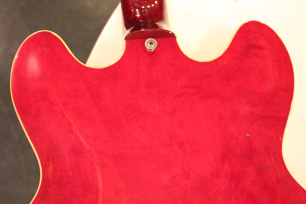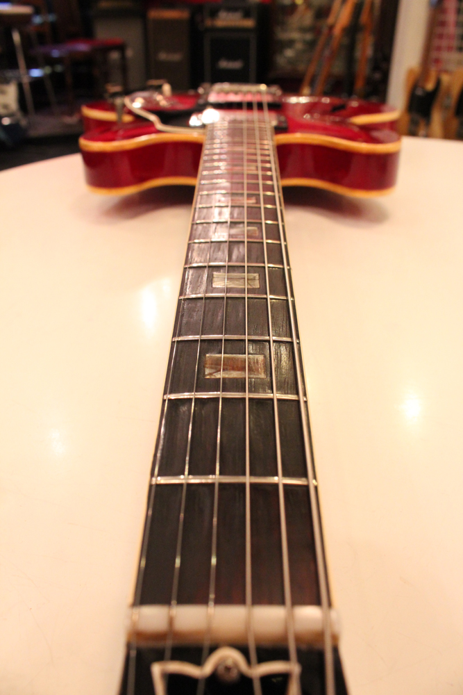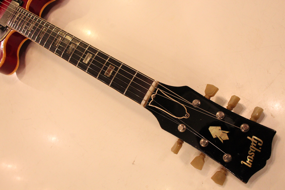 "ミッキーマウス・イヤー"と呼ばれる丸いホーン形状から、ほんの少しシャープにデザインされた新しいホーン形状が64年製の特徴で、翌65年にはよりシャープな形状へと変化しますので、今回入庫は、正にクリーム期のクラプトンの名演 "Crossroad" で使用された"ES-335" と同様の内容を持った機体です