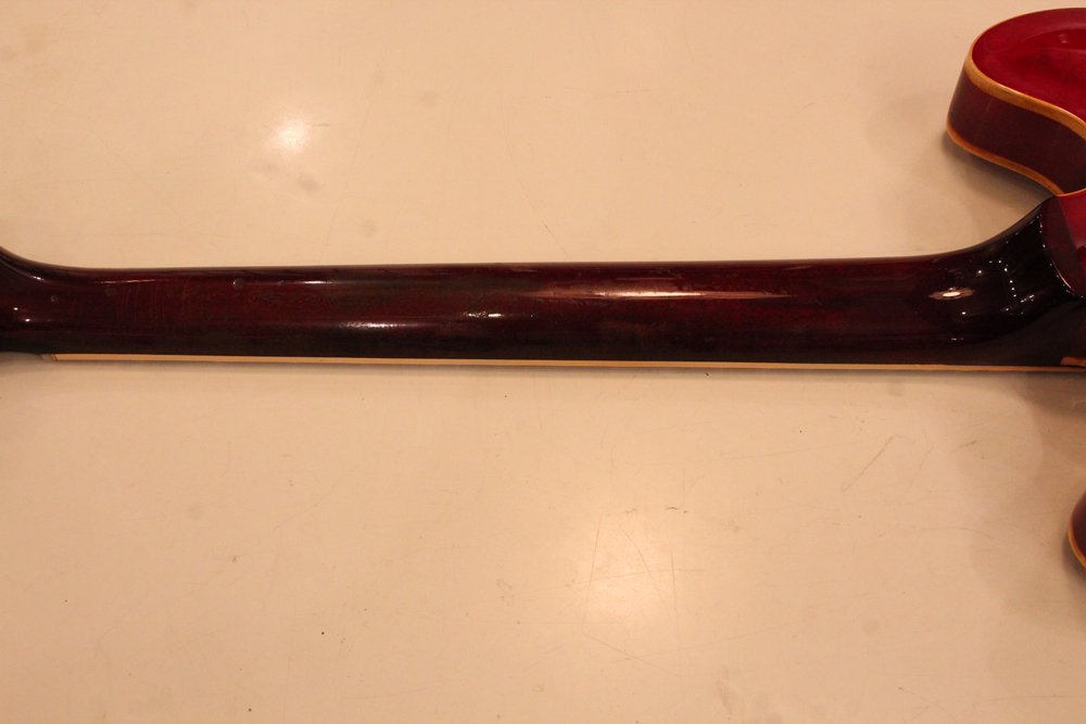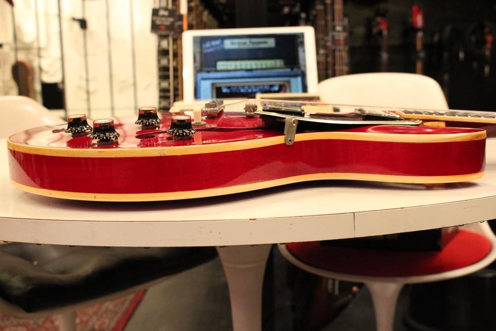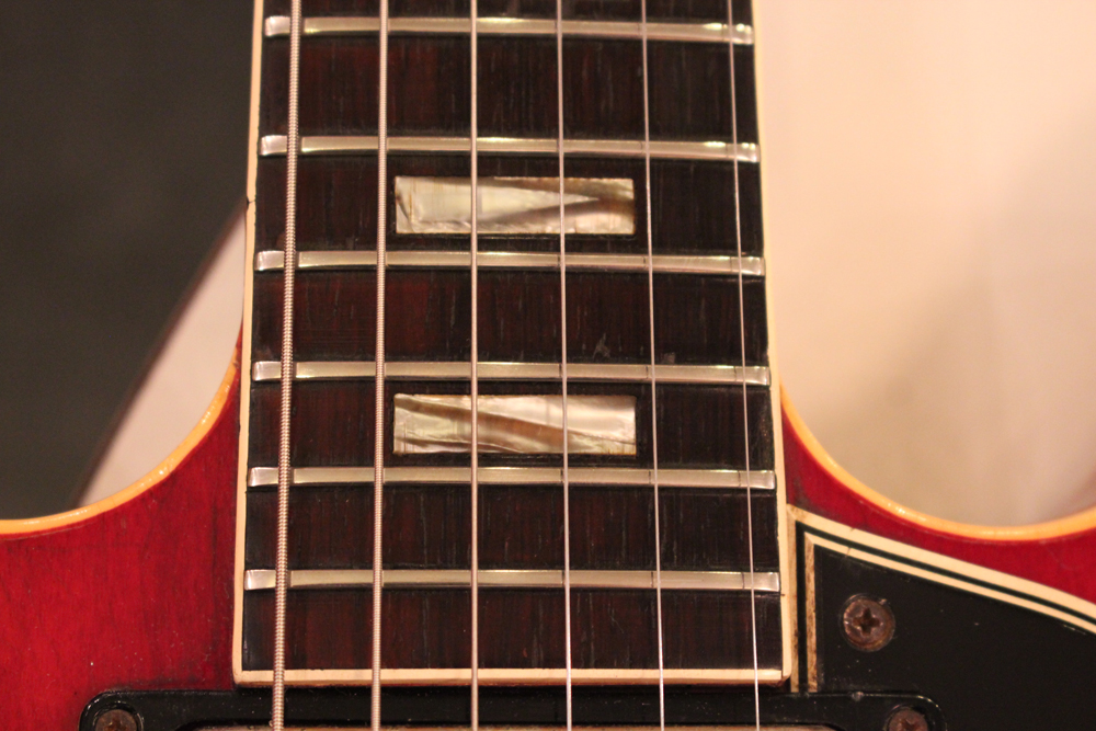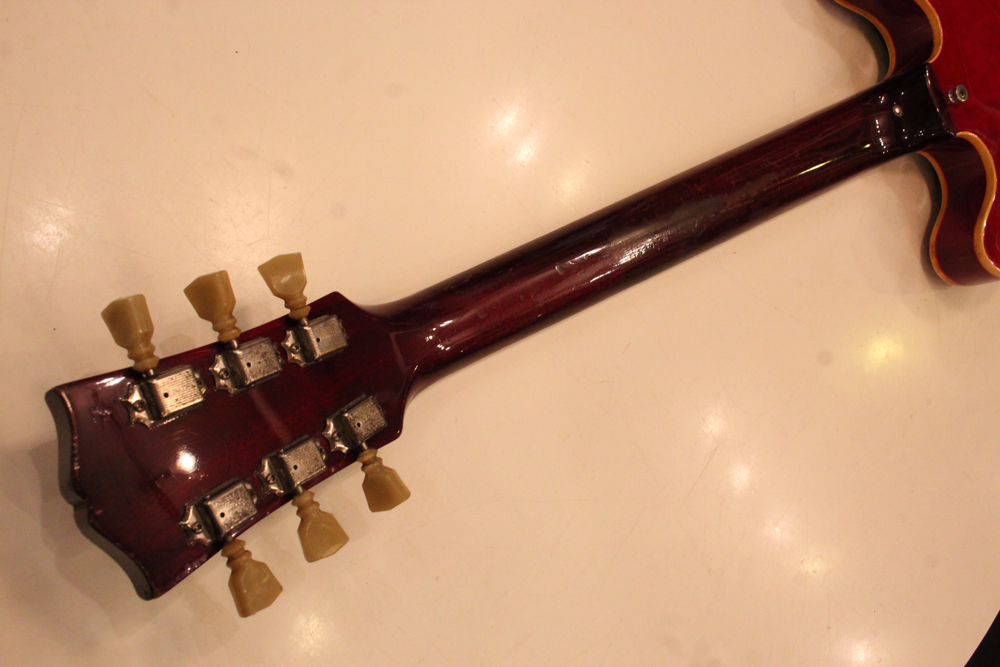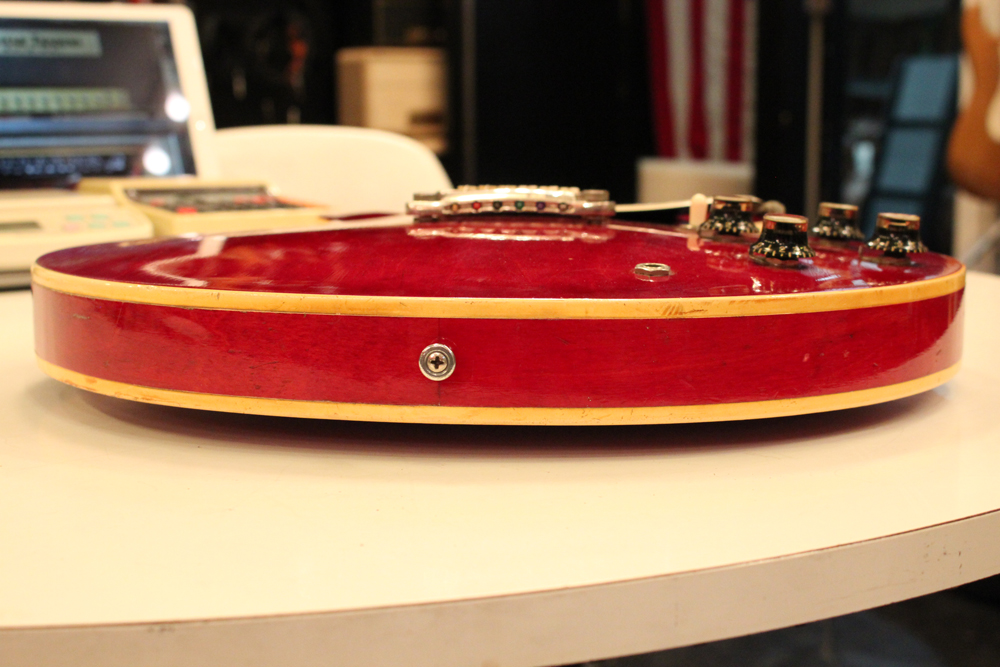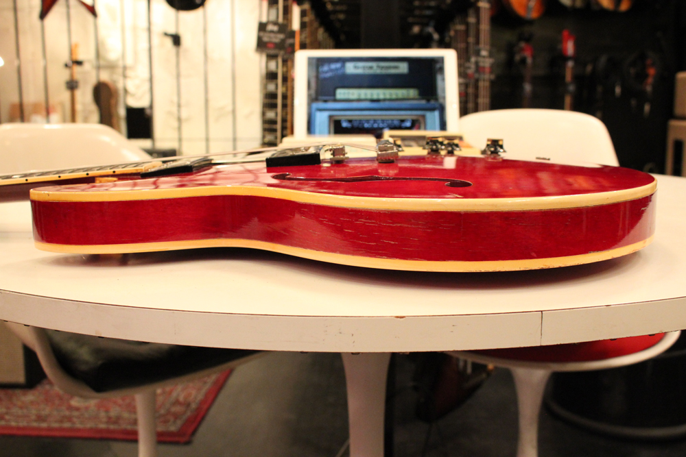 "ミッキーマウス・イヤー"と呼ばれる丸いホーン形状から、ほんの少しシャープにデザインされた新しいホーン形状が64年製の特徴で、翌65年にはよりシャープな形状へと変化しますので、今回入庫は、正にクリーム期のクラプトンの名演 "Crossroad" で使用された"ES-335" と同様の内容を持った機体です