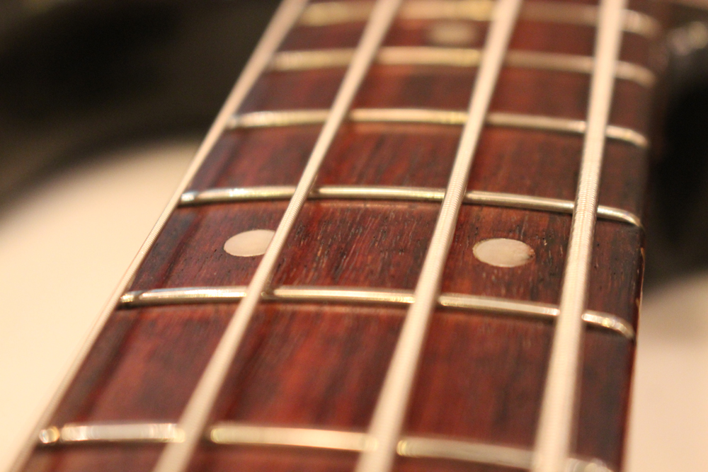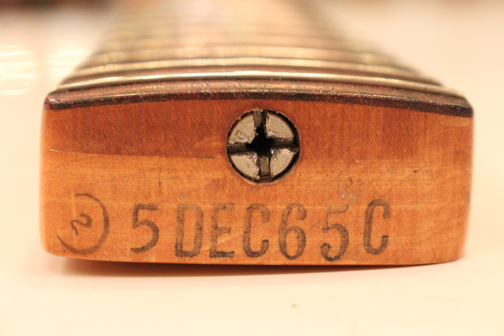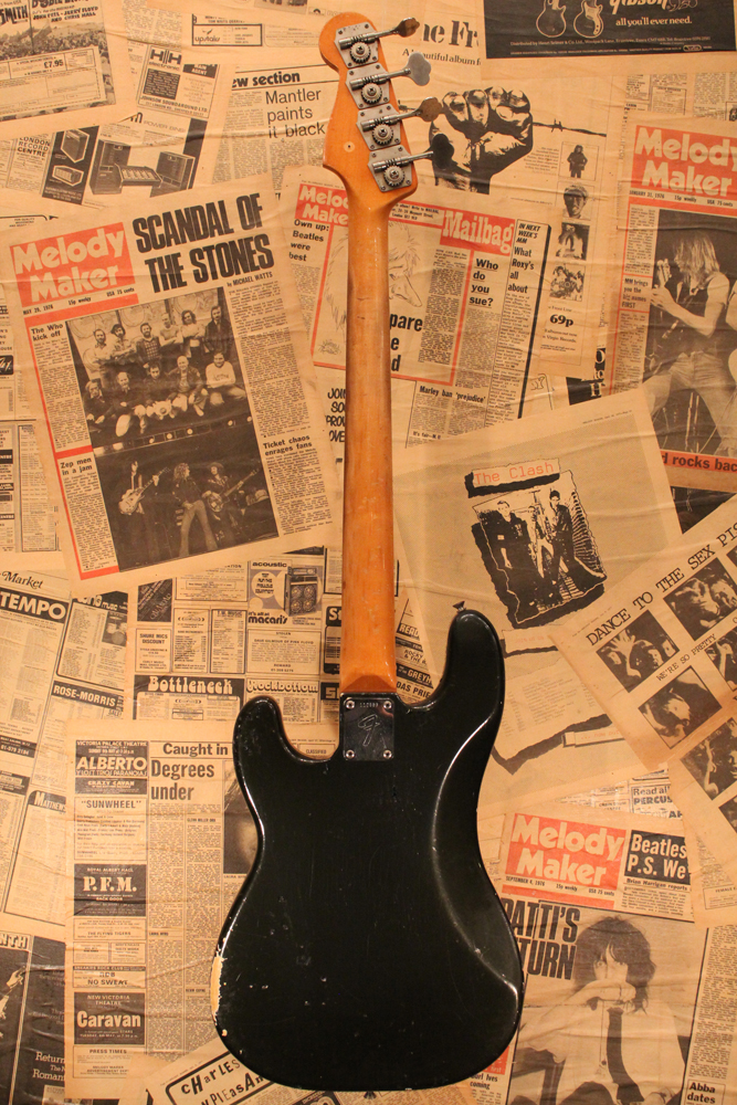 ネックポケットには”Show”の文字が書かれていますので、当時のトレードショウ用に、新色として製作された機体の様ですサウンドも当然、プリ・CBS期同様なファットでウオームなプレシジョン・サウンド持ち、ネックコンディション含め、プレイアビリティも良い、レア・カラーのプレシジョン・ベースです