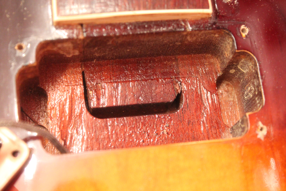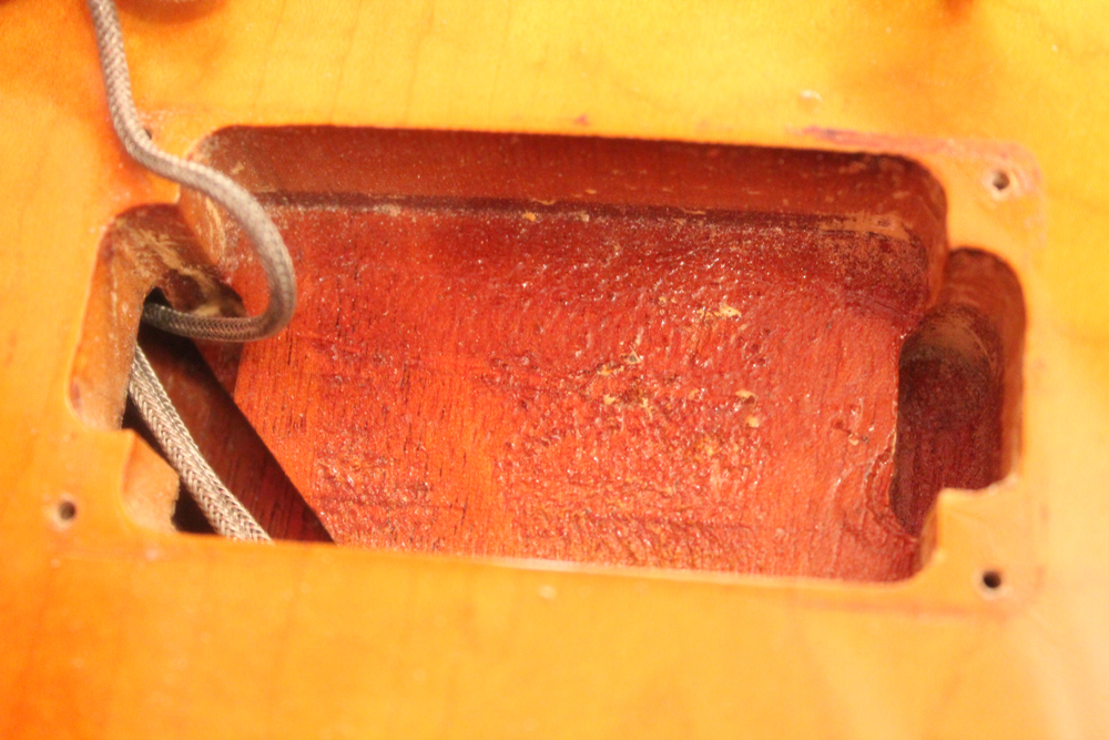 勿論、ピックアップのルーティングもオリジナルでハムバッカー・サイズでルーティングされており、ロング・テノンのネックジョイントが施されています