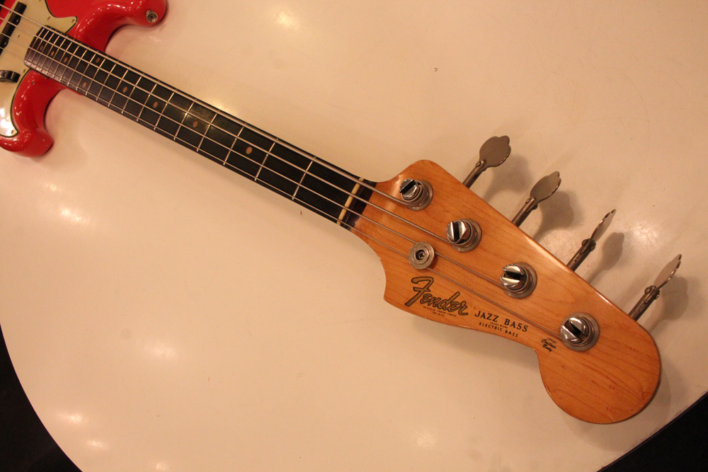 スーパー・レアなオリジナル・フィエスタレッド・フィニッシュのスラブ・ネック・ジャズ・ベースを見つけてきました!50年代からカスタムオーダー等で、少数ですが生産された"カスタム・カラー・フィニッシュ"