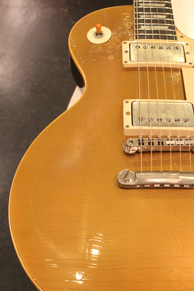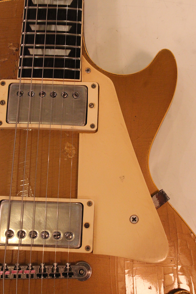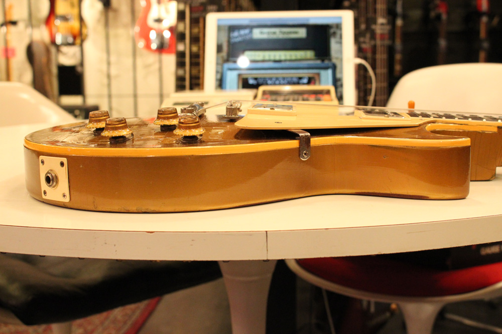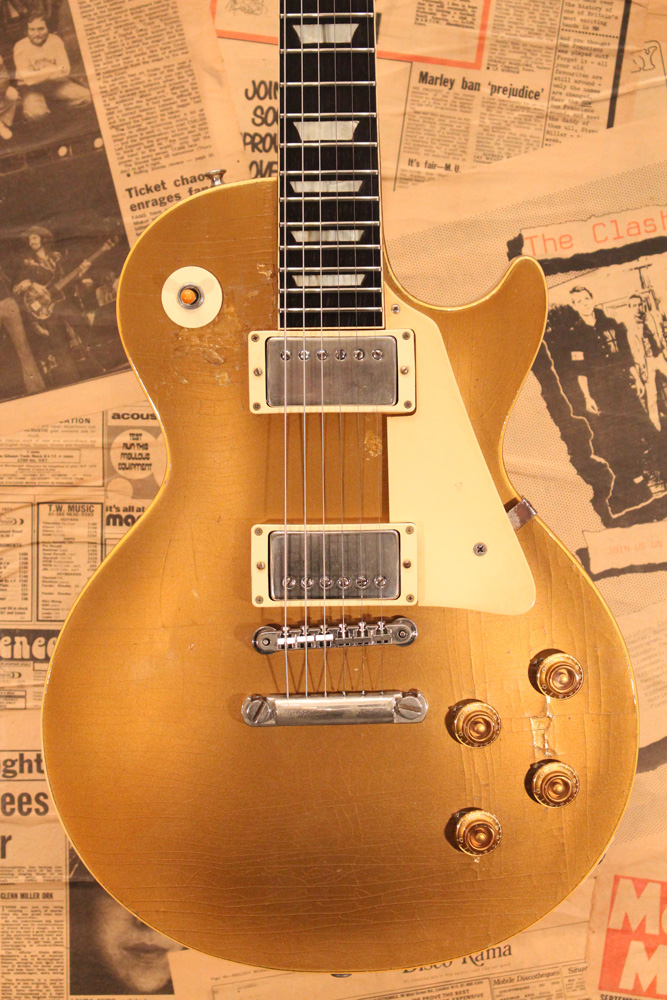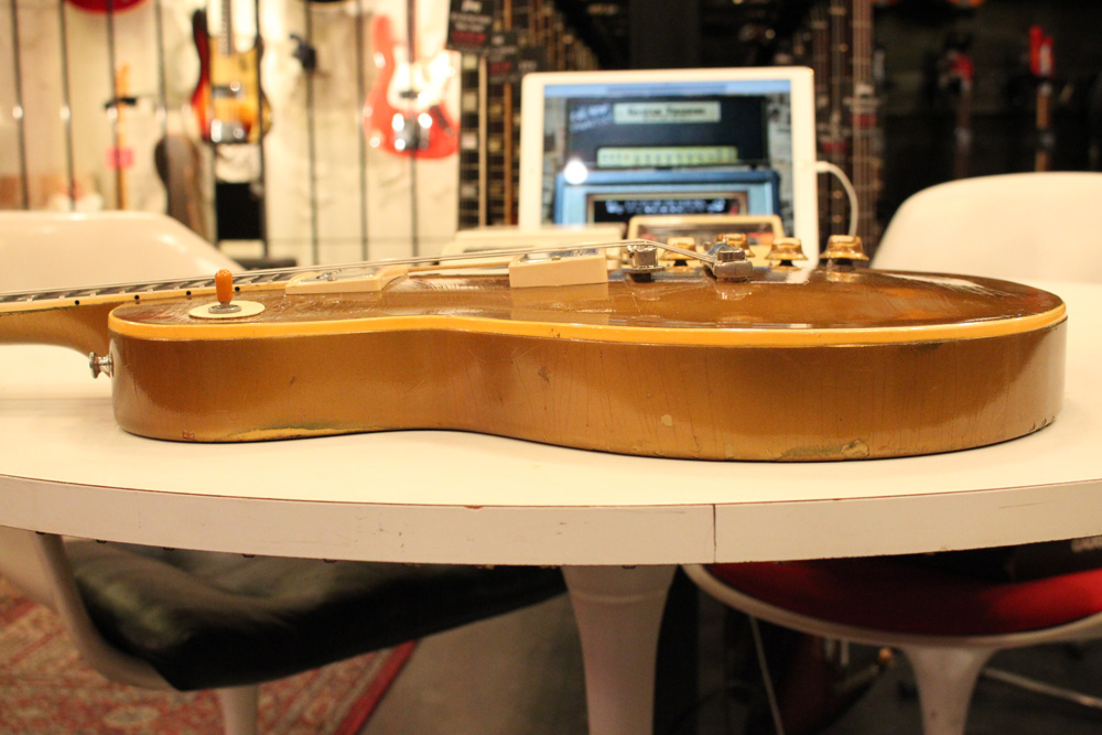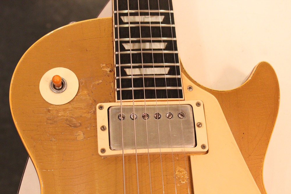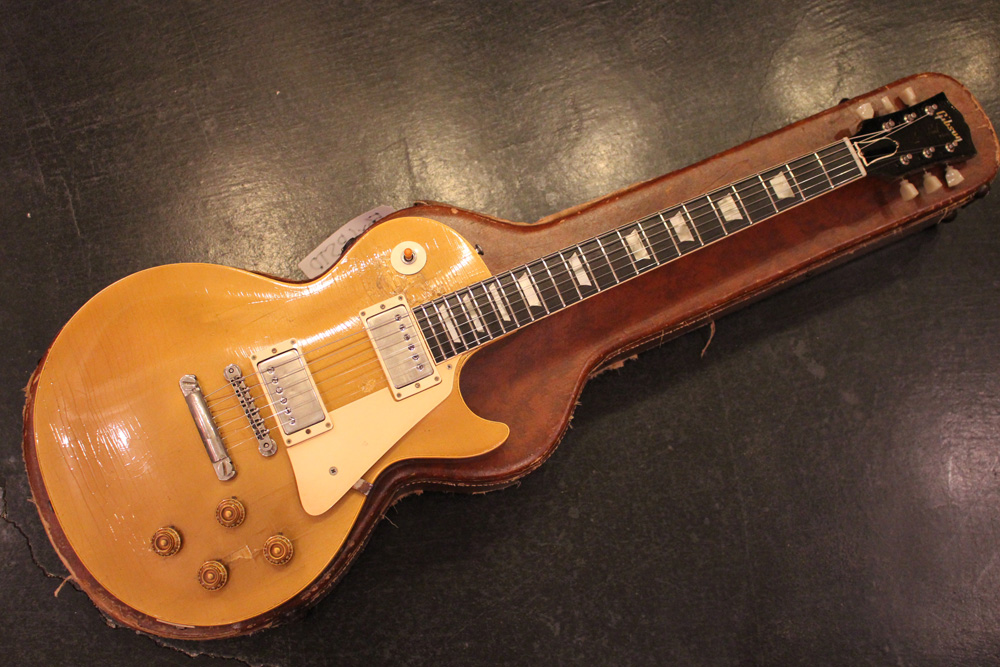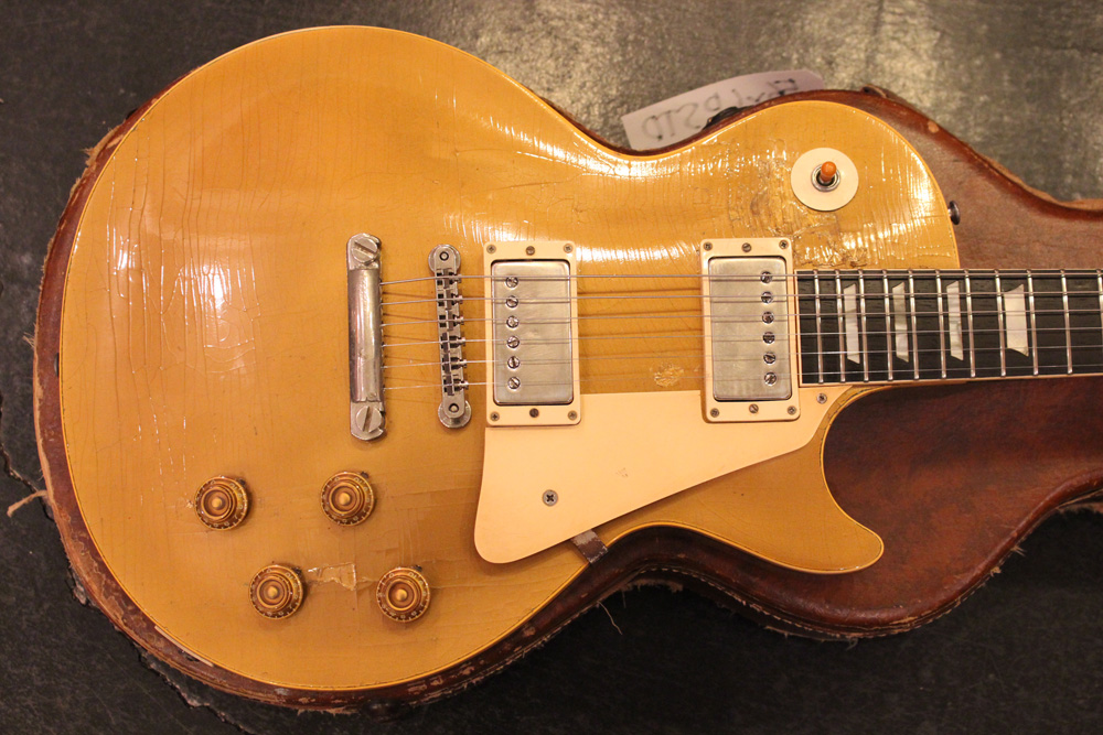 オリジナル・チューン・オー・マチック・ブリッジを採用した56年製のゴールドトップをベースに、57年スタイルにコンバージョンが施されたレス・ポール・スタンダード・ゴールドトップ!オリジナルのゴールド・カラー・フィニッシュのまま、P-90・ピックアップからハムバッカー仕様にコンバートが施されており、そのピックアップにはなんとオリジナル・50年代のパテント・アプライド・フォー・通称“P.A.F”が搭載されています