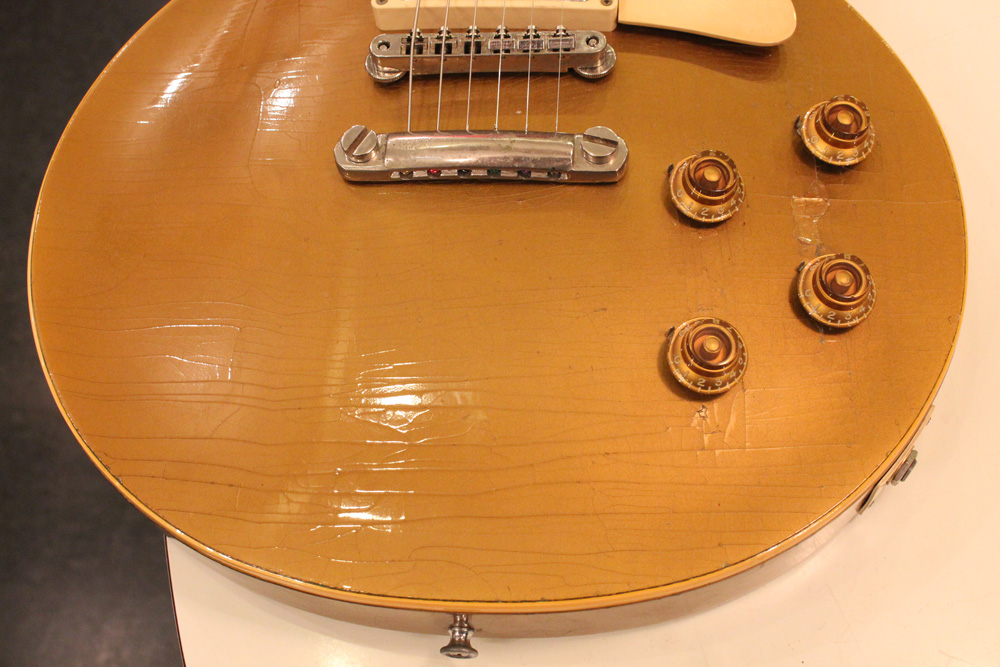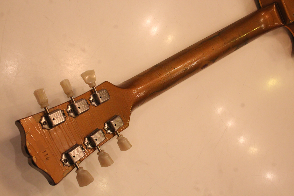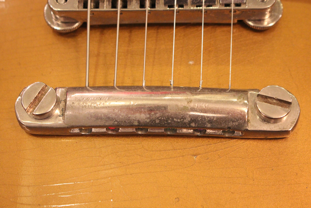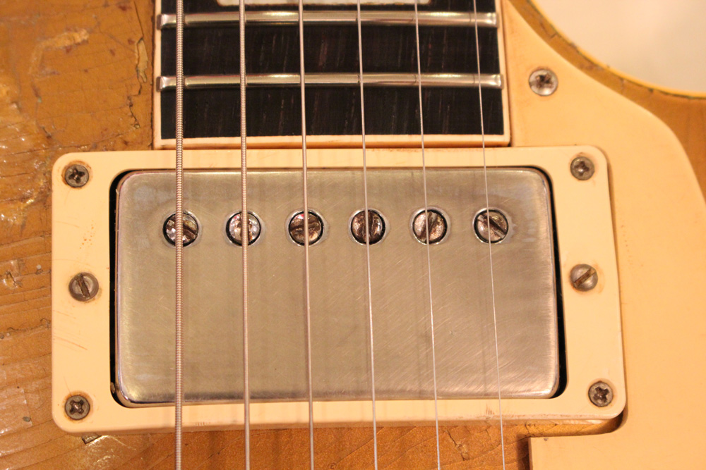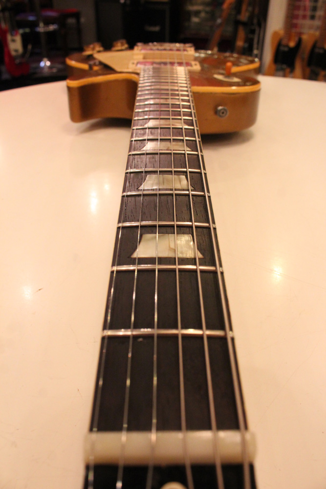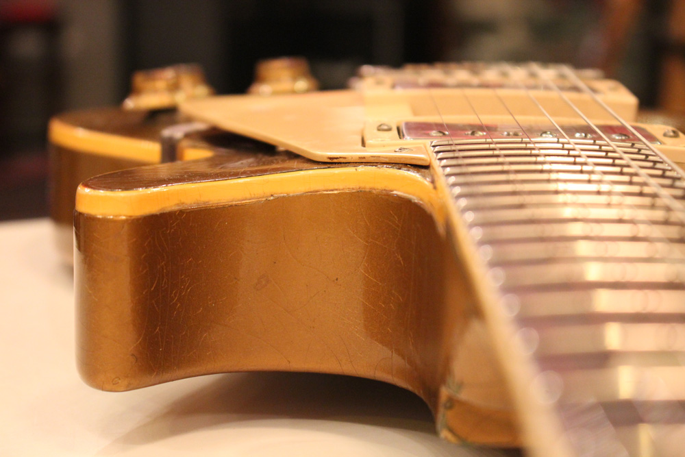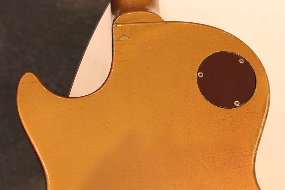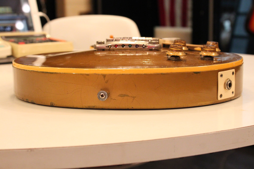 オリジナル・チューン・オー・マチック・ブリッジを採用した56年製のゴールドトップをベースに、57年スタイルにコンバージョンが施されたレス・ポール・スタンダード・ゴールドトップ!オリジナルのゴールド・カラー・フィニッシュのまま、P-90・ピックアップからハムバッカー仕様にコンバートが施されており、そのピックアップにはなんとオリジナル・50年代のパテント・アプライド・フォー・通称“P.A.F”が搭載されています