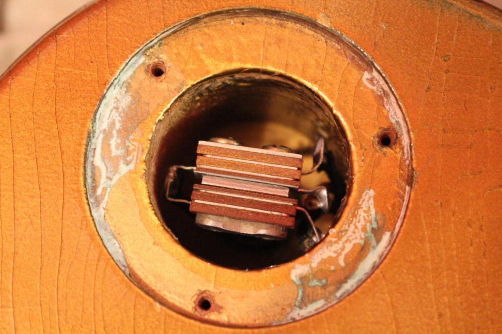 コンバートに使用されたピックアップ・リングとピックアップ・カバーには、"DMC"パーツのスペシャル・エイジド・バージョンを搭載しており、プレイアビリティの向上の為、リフレットのみ行われていますが、その他のパーツは全てオリジナルです