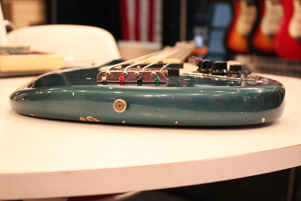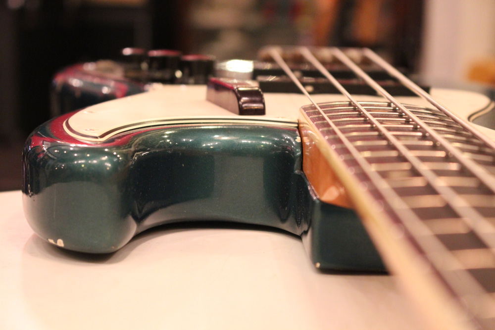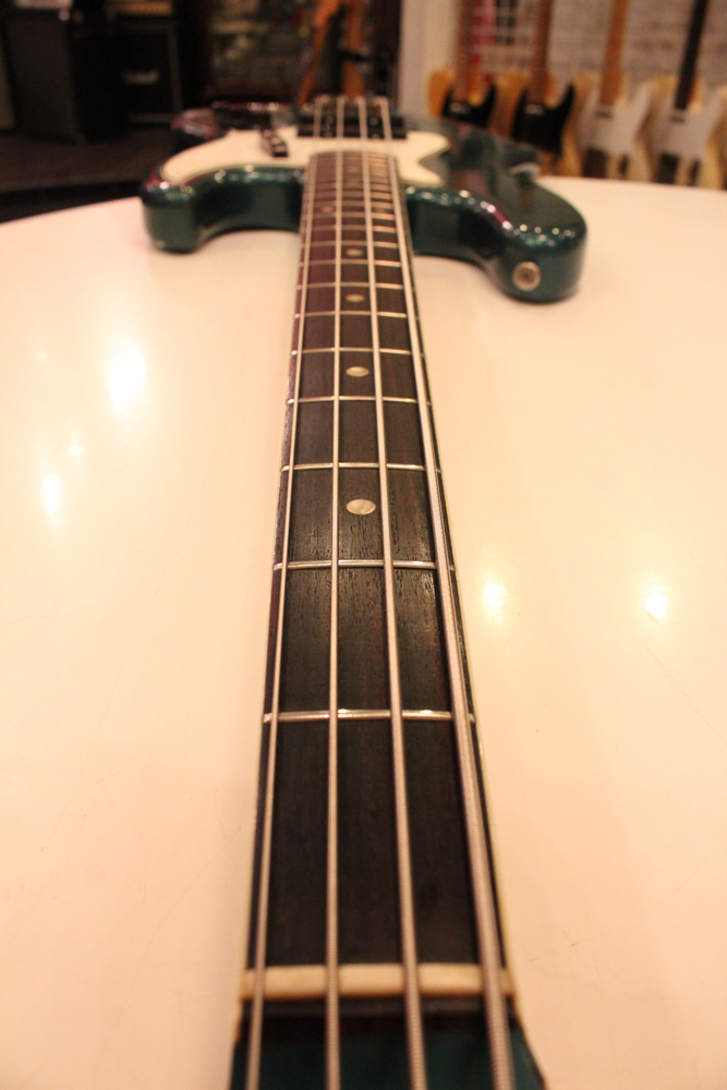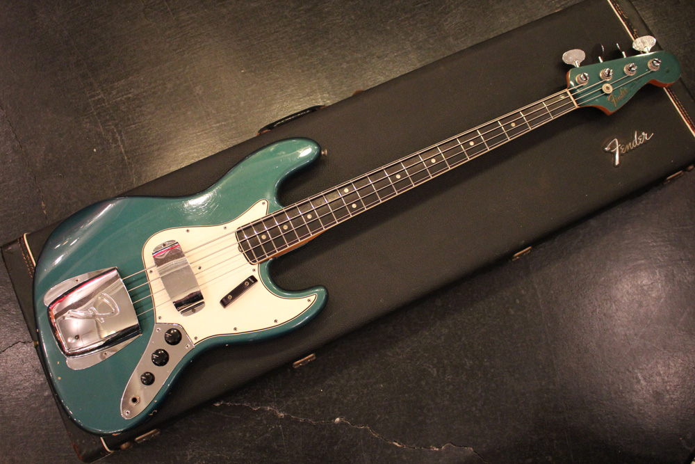 65年後半からフェンダーの上位機種に採用された、ネックにバインディングが施された66年前期のジャズ・ベース今回入庫は、カスタムカラーの"レイクプラシッド・ブルー・フィニッシュ"!