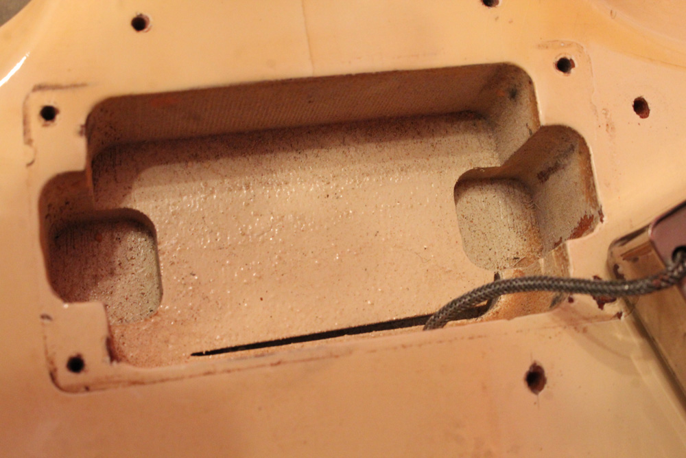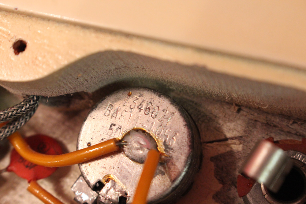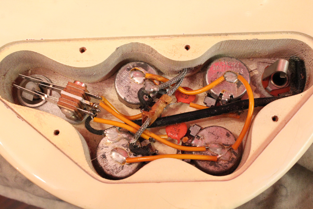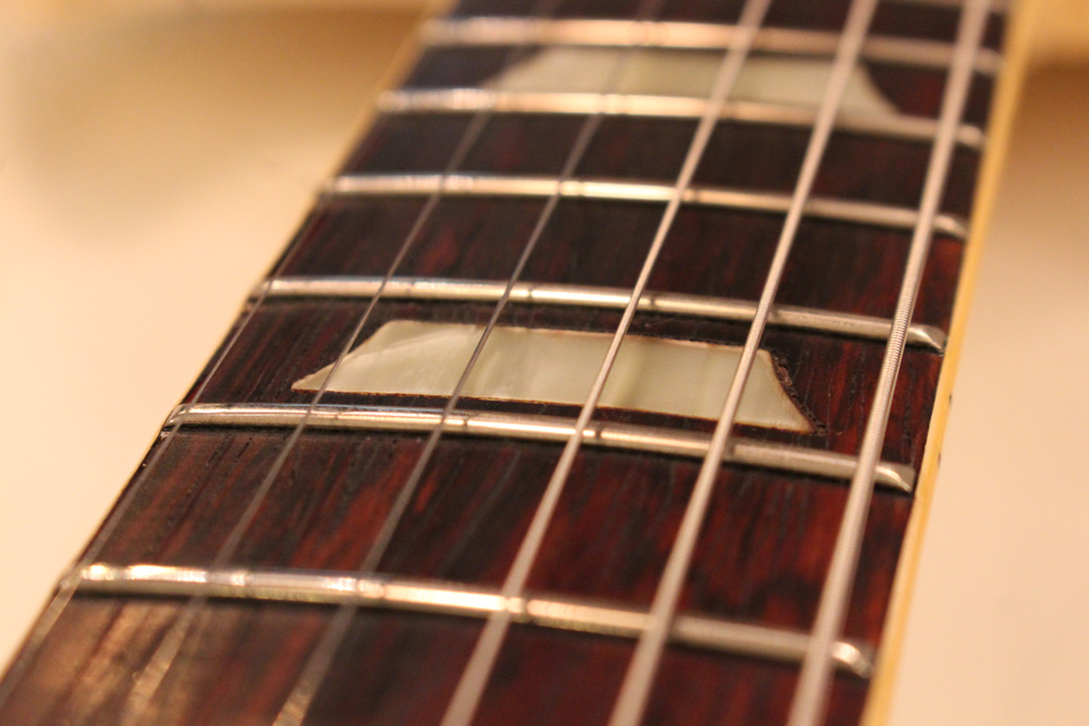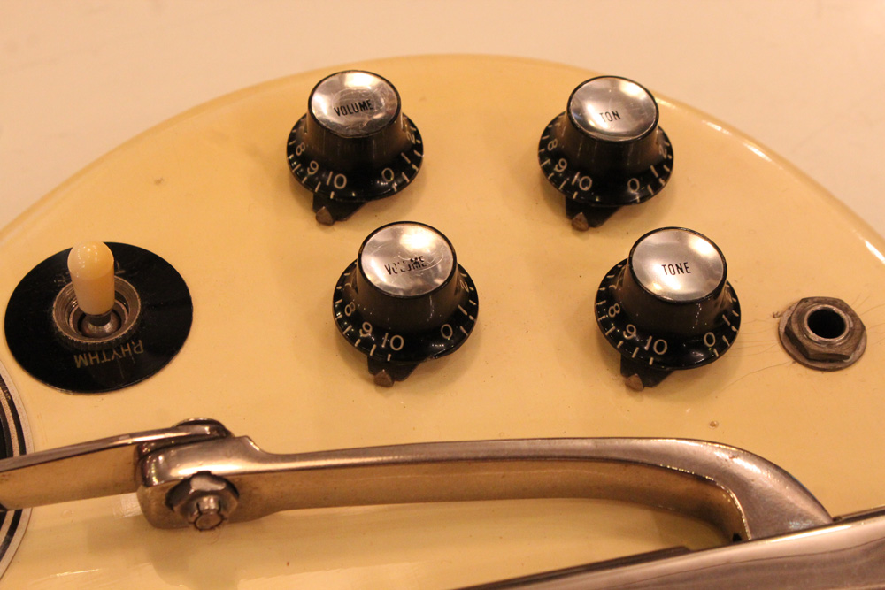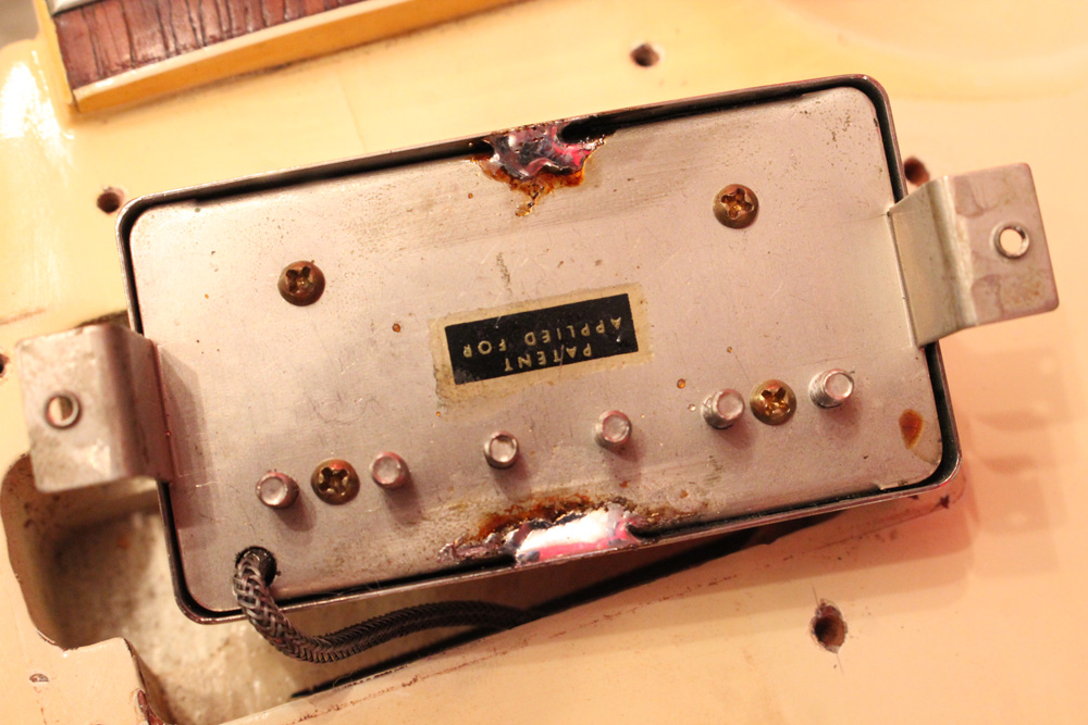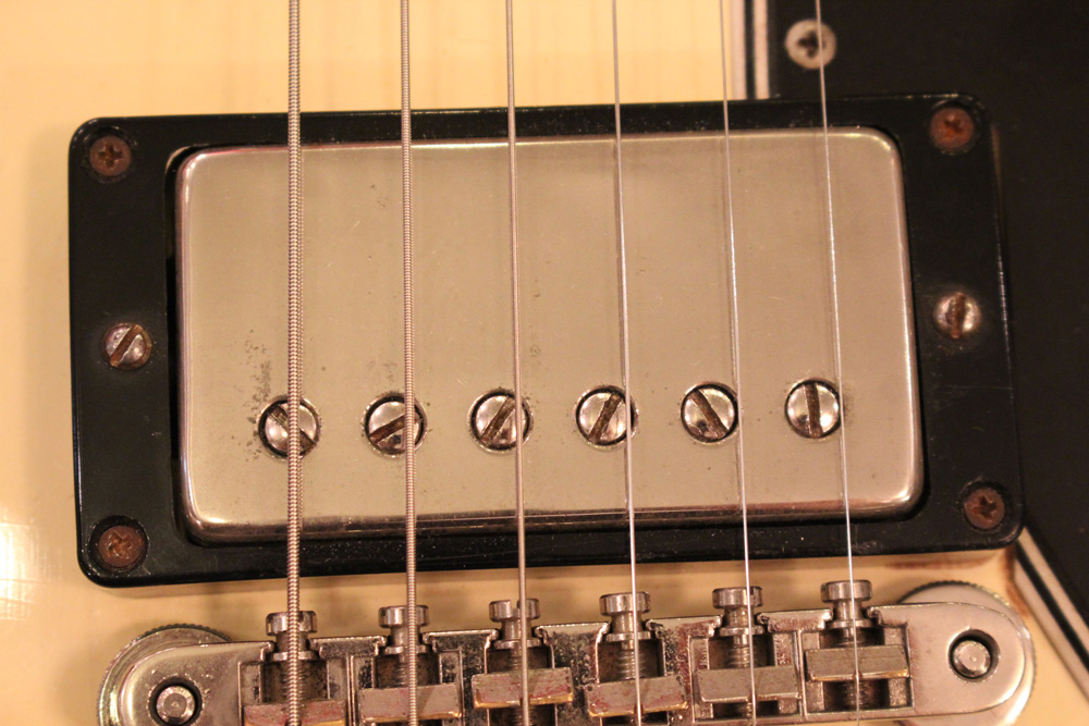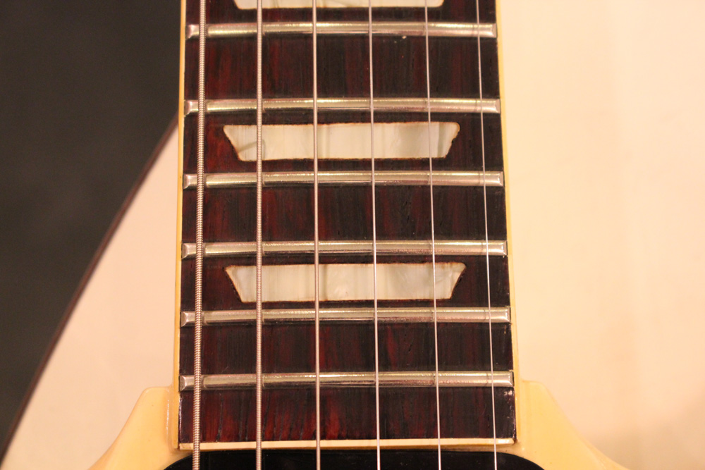 スタンダード・モデルは、ハイポジションまで弾き易いダブルカッタウェイ・シェイプに、軽量な薄いボディ厚マホガニー・ワンピース・ボディと、上位機種には当然要求されたヴィブラート・ユニットが搭載され、発売当時、市場の人気を博しました今回見つけて来た個体は、少数だけ存在する、オリジナル・ホワイト・フィニッシュのレア・ピース!