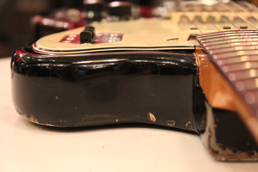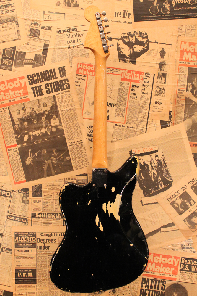 プリCBS期 "マッチング・ヘッド & ブラック・フィニッシュ"のジャガーを見つけて来ました!フェンダー社のブラック・フィニッシュは、60年代では全てのモデルでとても珍しく、比較的カスタム・カラーの個体が多いジャガーやジャズマスターでさえも生産数は少なく、且つ近年では人気の高いカラーです