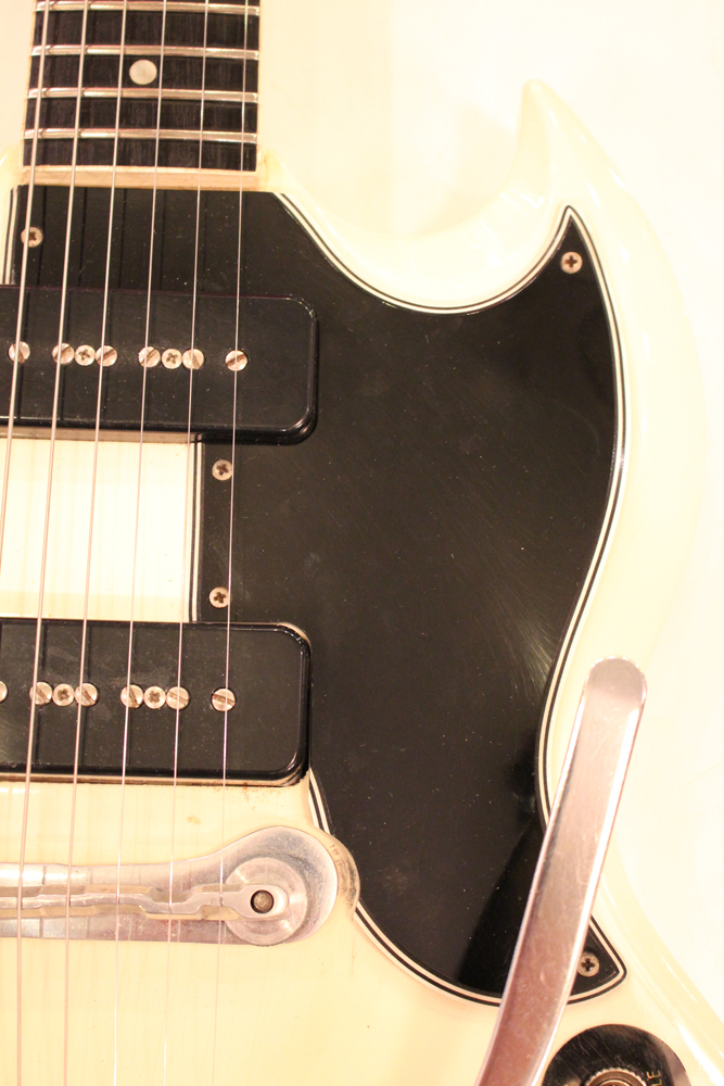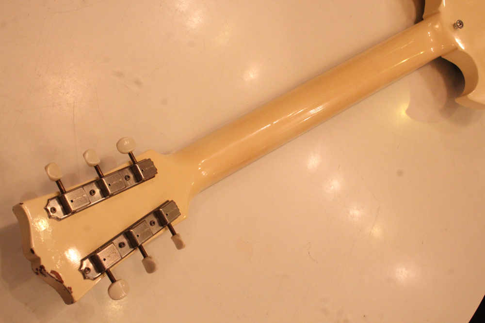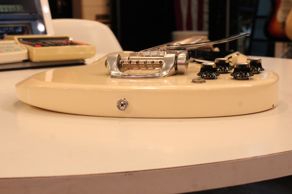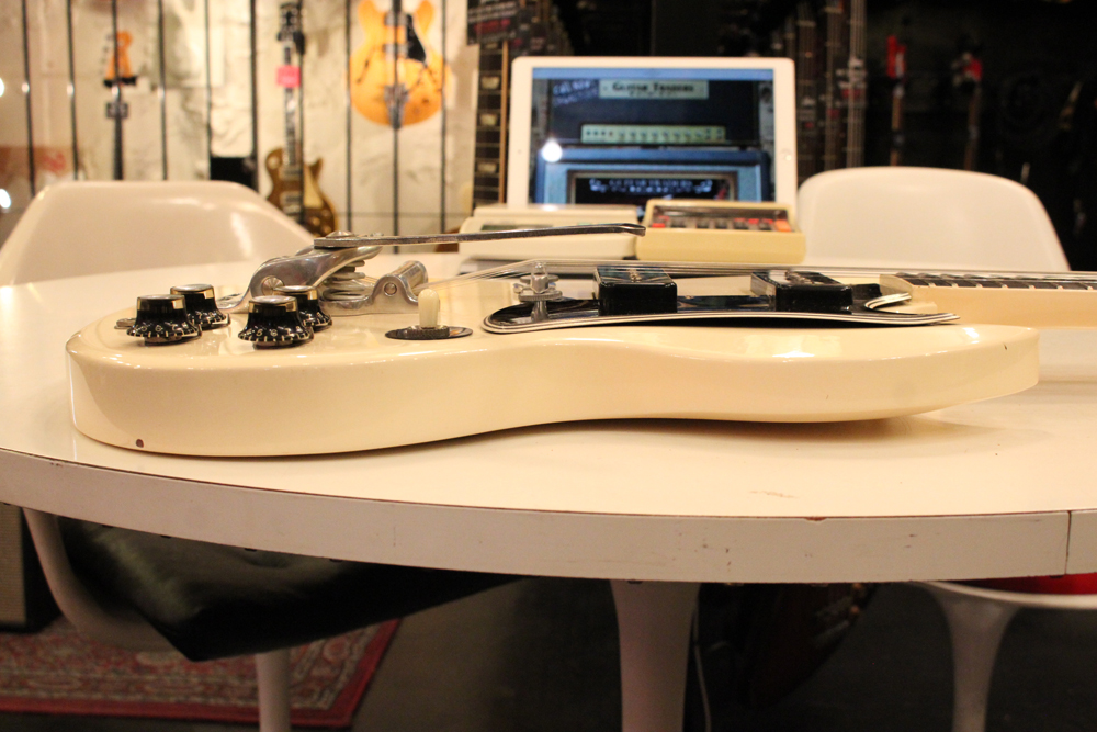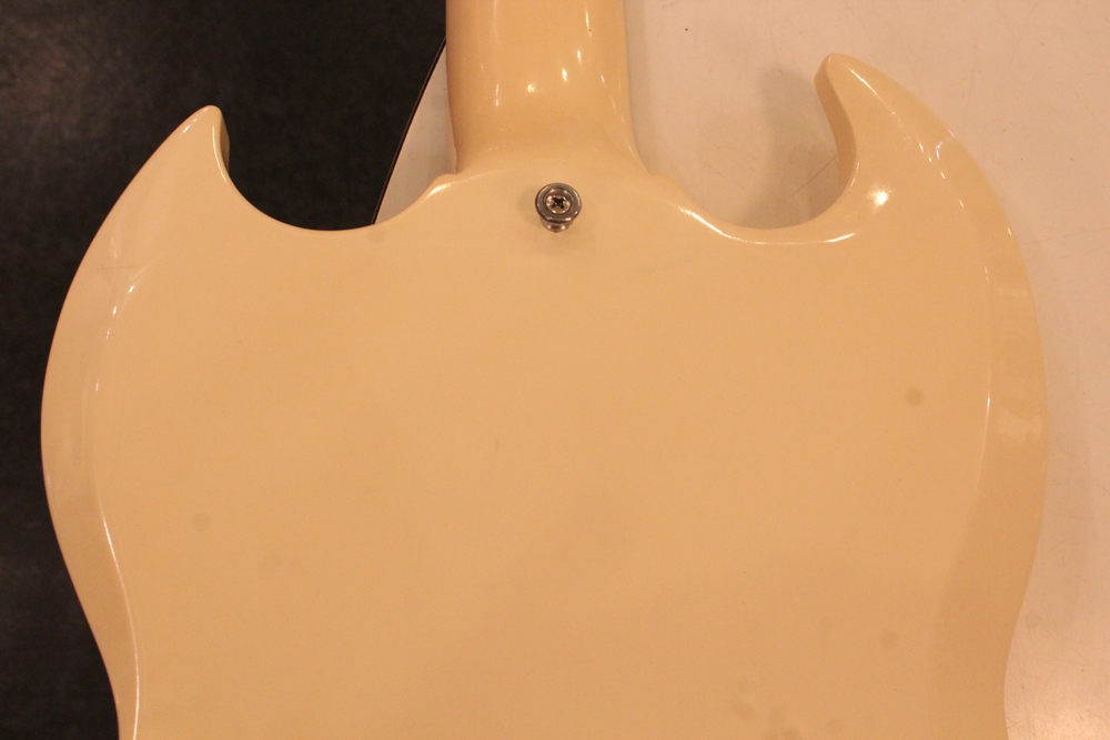 "TV・イエロー・フィニッシュ"のモデルが、僅かな期間生産されており、現在では非常にレアな仕様として、コレクタブルなモデルなっています今回入庫は、その"TV・イエロー"からカラー変更された直後の"TV・ホワイト・フィニッシュ"の"SG・スペシャル"!ブリッジの角度と形状が50年代同様な、初期モデルのみのスラント・ブリッジ仕様という機体で、実はレアな"TV・イエロー"同様に極めて少ない生産本数のレア・スペック!