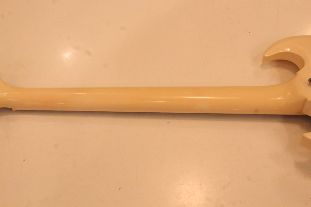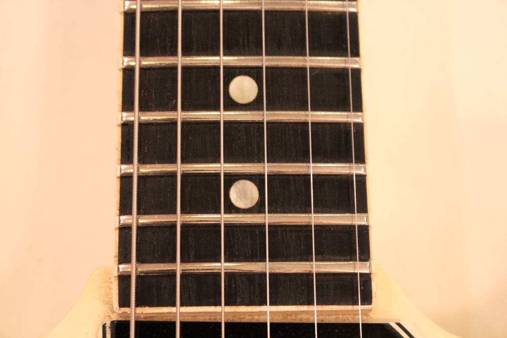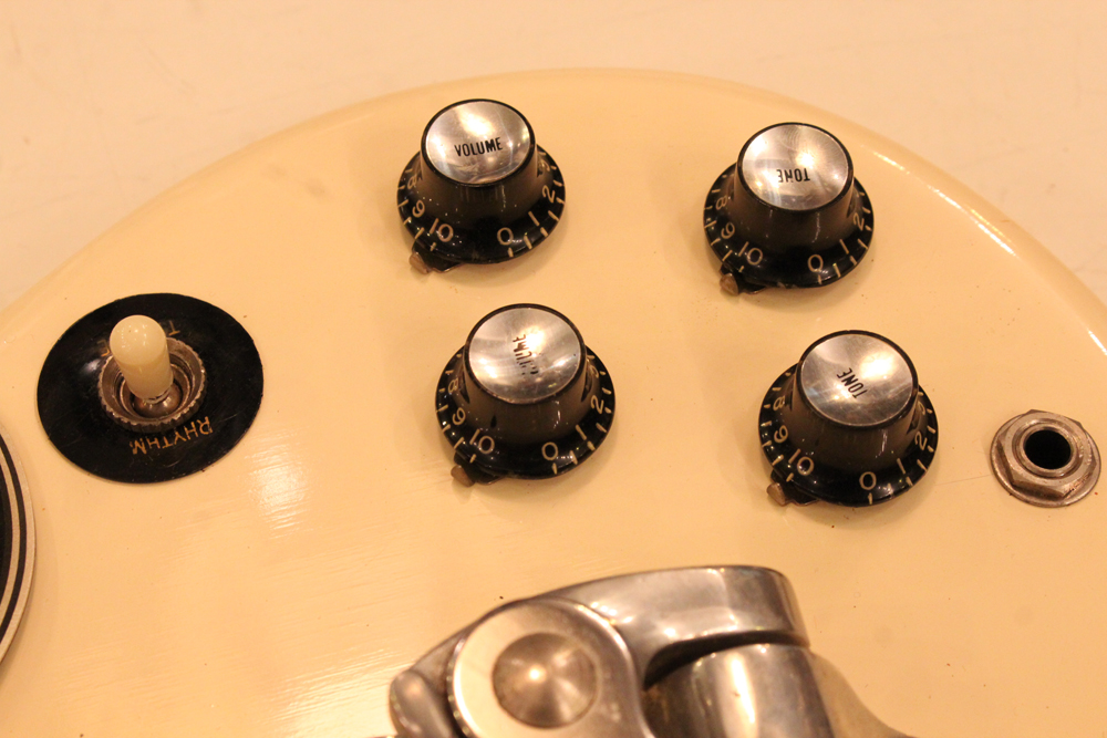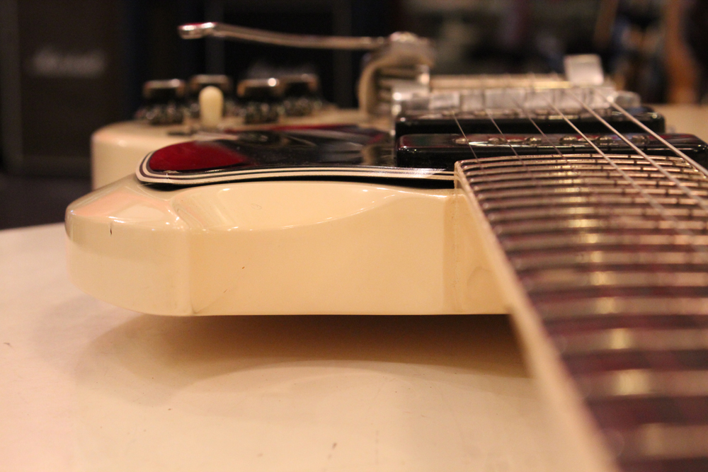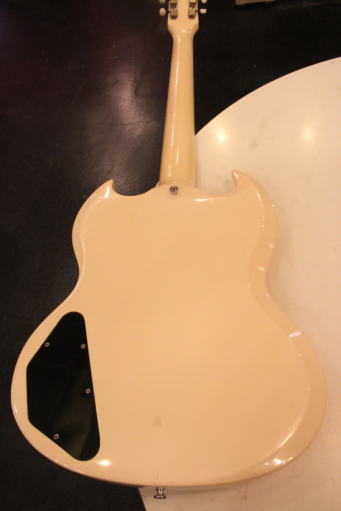 "TV・イエロー・フィニッシュ"のモデルが、僅かな期間生産されており、現在では非常にレアな仕様として、コレクタブルなモデルなっています今回入庫は、その"TV・イエロー"からカラー変更された直後の"TV・ホワイト・フィニッシュ"の"SG・スペシャル"!ブリッジの角度と形状が50年代同様な、初期モデルのみのスラント・ブリッジ仕様という機体で、実はレアな"TV・イエロー"同様に極めて少ない生産本数のレア・スペック!