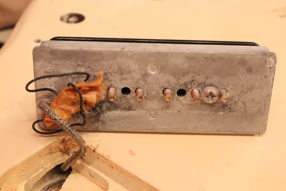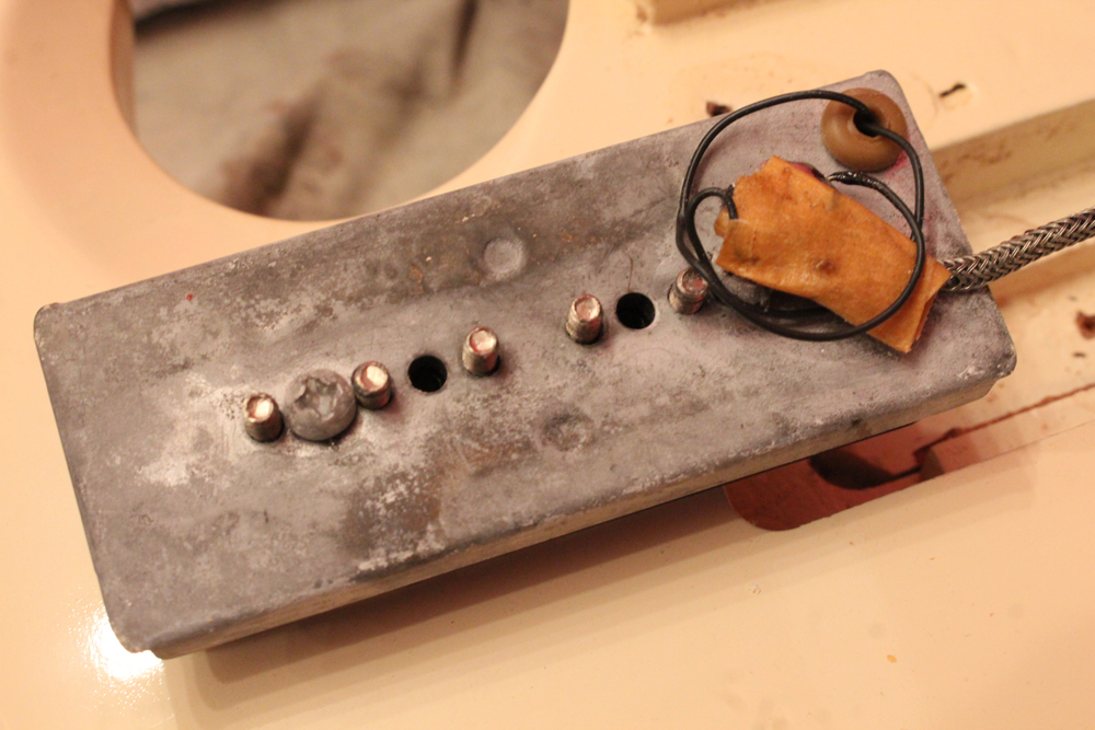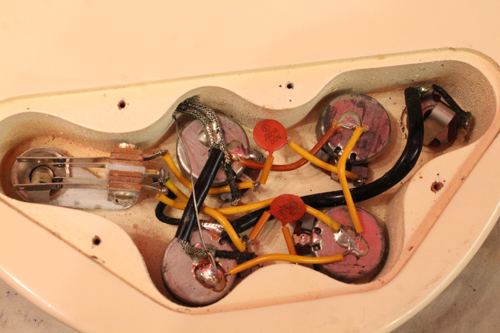 ラッラウンドのブリッジ・テールピースと、この時期のみ採用された、ブラウン・カラーのオリジナル・デュラビルト・ケースが付属します