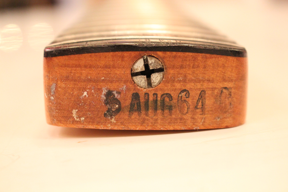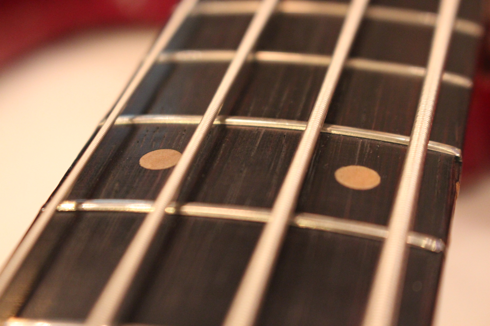 プレ・CBS期、ラウンドボード初期のドット マーカー ネック・ジャズ ベース!この時期のジャズ・ベースは、スラブネック期から続いた低音成分が多いトーンから、帯域が幾分上がって来ており、