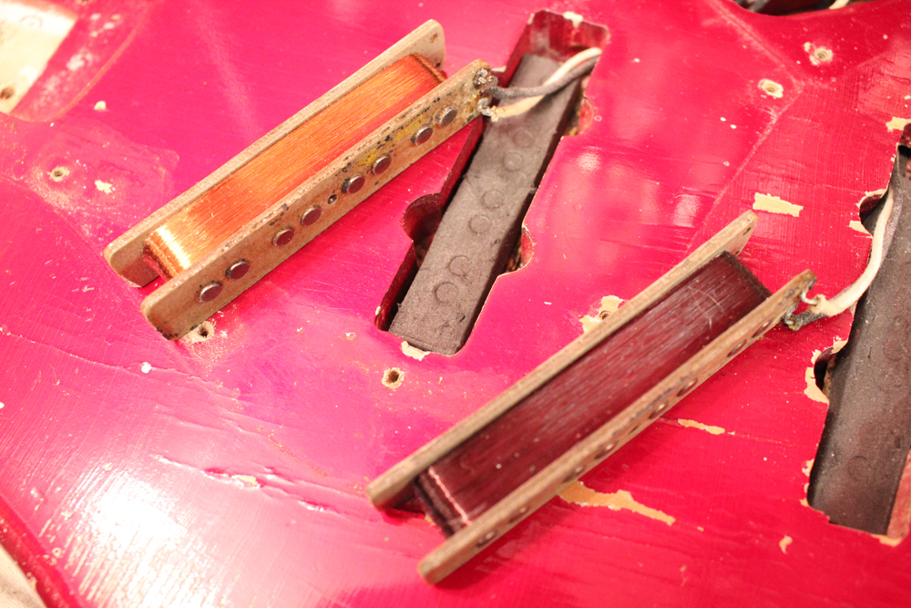 60年代の新品時には、カスタムカラーの中でも人気の高いカラーだった為、現在のヴィンテージ・市場でも見かける事も多いキャンディアップル・レッド・フィニッシュですが、60年代初期の、特にグリーン・ガードを搭載した64年迄の機体は圧倒的に数量も少なく、レアな存在です