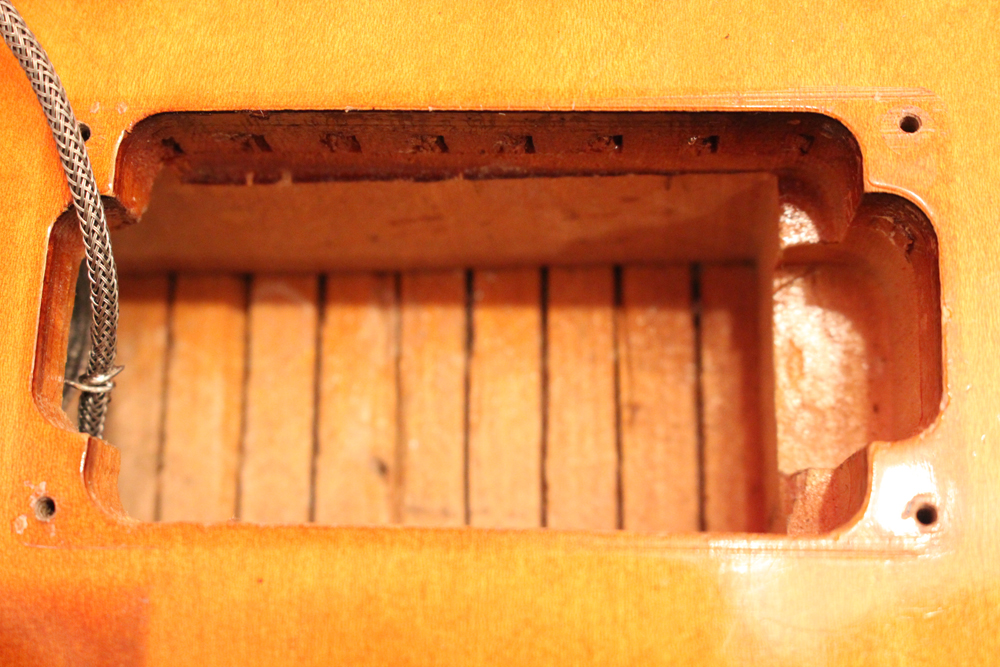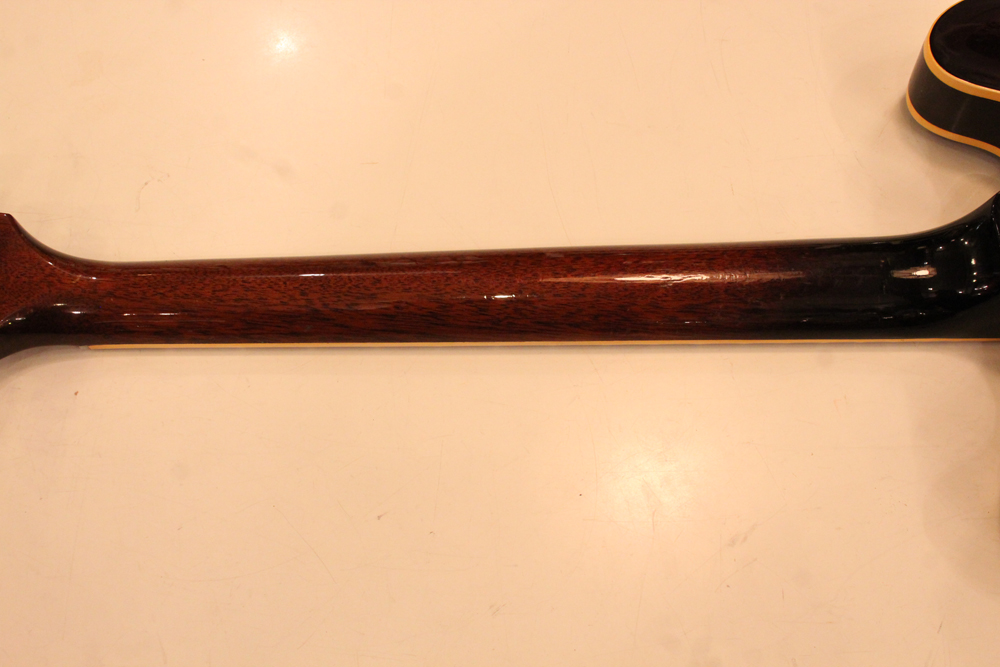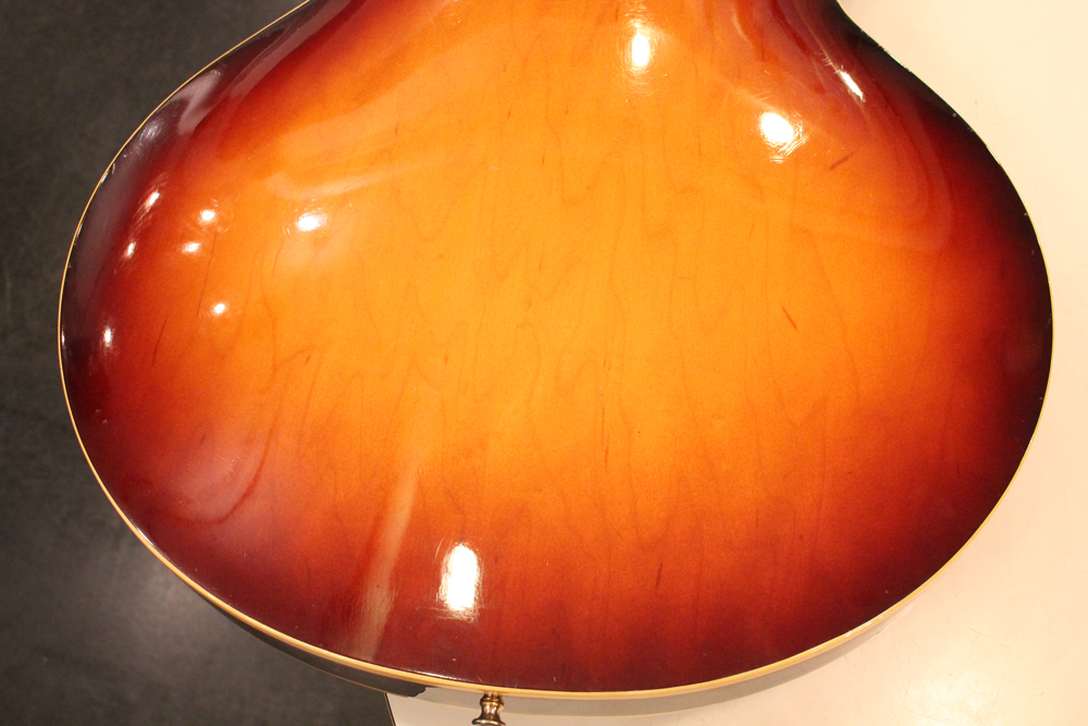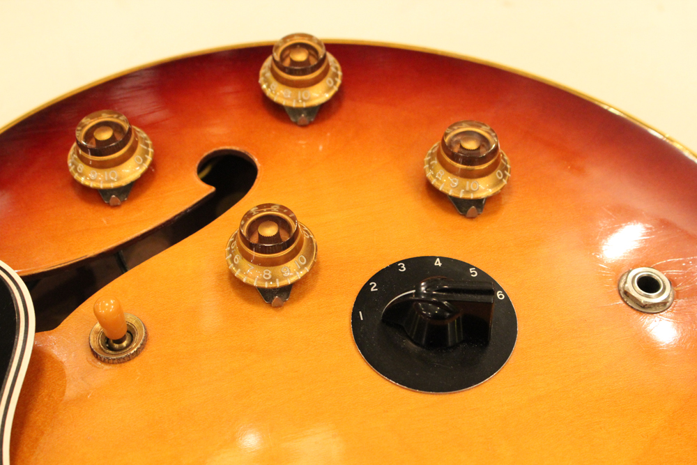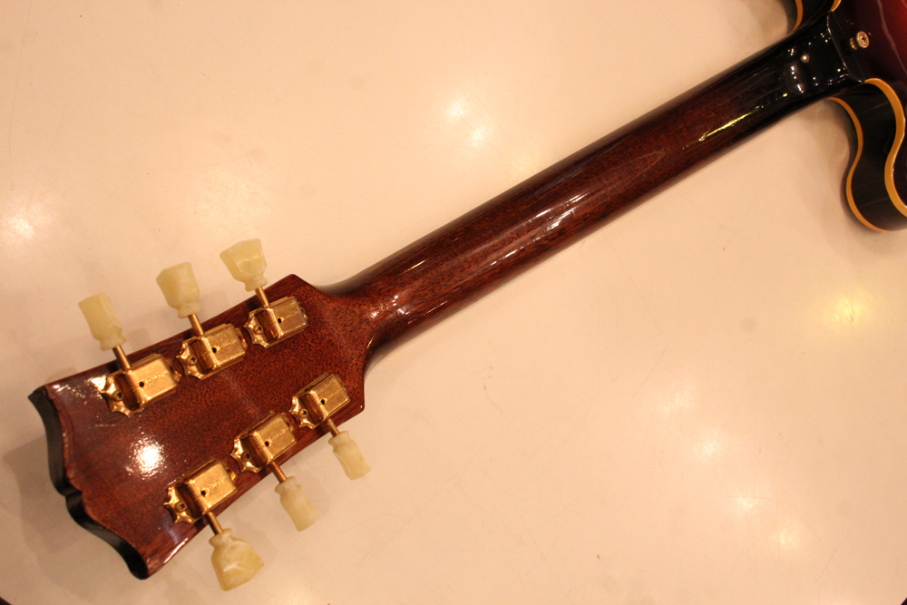 内容もバリトン・オフとモノラルアウトの実用的な"335仕様"へのアップグレードと、シュリンクしたペグ・ボタンをDMC製のリアルなペグボタンにリプレイスした以外は、オリジナル・パーツをキープしています