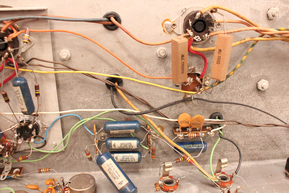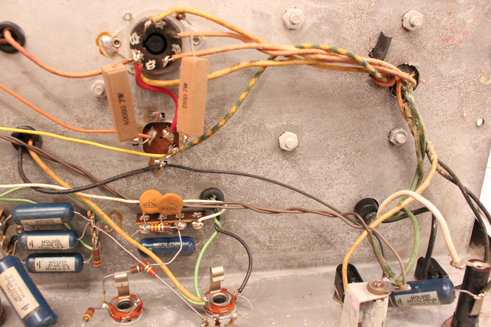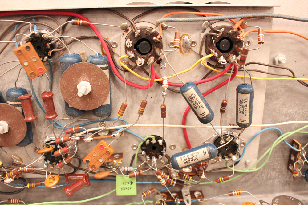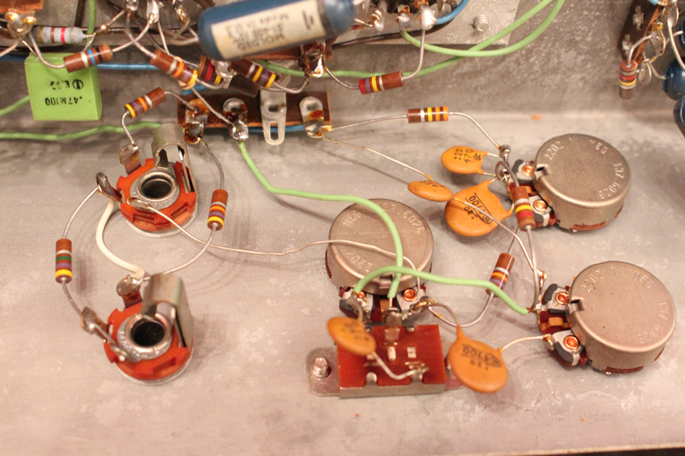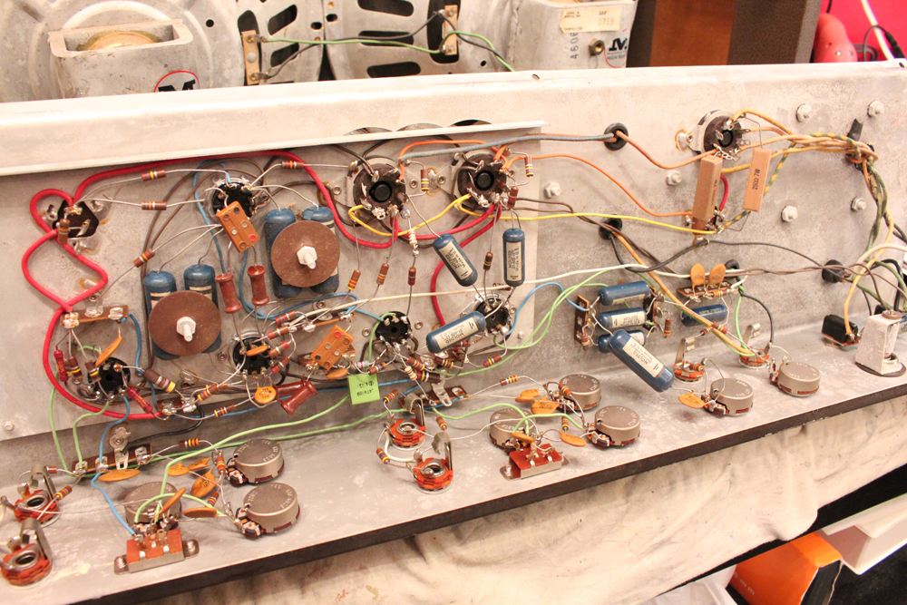 6L6・パワー管をペアで搭載した35W程の出力に、デュアル・チャンネルのプリ部はトレモロ・ユニットを搭載し、
