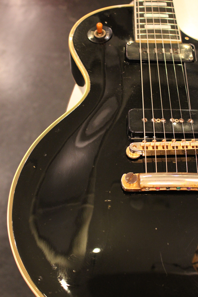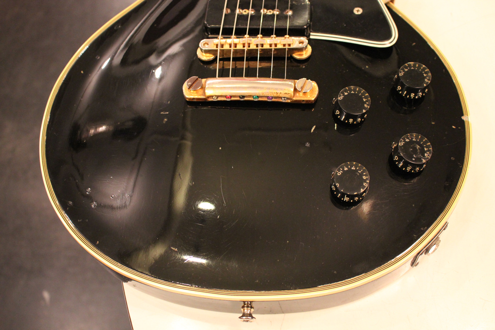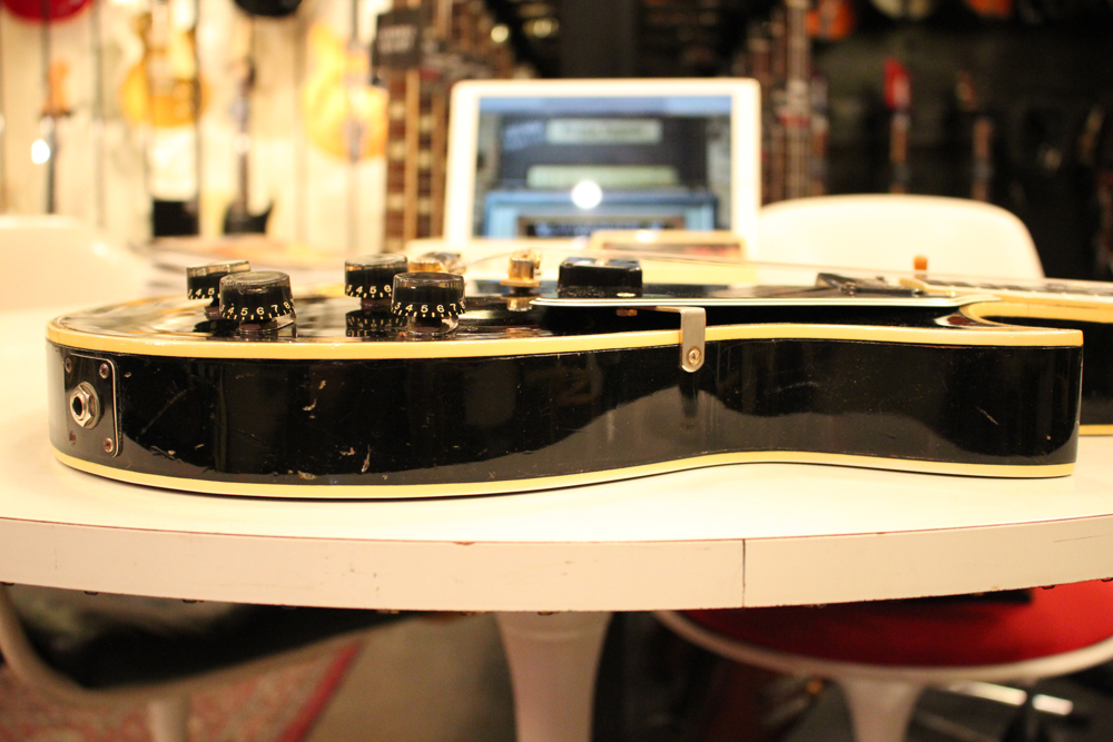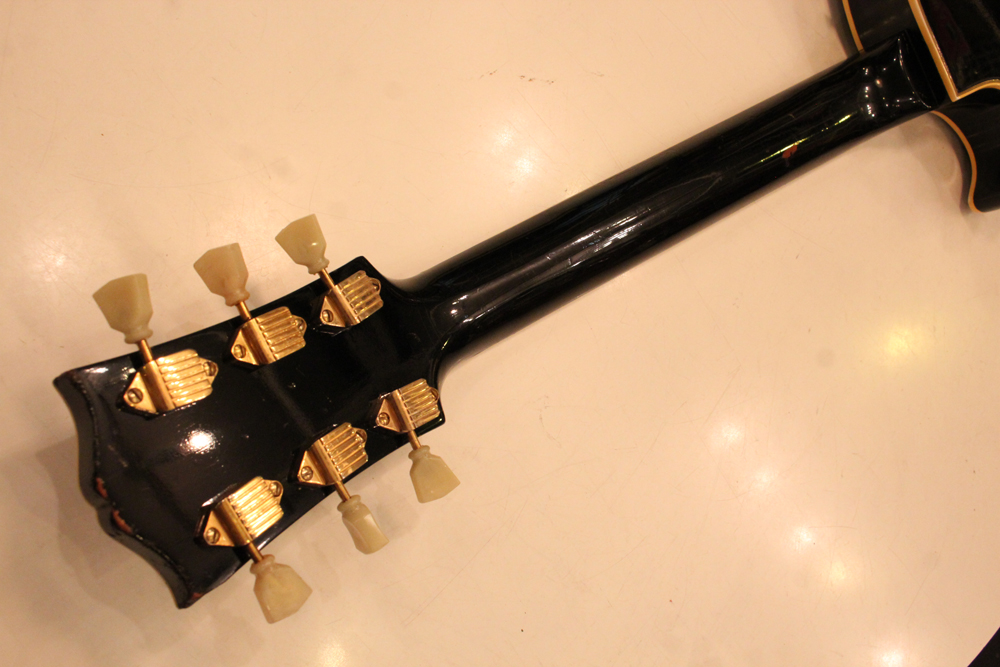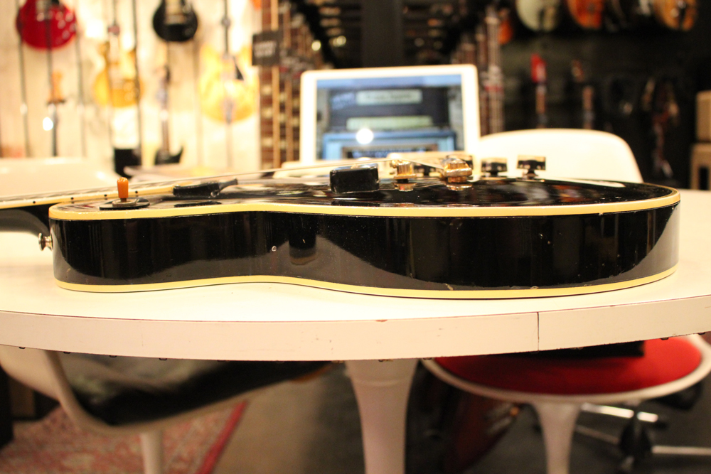 それまでの上級ギブソン・ユーザーの為に、高級フルアコの要素を取り入れた上位機種として開発し、市場に投入された"レス・ポール・カスタム"精悍なソリッドブラック・フィニッシュにトップとバック共にマルチバインディングを施したボディや、マザー・オブ・パールをふんだんに使用したヘッドとエボニー材のフェンガーボードの華麗な外観は"ブラック・ビューティー"と称されました