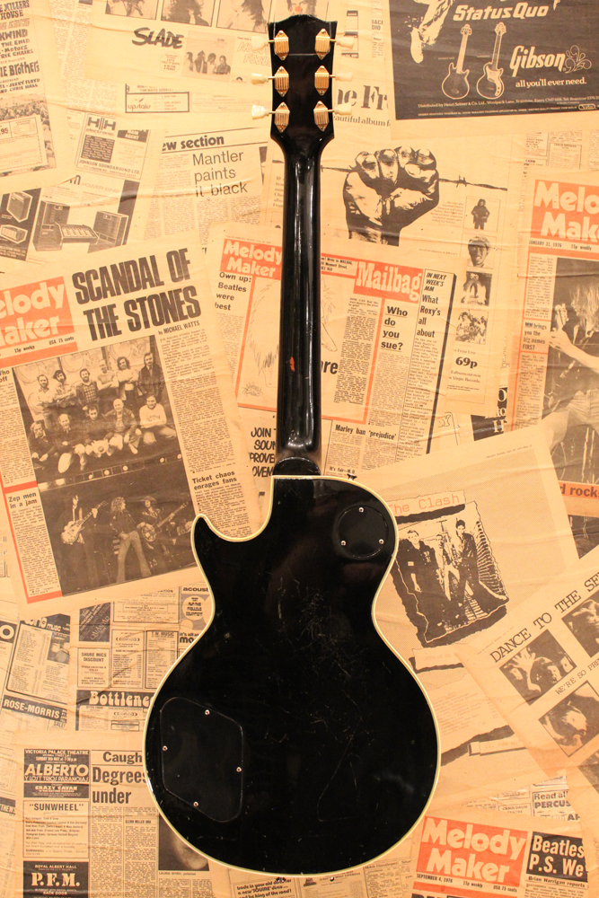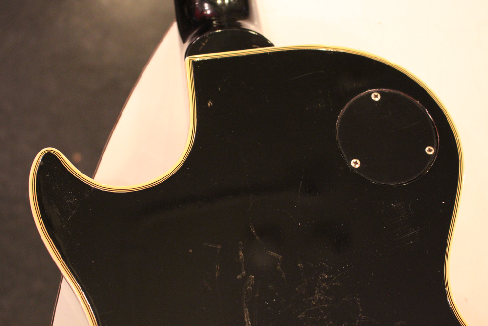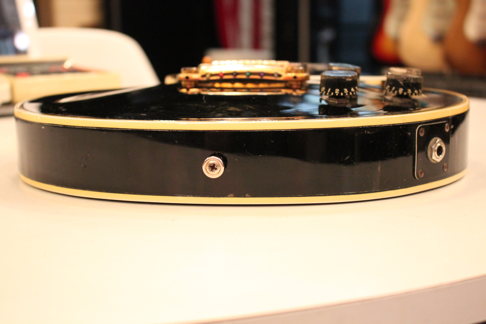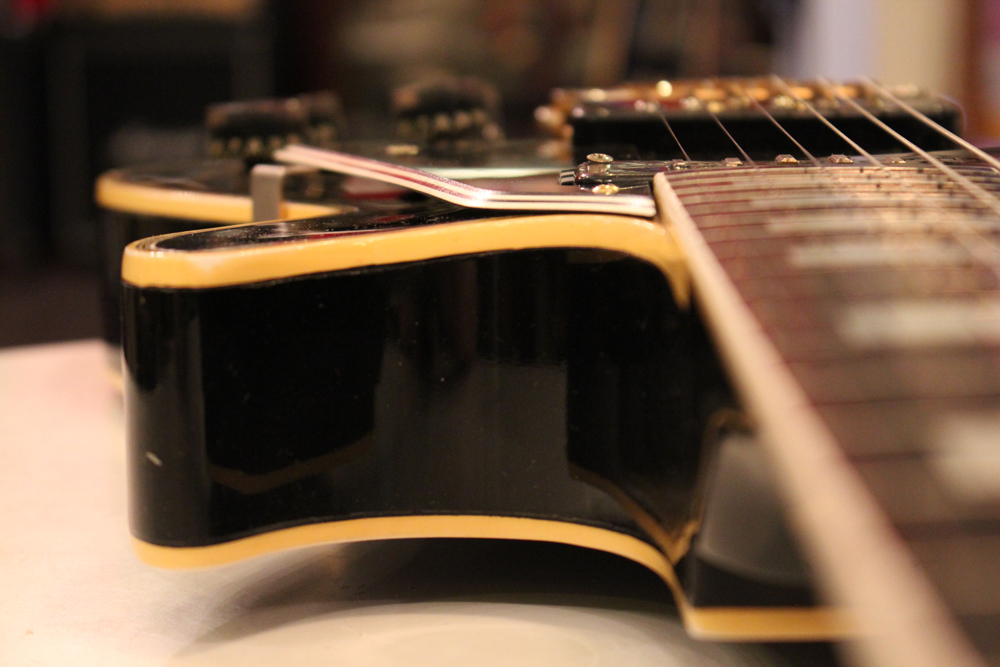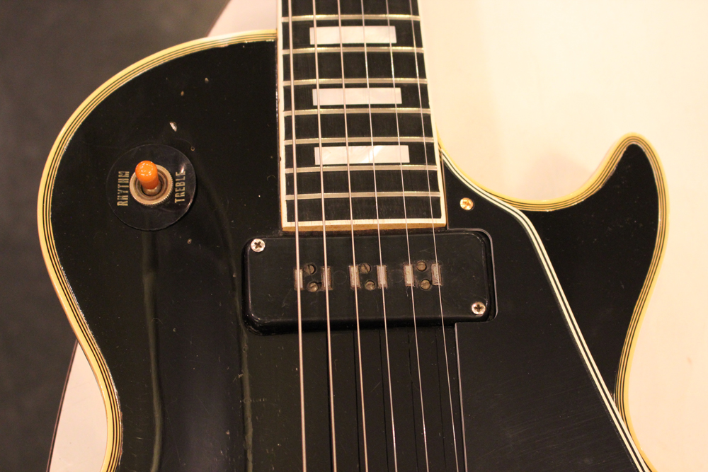 それまでの上級ギブソン・ユーザーの為に、高級フルアコの要素を取り入れた上位機種として開発し、市場に投入された"レス・ポール・カスタム"精悍なソリッドブラック・フィニッシュにトップとバック共にマルチバインディングを施したボディや、マザー・オブ・パールをふんだんに使用したヘッドとエボニー材のフェンガーボードの華麗な外観は"ブラック・ビューティー"と称されました