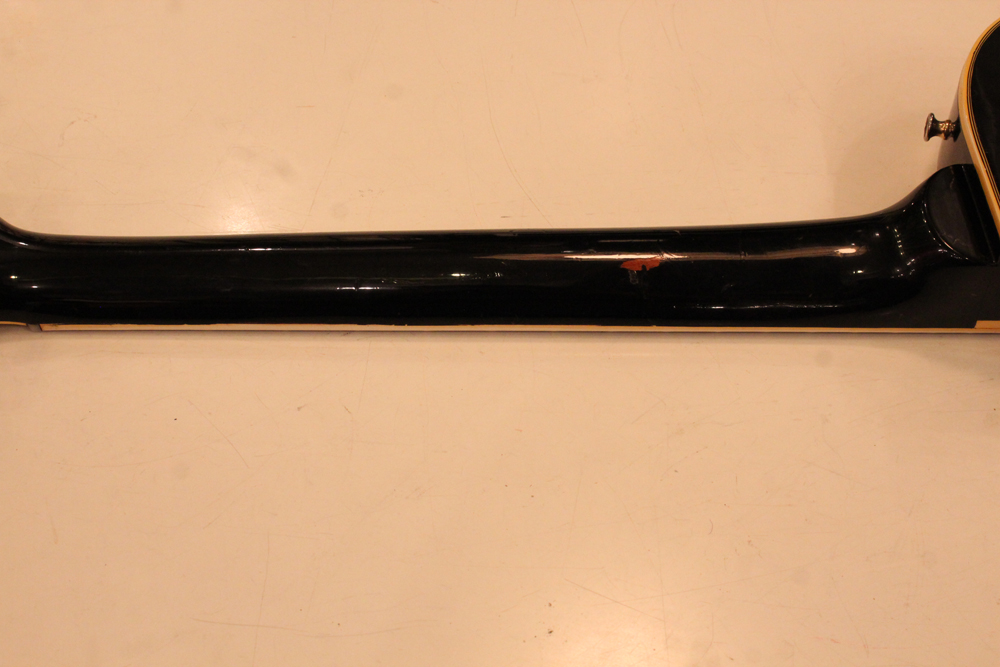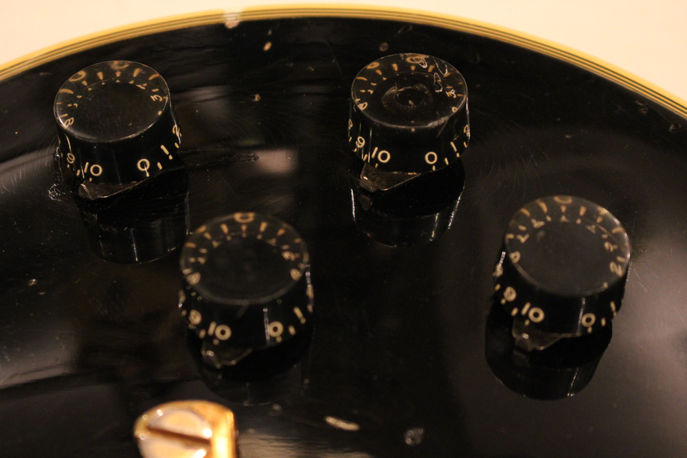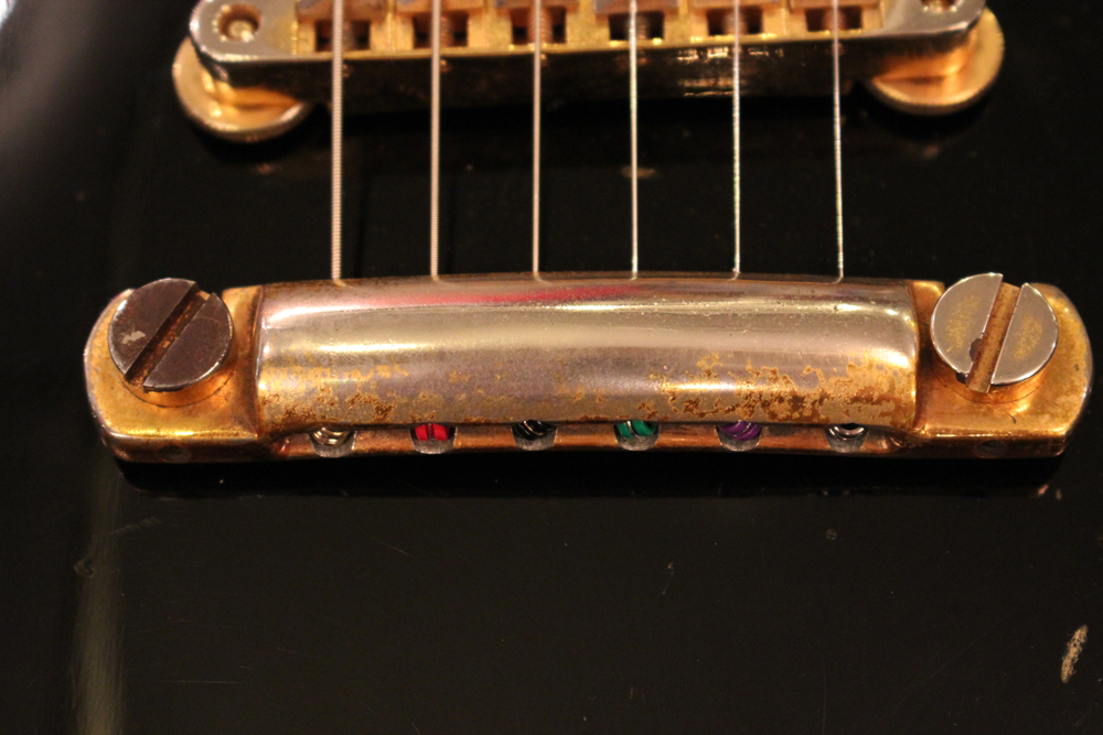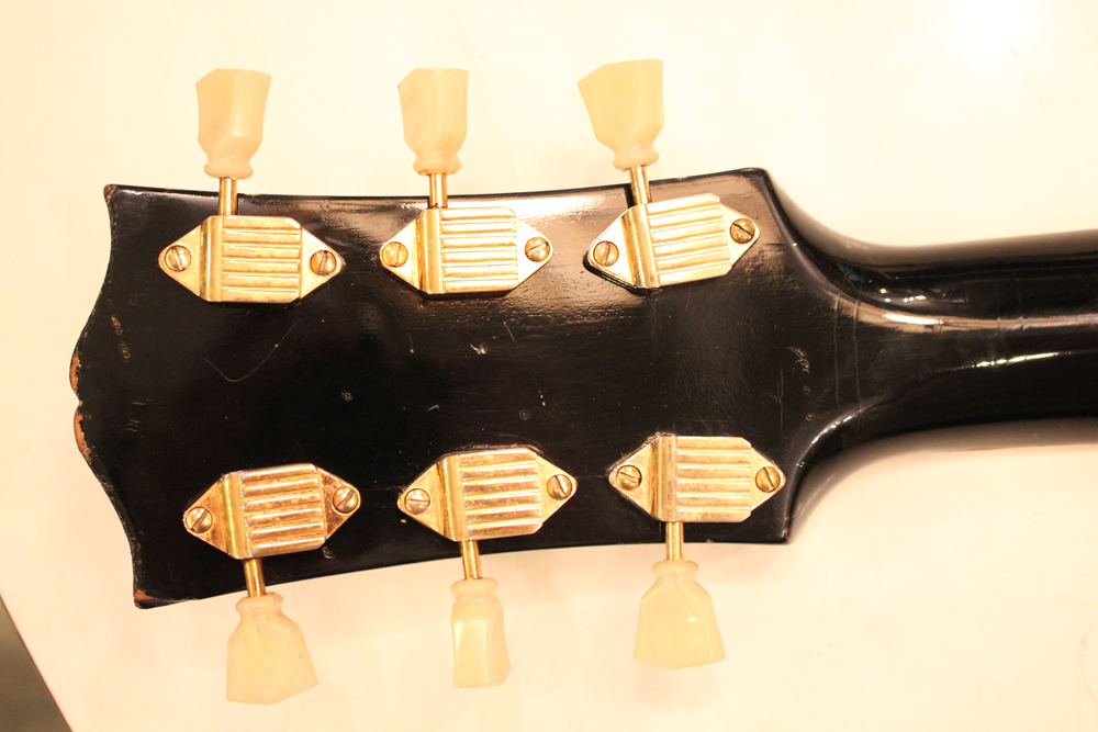 "レス・ポール"氏本人もゴールドトップのスタンダードよりもカスタムを非常に気に入り、永年愛用していました今回見つけて来たカスタムは、そのレス氏本人も愛用した最初期の53年製で、小さめのヘッドストックとブラック・カラーのバレルノブ、当時のゴールドトップにも使用されていた厚みの薄いアルミ・テールピース等が最初期モデルのみが持つ特徴です
