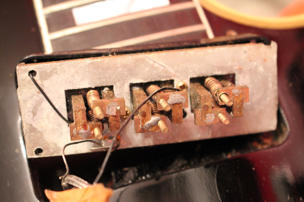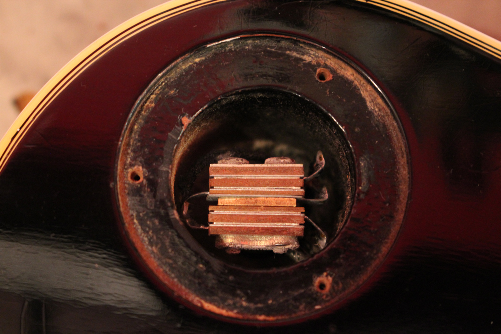 非常に生産コストが高い為、高級モデルにのみ採用された、通称アルニコV・ピックアップをフロントに配し、