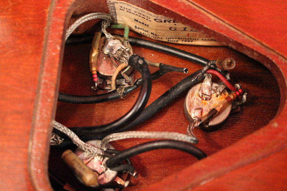 当時別売りで購入可能であった、ケース用のジップ・カバーも付属していますサウンドは、ダイナソニック・ピックアップのシャープながら太くて倍音豊かな50'sグレッチならではのグッド・サウンド!