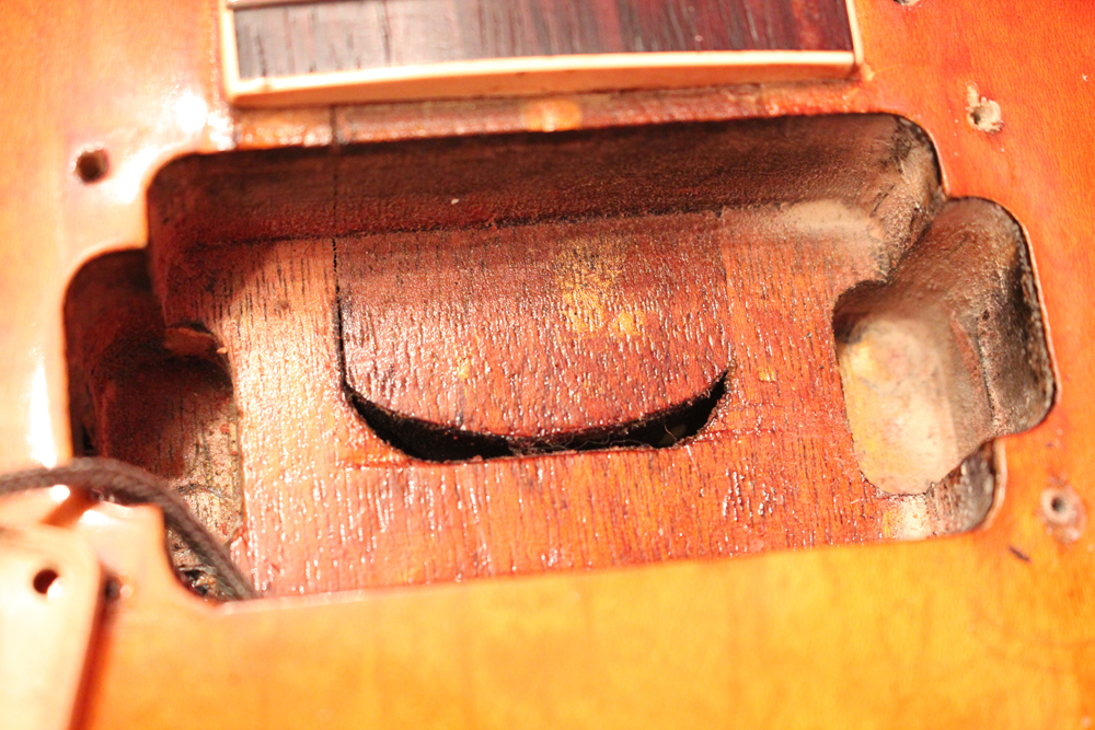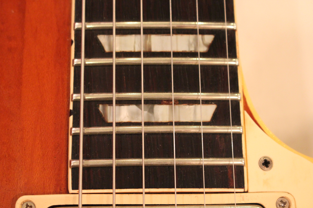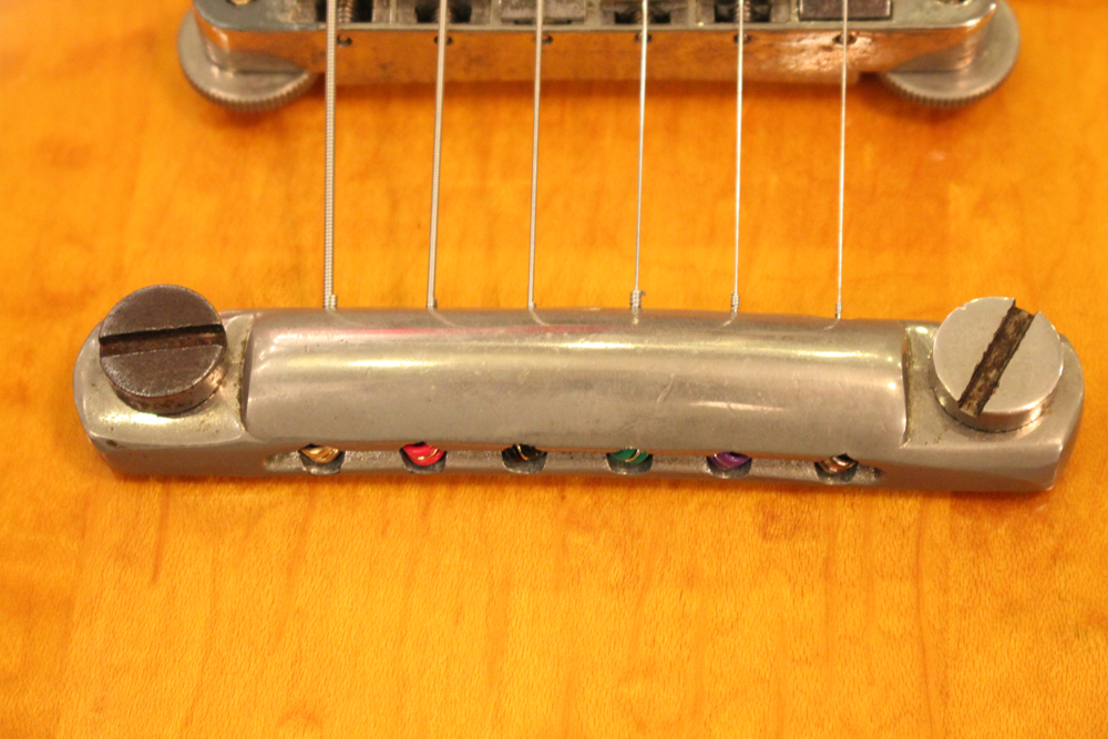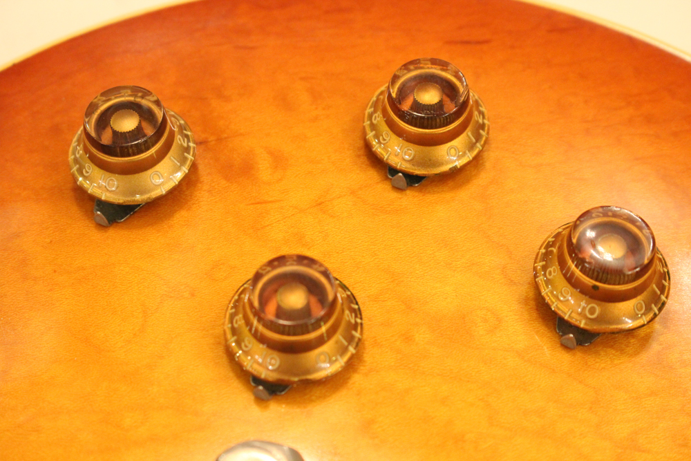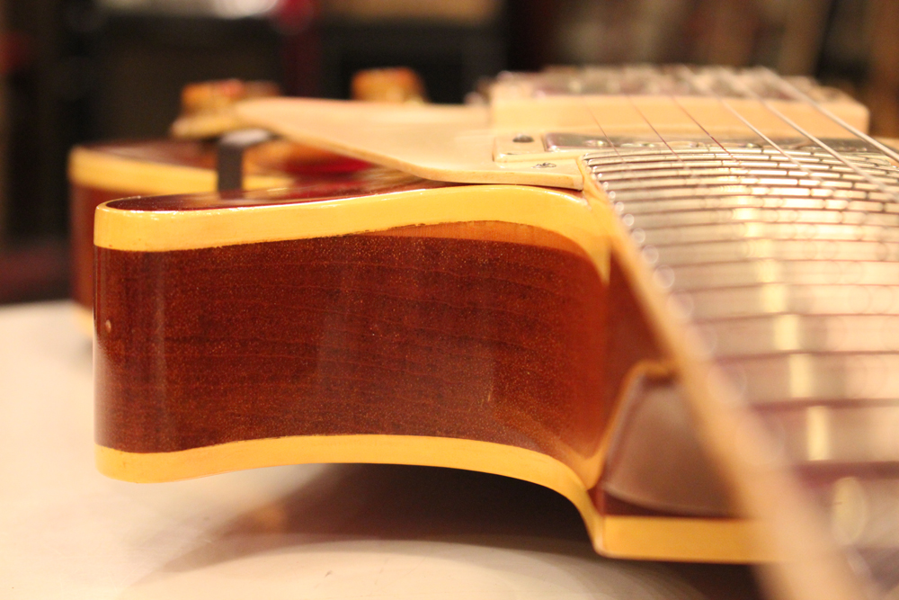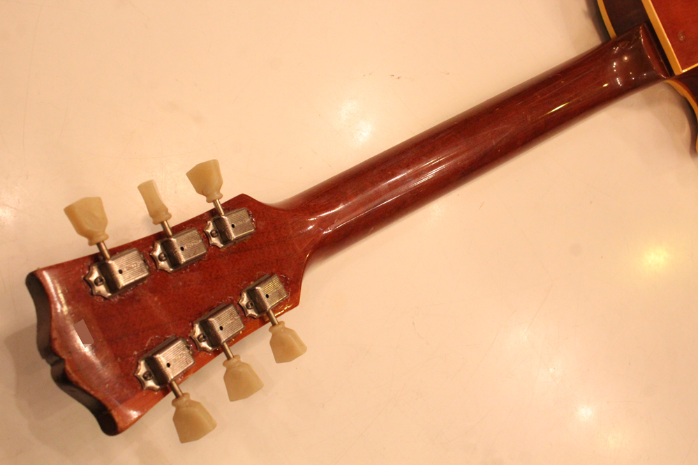その他のパーツは、フレット、ナットのリプレイスと、ピックガードがDMC製の別注品に、ピックアップ・リングが、今やレアなパーツで、オリジナル50年代と外観上は区別が付かない、70年代製のトール・ピックアップ・リングを搭載していますが、その他はオリジナルの50年代の物が使用されています