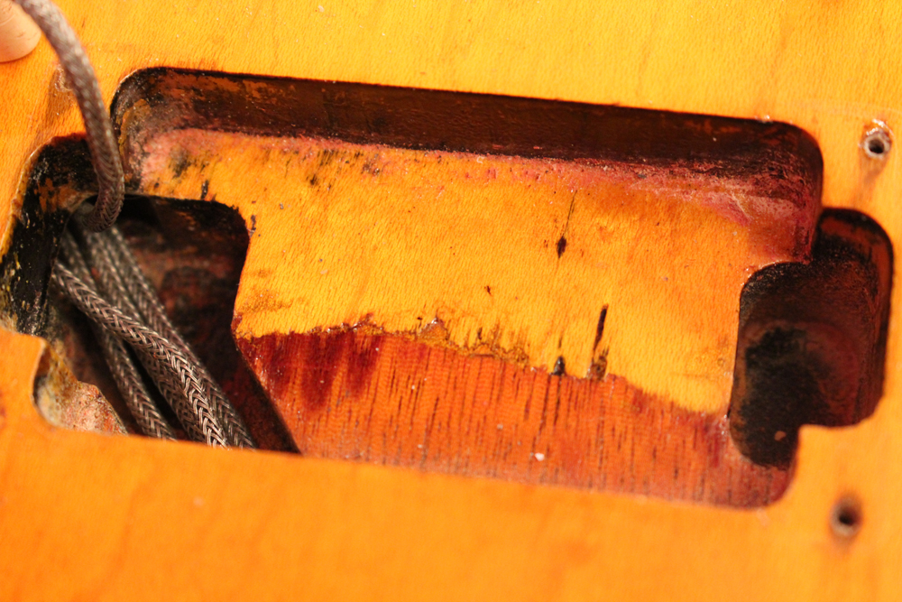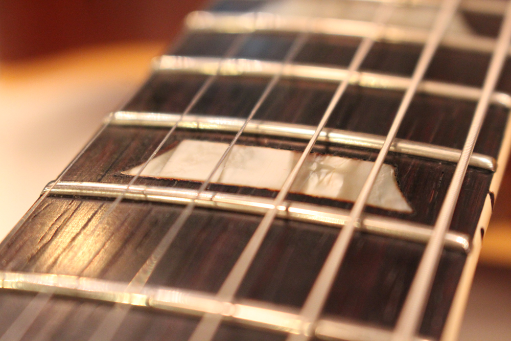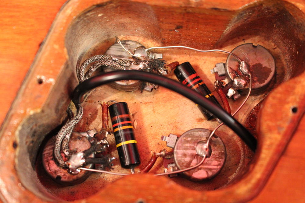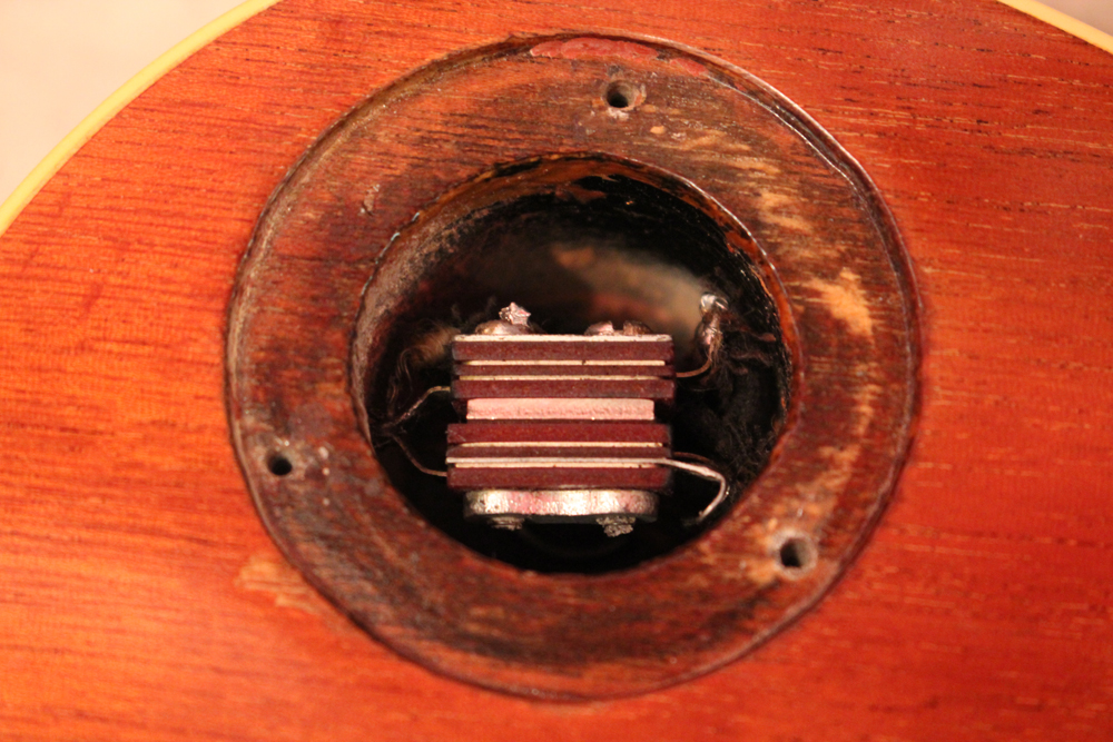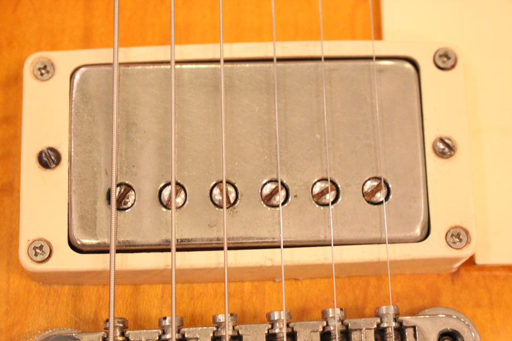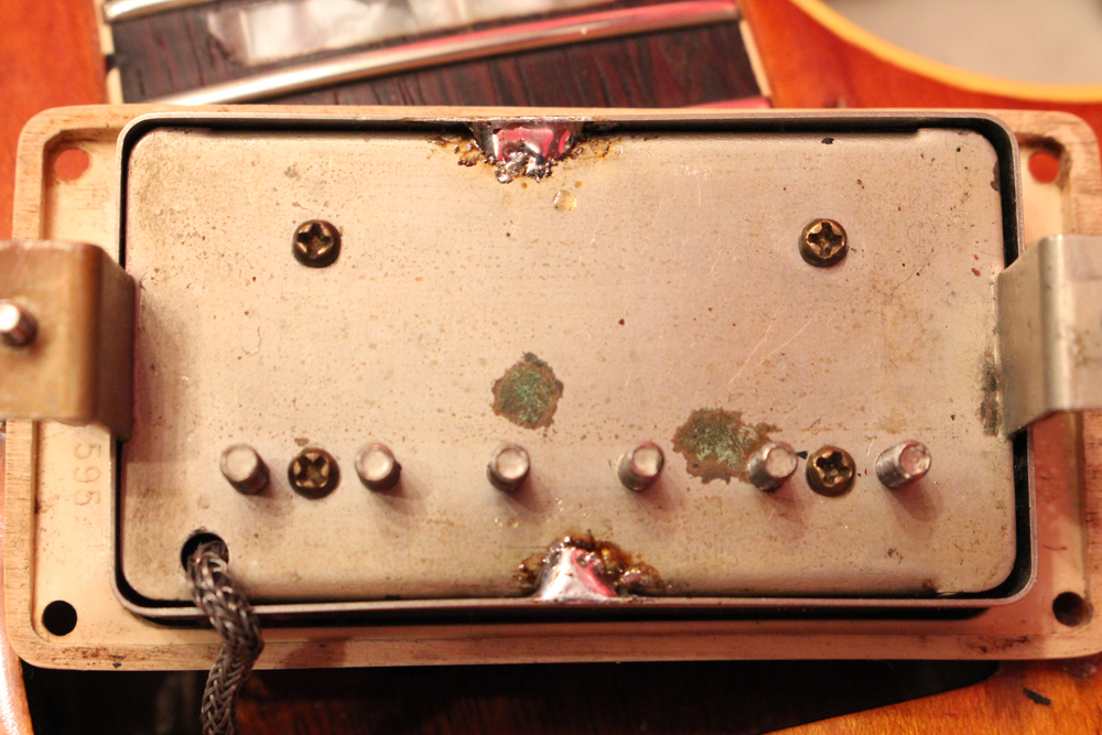 その他のパーツは、フレット、ナットのリプレイスと、ピックガードがDMC製の別注品に、ピックアップ・リングが、今やレアなパーツで、オリジナル50年代と外観上は区別が付かない、70年代製のトール・ピックアップ・リングを搭載していますが、その他はオリジナルの50年代の物が使用されています