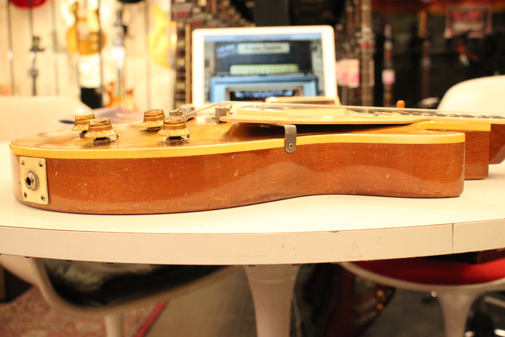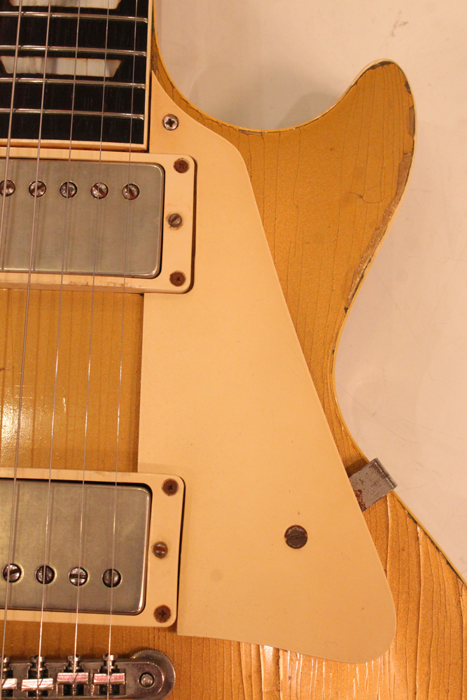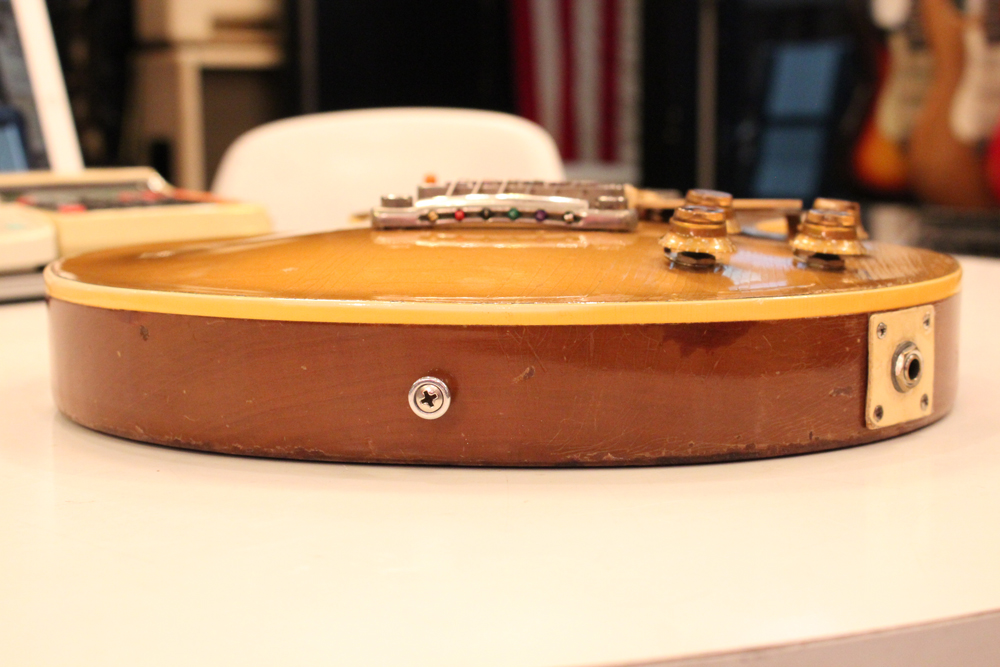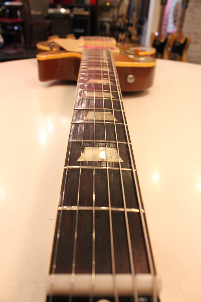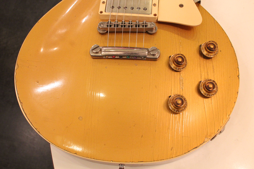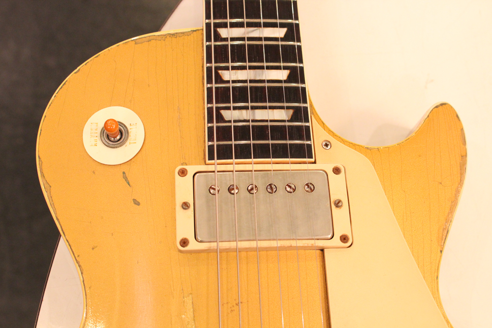 オリジナル・チューン・オー・マチック・ブリッジを採用した55年製のゴールドトップをベースに、57年スタイルにコンバージョンが施されたレス・ポール・スタンダード・ゴールドトップ!オリジナルのゴールド・カラー・フィニッシュのまま、P-90・ピックアップからハムバッカー仕様にコンバートが施されており、そのピックアップにはオリジナル・50年代のパテント・アプライド・フォー・通称“P.A.F” ピックアップが搭載されています