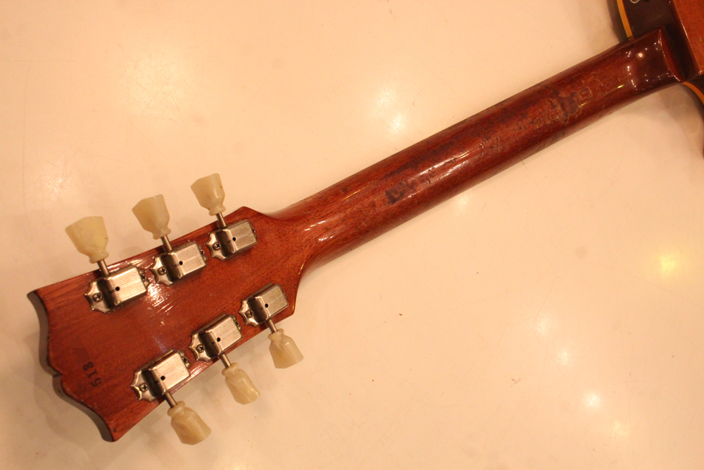 ヘッドの“Gibson”ロゴも幾分アッパーな位置にある所も本機の特徴ですそしてなんと言っても、50'sコンバージョンならではのグッド・トーンは勿論、オリジナル・フィニッシュのゴールドトップ・カラーが持つ凄みと雰囲気が魅力のレス・ポールです!