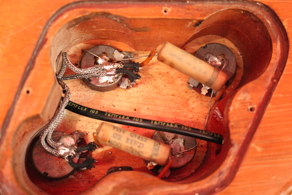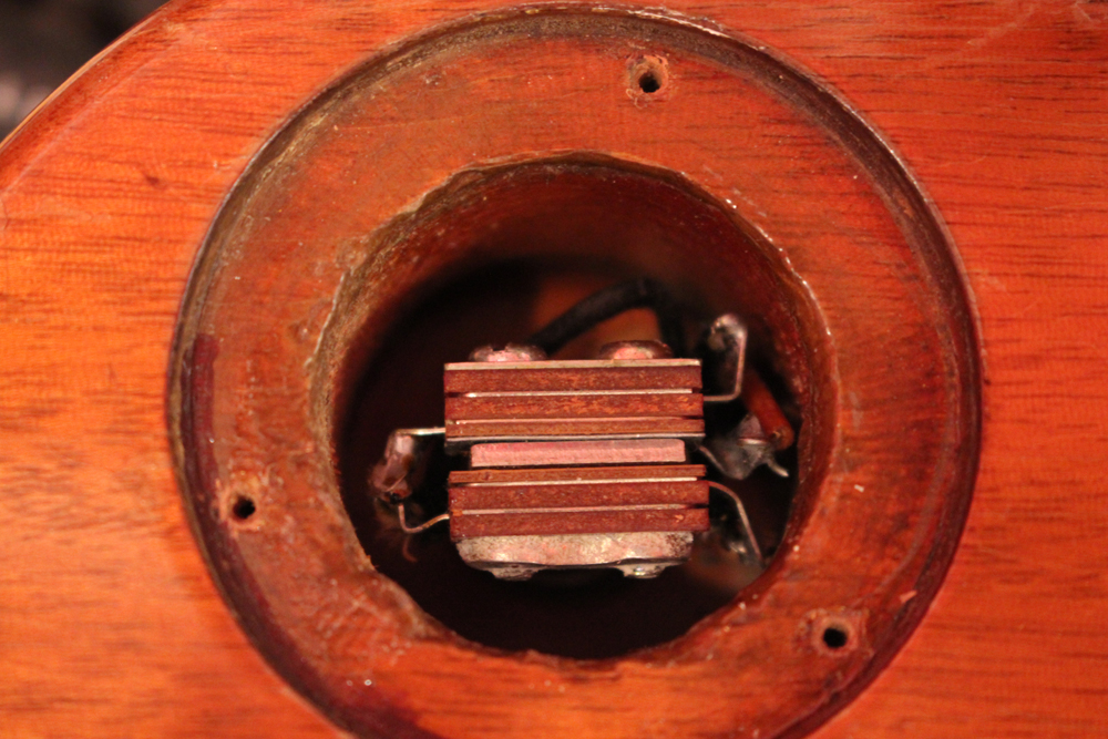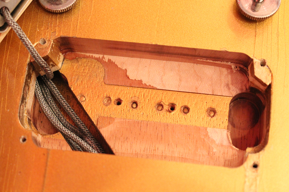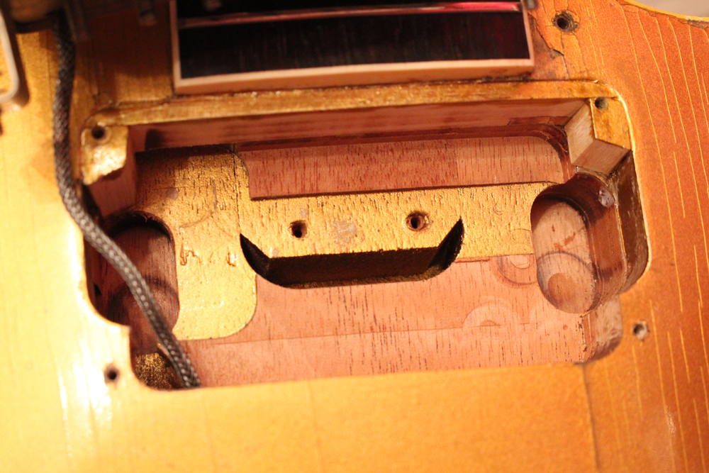コンバートに使用されたピックアップ・リングは"DMC"パーツのスペシャル・エイジド・バージョンを搭載しており、その他、エイジングが施されたピックアップカバー以外のパーツは全て55年製のオリジナルです